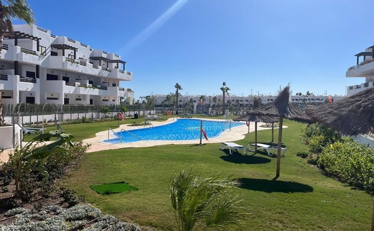 Modern and cheerful apartment in San Juan de los Terreros, Andalusia, Spain with communal pool for 4 persons. The apartment is situated in a beach resort with , in a coastal and residential area, close to supermarkets and at 500 m from the beach.