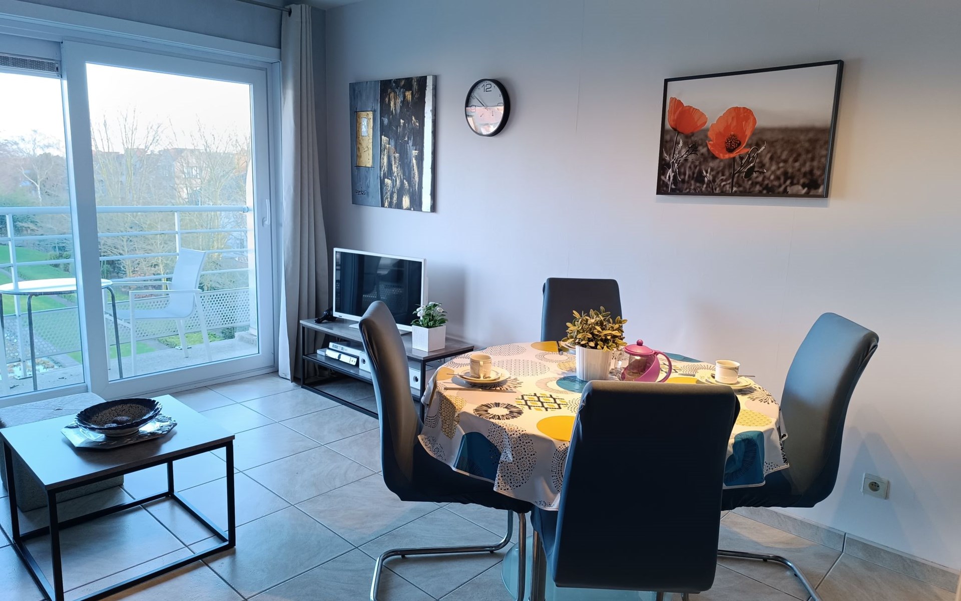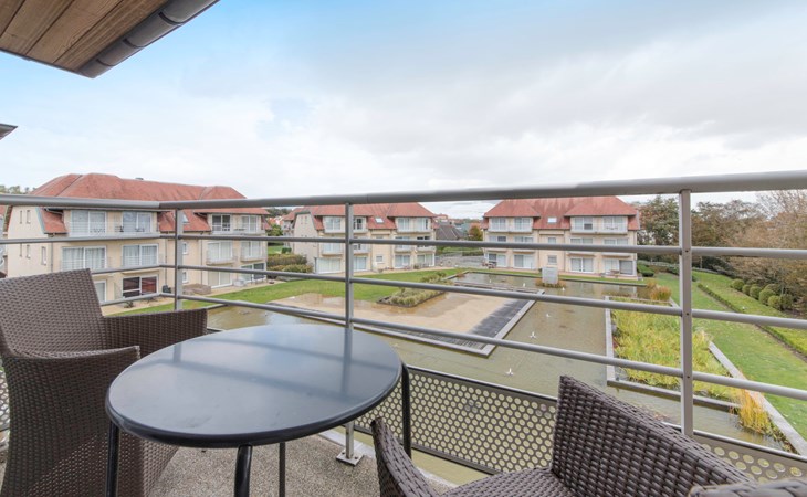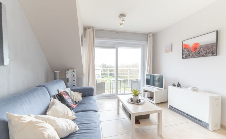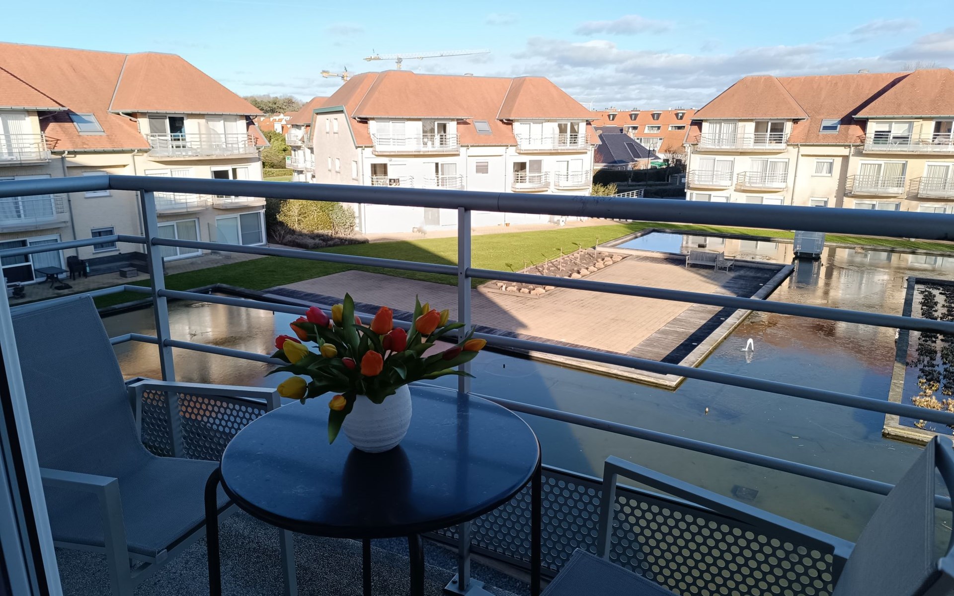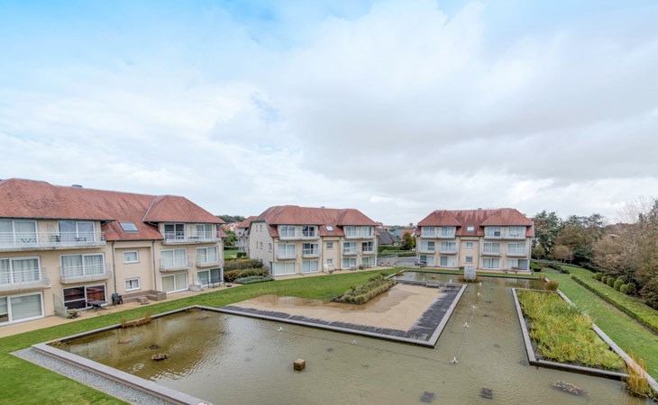 De Haan: Child friendly, modern holiday development "Green Garden", 2 storeys. 750 m from the centre of De Haan, 1.3 km from the sea, 1.3 km from the beach. For shared use: beautiful garden to relax, pond, swimming pool (20 x 10 m, seasonal availability: 16.Jun. - 15.Sep. pool opening hours: 08:00-20:00). Boccia. In the house: lift. Linen change (suppl. charge extra). Towel change (suppl. charge extra). Public parking on the road. Supermarket 700 m, restaurant 500 m, bakery 700 m, bicycle rental 1.5 km, tram "De Haan aan Zee" 700 m, bus stop "De Haan aan Zee" 700 m, railway station "Oostende" 12 km, sandy beach "De Haan" 1 km, park "La Potinière" 1 km. Golf course (18 hole) 1.4 km, surf school 2 km, sailing school 2 km, tennis 1 km, indoor tennis centre 2 km, minigolf 1 km, riding stable 3 km, sports centre 2 km. Nearby attractions: Oostende 10 km, Sea Life 12 km, Brugge 20 km, Plopsaland De Panne 52 km. Please note: suitable for families. The owner does not accept any youth groups. Loading and unloading of baggage is possible at the holiday house. The apartment is located in a zone with limited traffic. Neighbourhood highly sensitive to noise. Quietness and good behaviour expected.