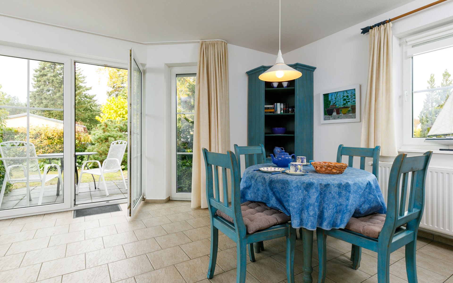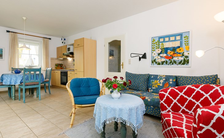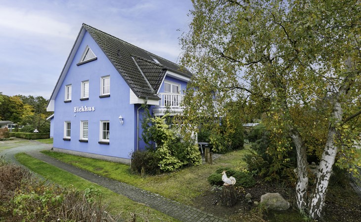 Beautiful, comfortable apartment block "Eickhus", 2 storeys, built in 1998. 4 apartments in the property. 1.2 km from the centre of Zinnowitz, on the outskirts, in a quiet position, 100 m from the edge of the forest, 1 km from the sea, 1.2 km from the lake, west facing position. For shared use: property 704 m2 (fenced) with lawn and trees. In the house: WiFi, storage room for bicycles, sun terrace, central heating system. Parking at the house. Shop 1.2 km, grocery 1.2 km, shopping centre 1.2 km, restaurant 1.2 km, bakery 1.2 km, bicycle rental 1.8 km, bus stop 1.8 km, railway station "Zinnowitz" 1.8 km, indoor swimming pool 2.1 km. Minigolf 1.9 km, sports centre 1.8 km, children's playground 1.2 km. Nearby attractions: Karls Erdbeerhof 8 km. The owner does not accept any youth groups. Please note: Additional accommodations can be booked. Property ref. 2,3,4 is situated on the same property.