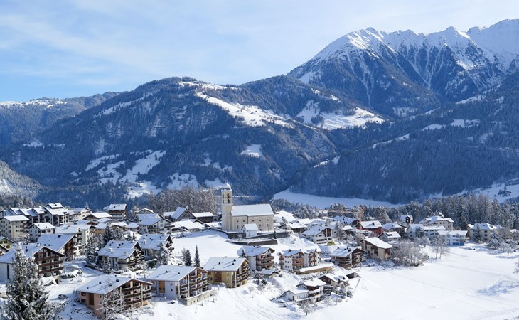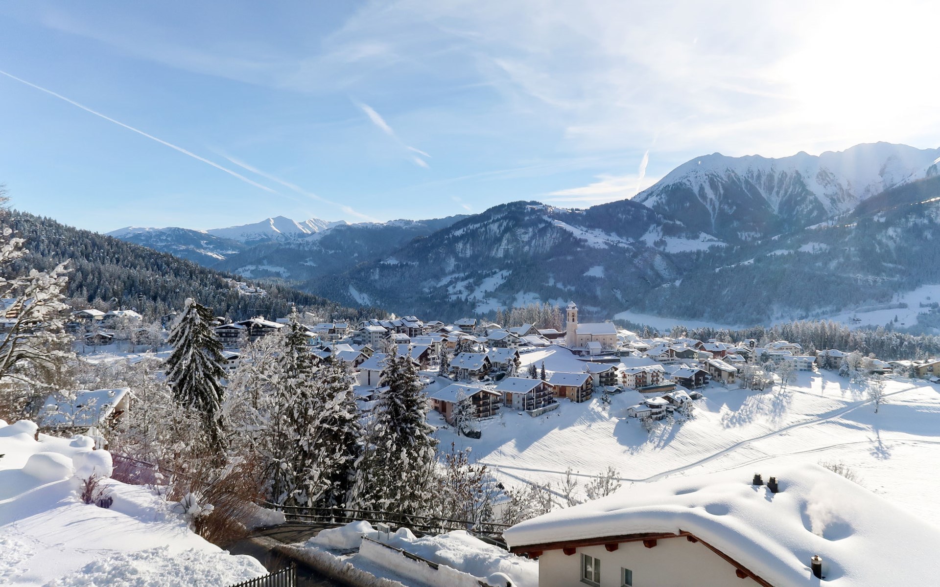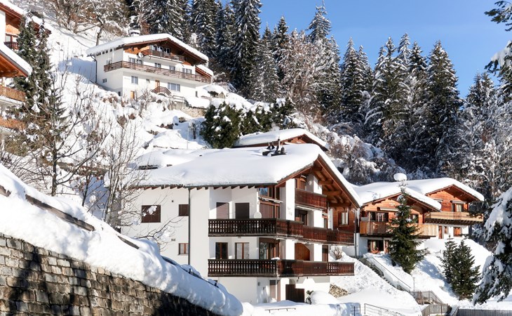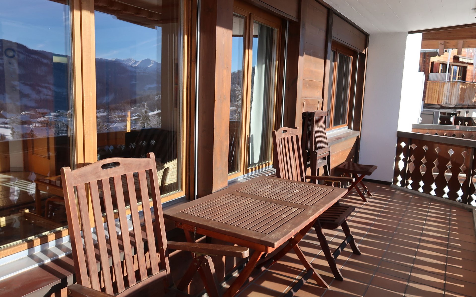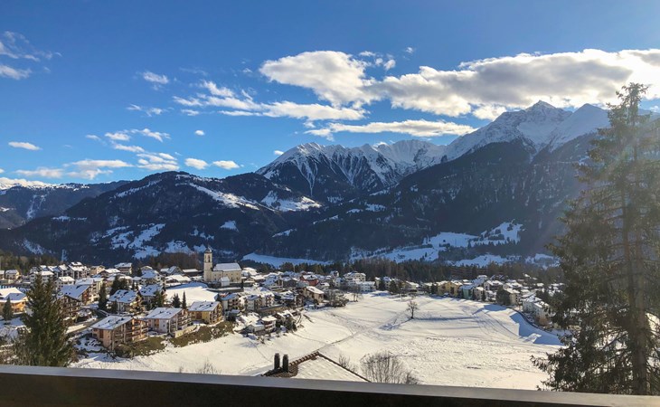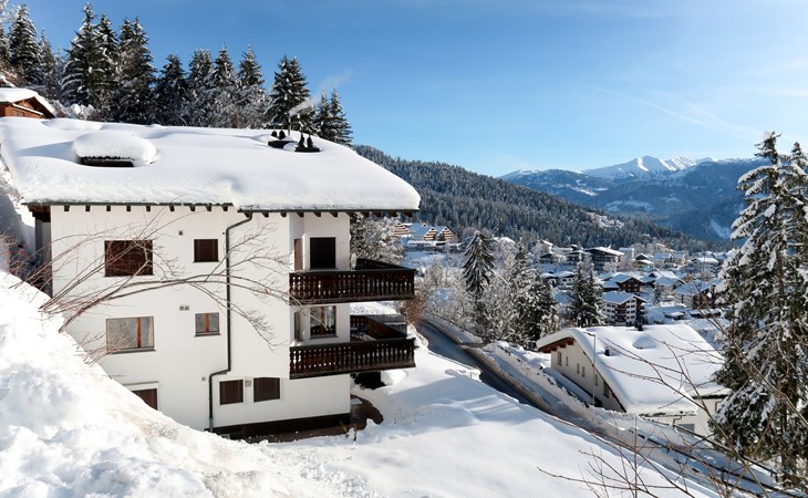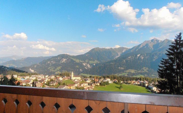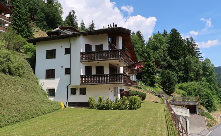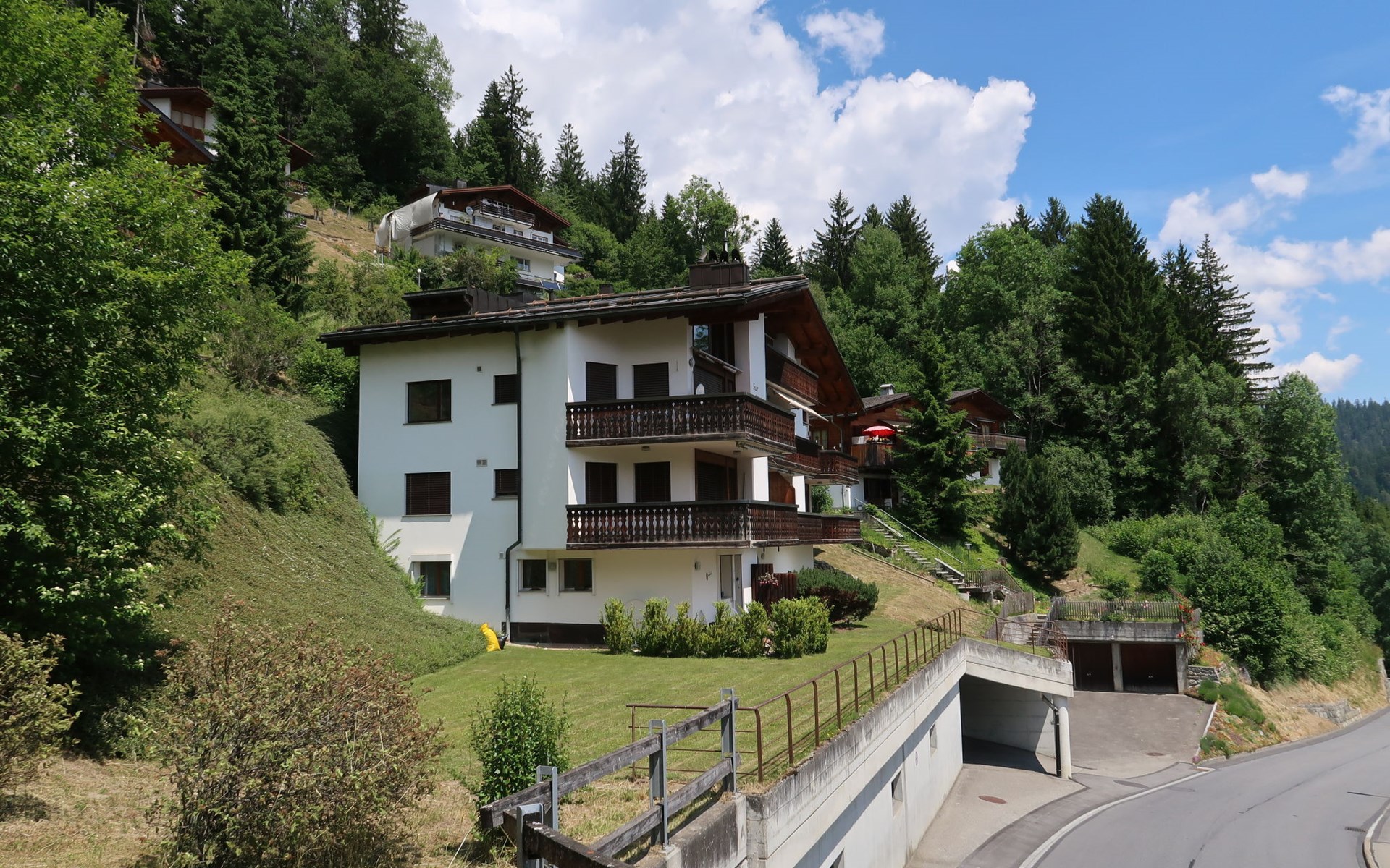 Cosy apartment house "Sur Vitg", 1'020 m a.s.l., 4 storeys. 500 m from the centre of Laax, on the outskirts, 6 km from the centre of Ilanz, in a quiet, sunny, elevated position on a slope, 500 m from the lake, 2 km from the skiing area. In the house: lift, storage room for skis, central heating system, washing machine, tumble dryer (for shared use). Motor access to the house. Communal covered parking at the house. Grocery, restaurant, bakery 500 m, bus stop "Laax GR, Fau" 100 m, railway station "Ilanz" 6 km, indoor swimming pool, bathing lake 500 m. Golf course (18 hole) 3 km, cable car 2 km, ski lift 2 km, chair lift 2 km, skisport facilities 2 km, slopes 2 km, ski bus stop 150 m, ski school 2 km, sled run 2 km, cross country ski track 2 km, ice rink, children's playground 500 m. Nearby attractions: Rheinschlucht 3 km. Well-known ski regions can easily be reached: Weisse Arena Flims/laax 2 km. Well-known lakes can easily be reached: Laaxersee 500 m, Caumasee 5 km. The house is on a side street towards Falera (dead end).