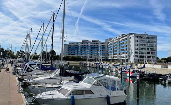 The port is expected to be closed until the end of 2024 due to construction work. Resort "Ostsee-Residenz", 7 storeys. In the centre of Damp 20 km from the centre of Eckernförde, 40 km from the centre of Schleswig, 100 m from the sea, direct access to the beach. For shared use: children's playground. In the complex: restaurant, bar, fitness room (extra). Bowling, table tennis (all extra), shopping facilities, boutique, lift, central heating system, bicycle rental. Parking at 100 m. Supermarket, restaurant, bus stop 100 m, sandy beach 150 m, indoor swimming pool 300 m. Marina 100 m, golf course (18 hole) 1 km, tennis 1 km, minigolf 300 m. Please note: childminding (extra). Nightclub/disco close by.