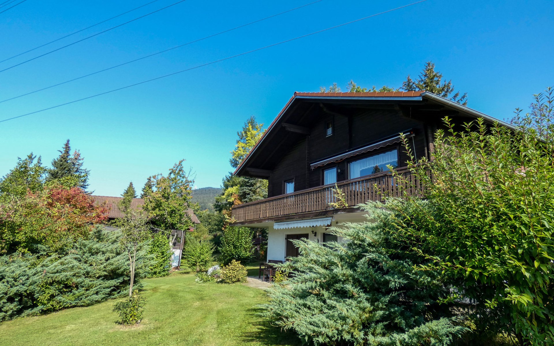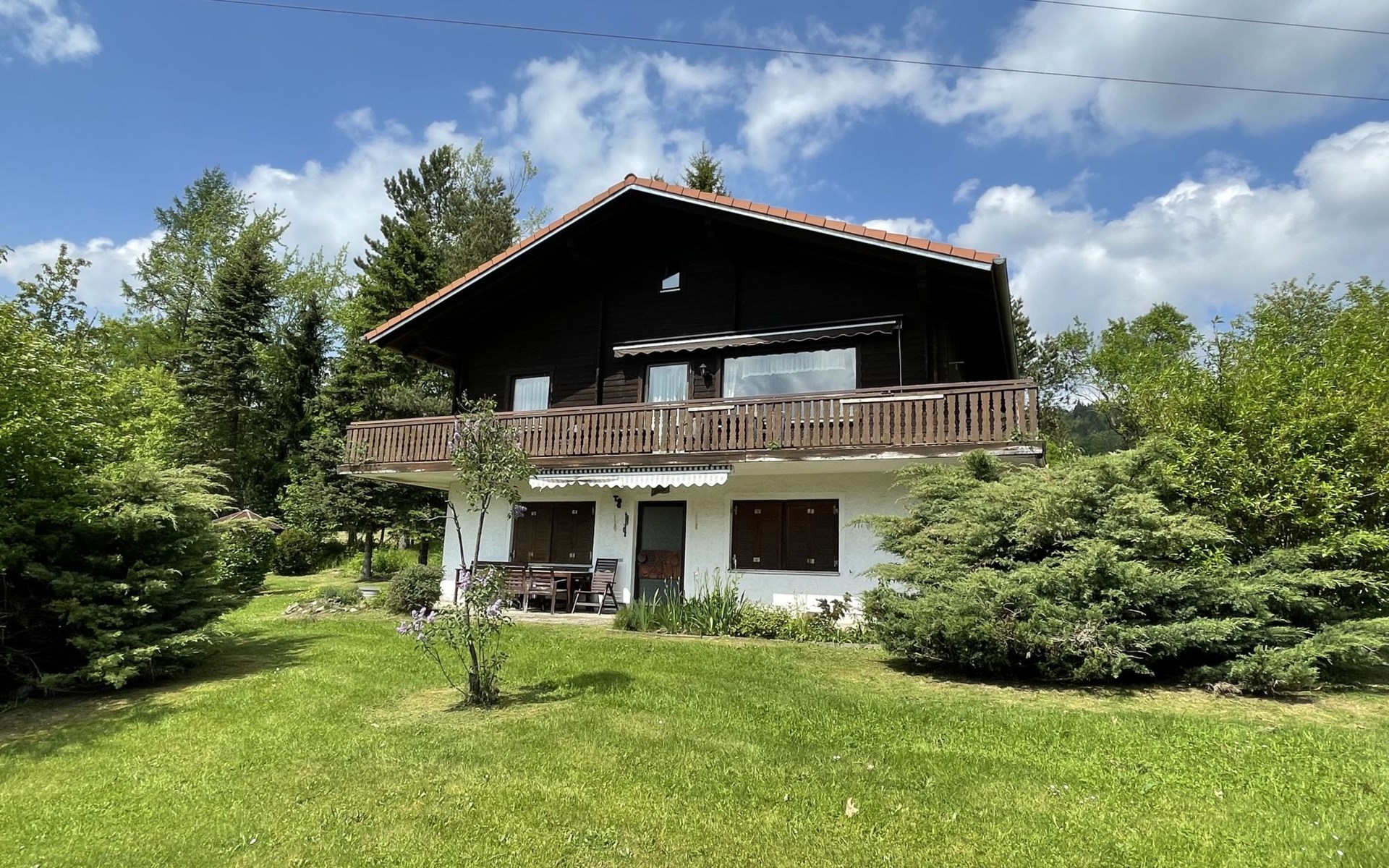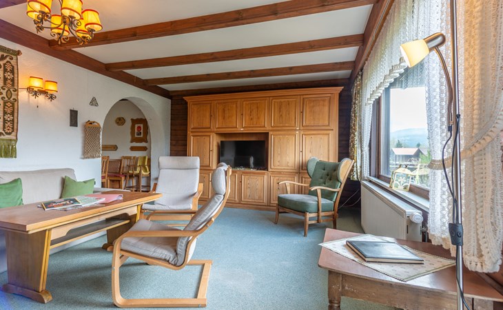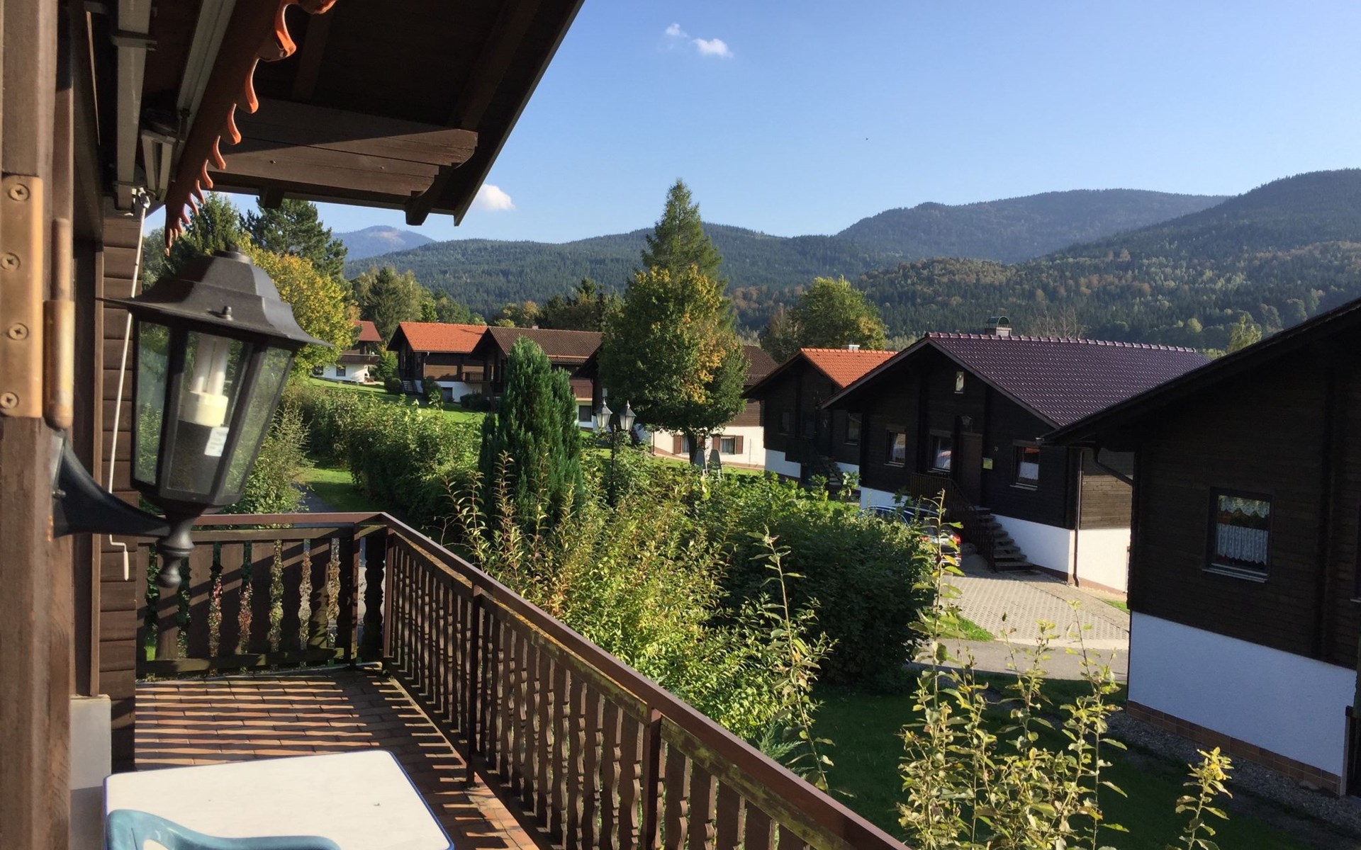 Child friendly holiday village "Am Hohen Bogen". In the district of Kummersdorf, outside the resort, 3 km from the centre of Arrach, on a slope, traffic calmed area, 300 m from the edge of the forest, 100 m from the lake, 9 km from the skiing area. For shared use: volleyball, children's playground (slide, swing, sandbox). In the complex: table tennis (extra). Central heating system. Parking at the house. Shop 3 km, grocery 3 km, supermarket 3 km, restaurant 3 km, bakery 3 km, railway station "Hohenwarth" 1.5 km, grass beach "Seepark Arrach" 5 km, outdoor swimming pool 10 km, thermal baths 10 km, bathing lake "Seepark Arrach" 5 km. Golf course (9 hole) 6 km, tennis 6 km, riding stable 800 m, chair lift 9 km, skisport facilities 9 km, slopes 9 km, ski rental 11 km, ski school 9 km, cross country ski track 11 km. Nearby attractions: Bayerwald-Tierpark Lohberg 15 km, Spielbank Bad Kötzting, Fun-Park Neukirchen, Tiergarten Straubing, Pullman-City. Well-known ski regions can easily be reached: Eck 6 km, Am Hohen Bogen 9 km, Arber 29 km. Hiking paths: Arberregion. Please note: car recommended. Groups of teenagers on request only. Boating, fishing 500 m. The holiday village consists of an apartment house and two-storey holiday houses with shared lawns and play areas. The distance from the individual houses to the natural swimming lake is 50 – 400 m.