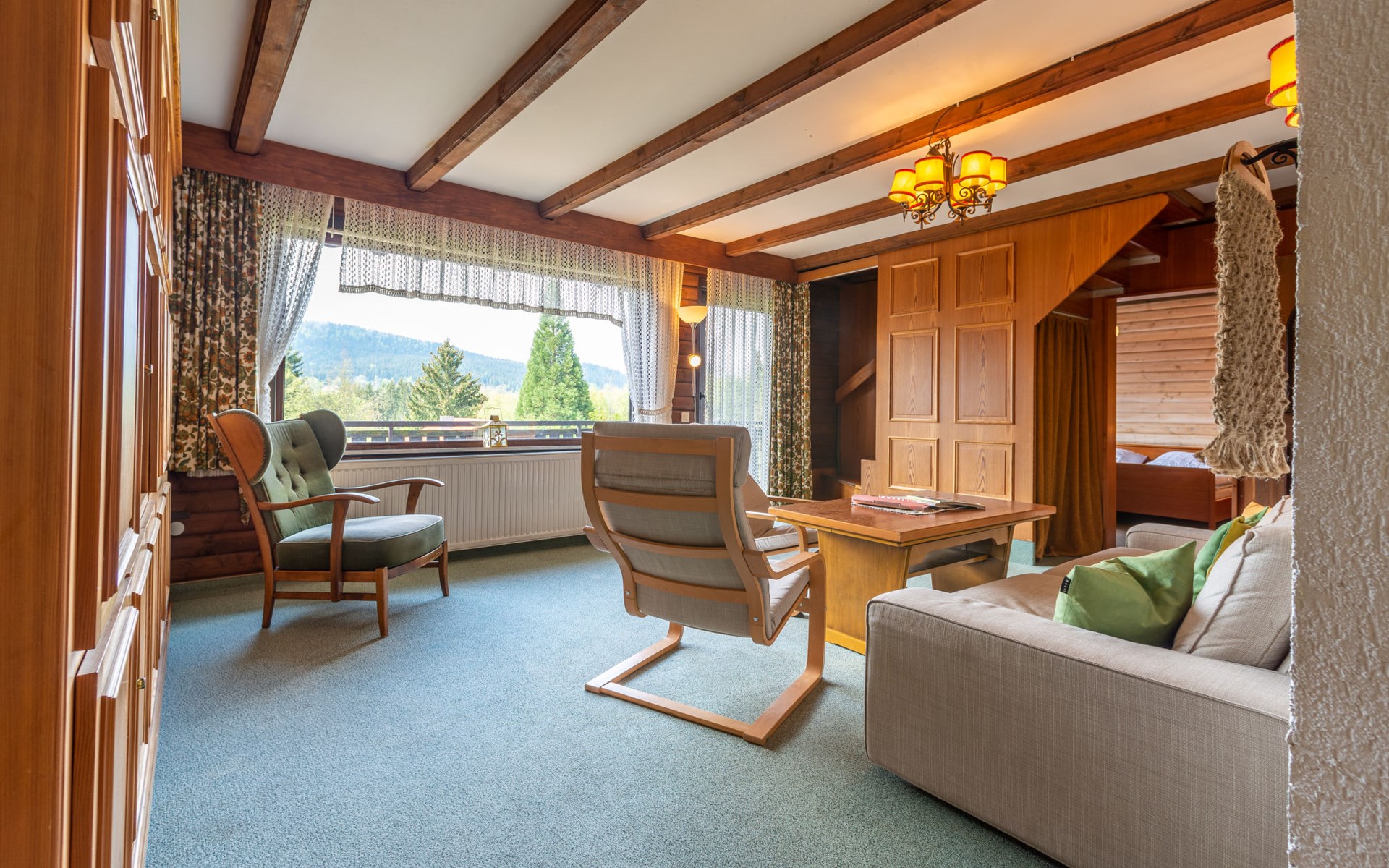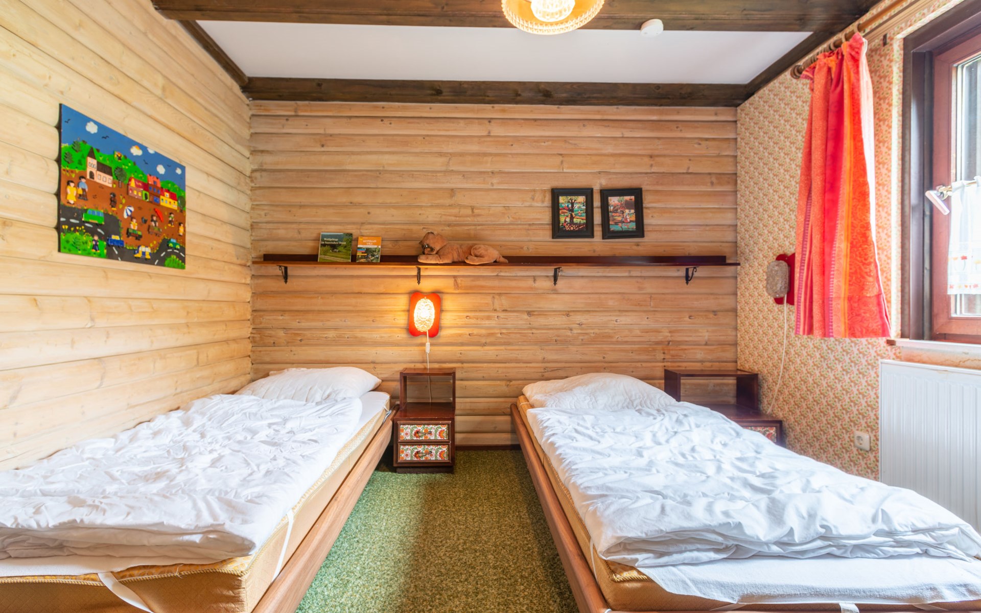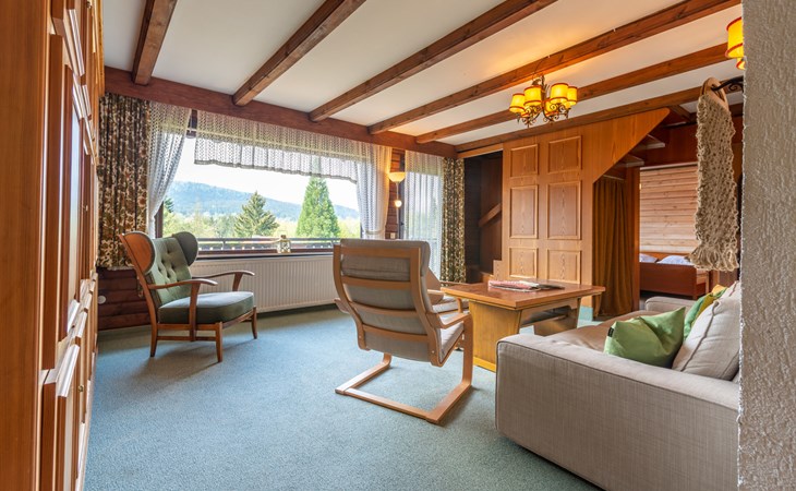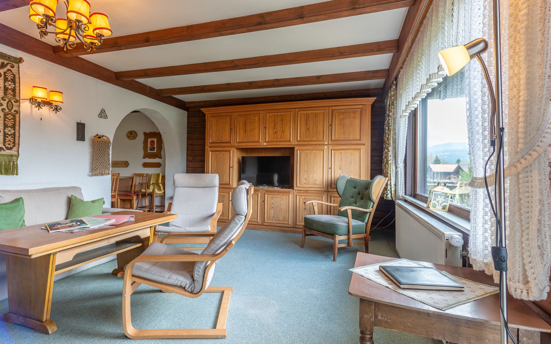 Child friendly holiday village "Am Hohen Bogen". In the district of Kummersdorf, outside the resort, 3 km from the centre of Arrach, on a slope, traffic calmed area, 300 m from the edge of the forest, 100 m from the lake, 9 km from the skiing area. For shared use: volleyball, children's playground (slide, swing, sandbox). In the complex: table tennis (extra). Central heating system. Parking at the house. Shop 3 km, grocery 3 km, supermarket 3 km, restaurant 3 km, bakery 3 km, railway station "Hohenwarth" 1.5 km, grass beach "Seepark Arrach" 5 km, outdoor swimming pool 10 km, thermal baths 10 km, bathing lake "Seepark Arrach" 5 km. Golf course (9 hole) 6 km, tennis 6 km, riding stable 800 m, chair lift 9 km, skisport facilities 9 km, slopes 9 km, ski rental 11 km, ski school 9 km, cross country ski track 11 km. Nearby attractions: Bayerwald-Tierpark Lohberg 15 km, Spielbank Bad Kötzting, Fun-Park Neukirchen, Tiergarten Straubing, Pullman-City. Well-known ski regions can easily be reached: Eck 6 km, Am Hohen Bogen 9 km, Arber 29 km. Hiking paths: Arberregion. Please note: car recommended. Groups of teenagers on request only. Boating, fishing 500 m. The holiday village consists of an apartment house and two-storey holiday houses with shared lawns and play areas. The distance from the individual houses to the natural swimming lake is 50 – 400 m.