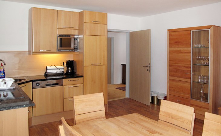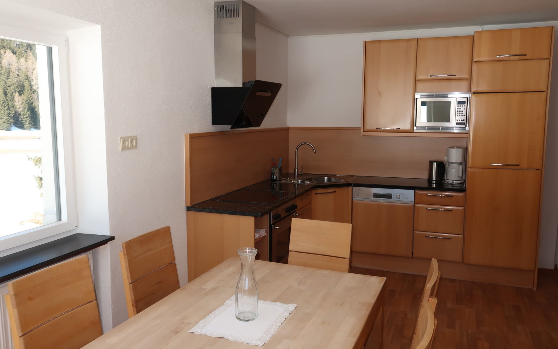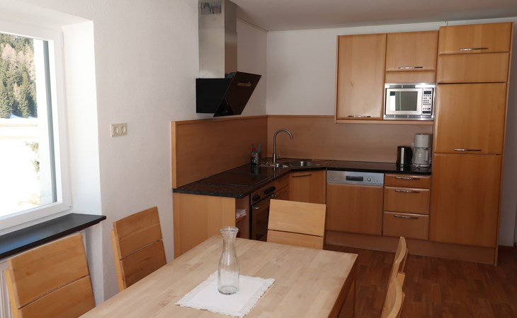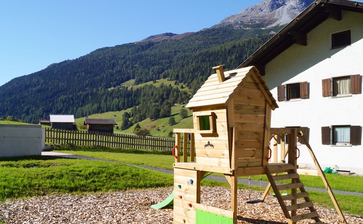 Apartment house "Altes Zollhaus", 1'420 m a.s.l., 2 storeys. 4 apartments in the property. In the district of Fuhrmannsloch 4 km from the centre of Nauders, 3.5 km from the lake, 2.2 km from the skiing area, in a cul-de-sac. For shared use: property 400 m2 (fenced), garden (fenced) with meadow. Terrace, garden furniture, barbecue, children's playground. In the house: storage room for bicycles, storage room for skis, washing machine (extra) (for shared use). Bread roll service on request. In Winter: please take snow chains. Stepped path (13 steps) to the house. Parking on the premises. Supermarket 4 km, bus stop "Nauders Reschenpass" 1.6 km, railway station "Landeck" 45 km, outdoor swimming pool 17 km, lake Reschenee 3.5 km. Golf course (9 hole) 31 km, walking paths from the house, cycle lane 50 m, mountain railway 2.2 km, ski lift 2.2 km, slopes 2.2 km, ski school 2.2 km, sled run 2.2 km, cross country ski track 50 m. Well-known ski regions can easily be reached: Nauders, Schöneben, Samnaun. Well-known lakes can easily be reached: Reschensee 3.5 km.