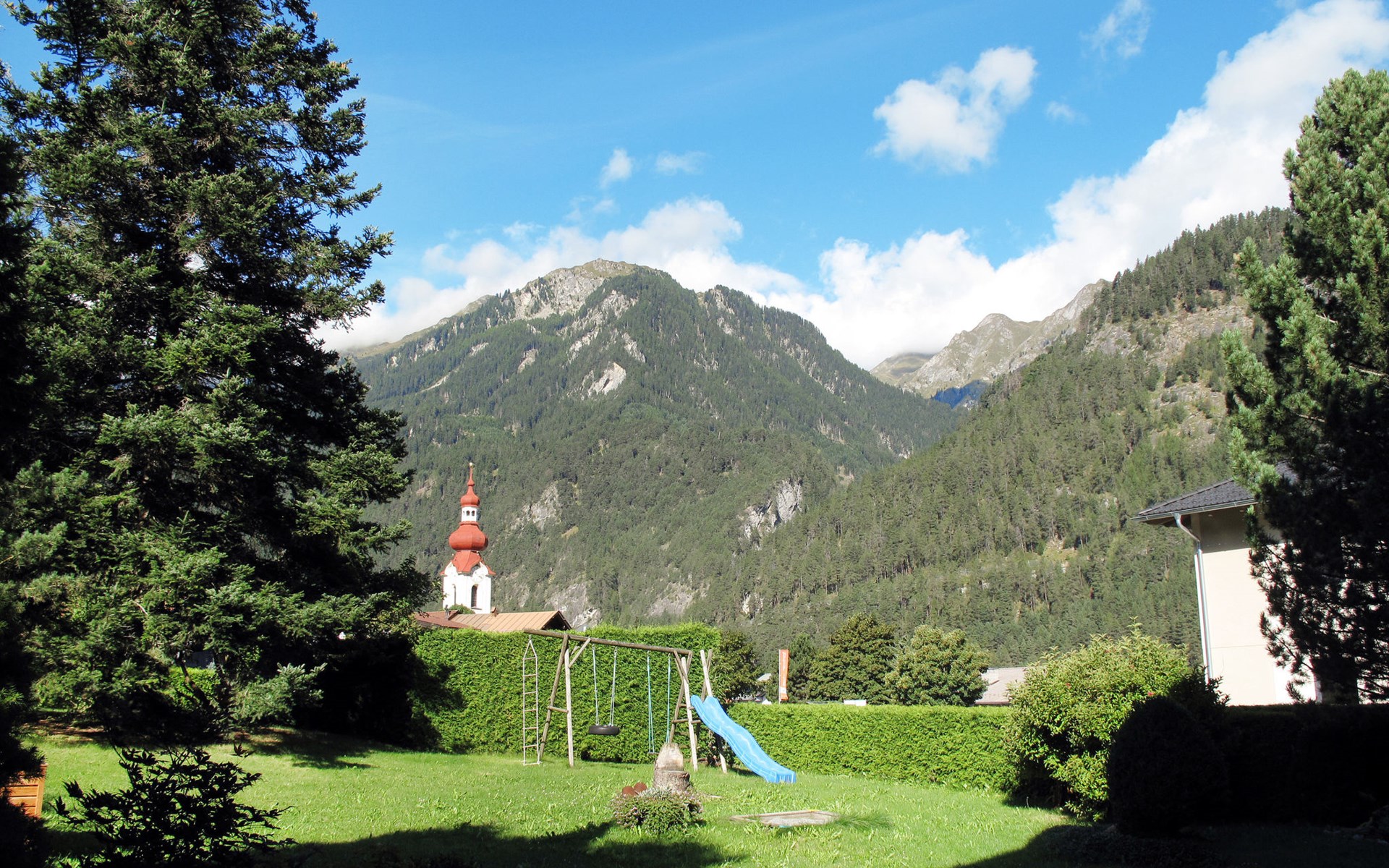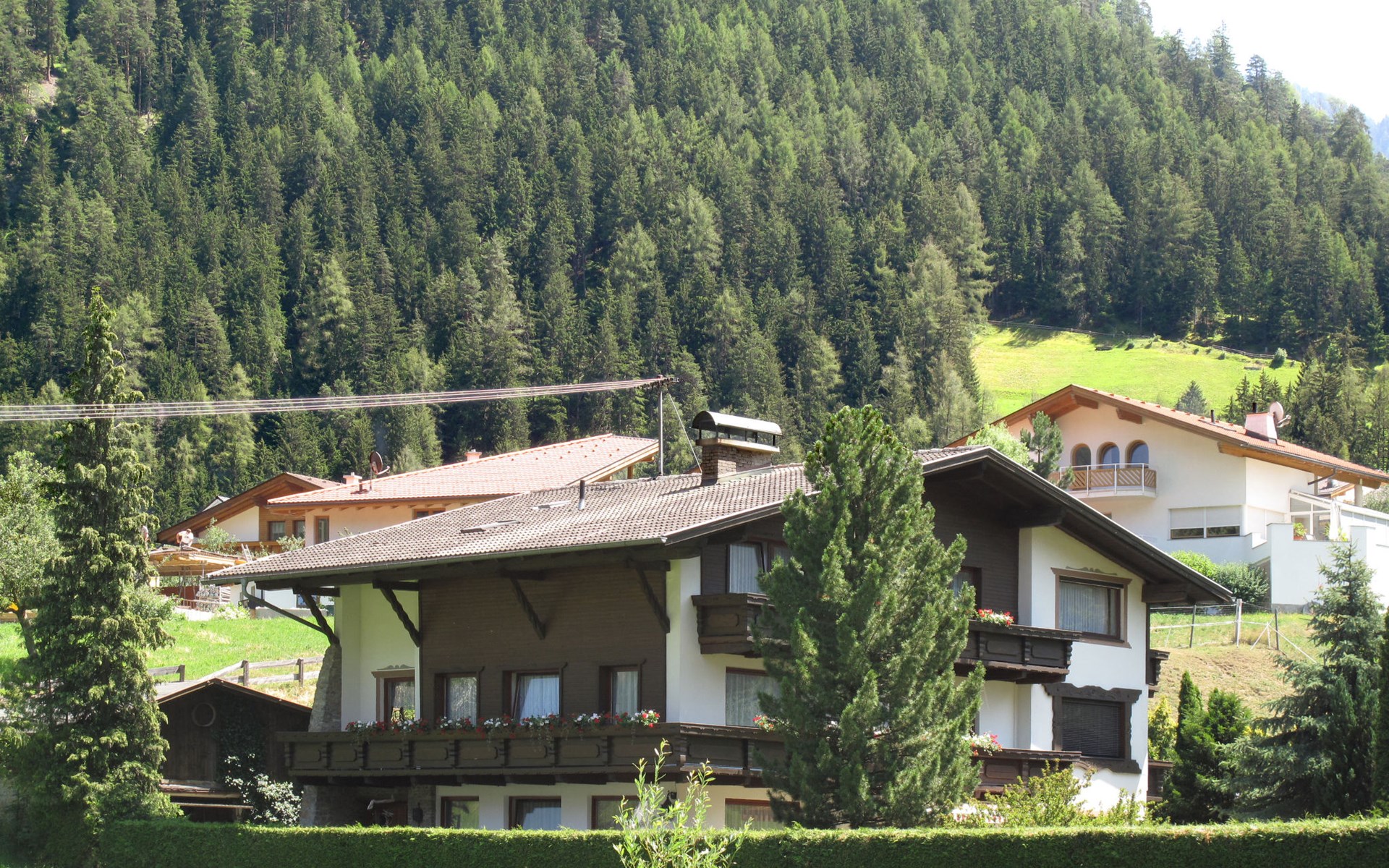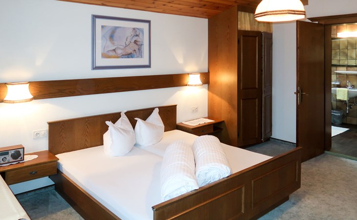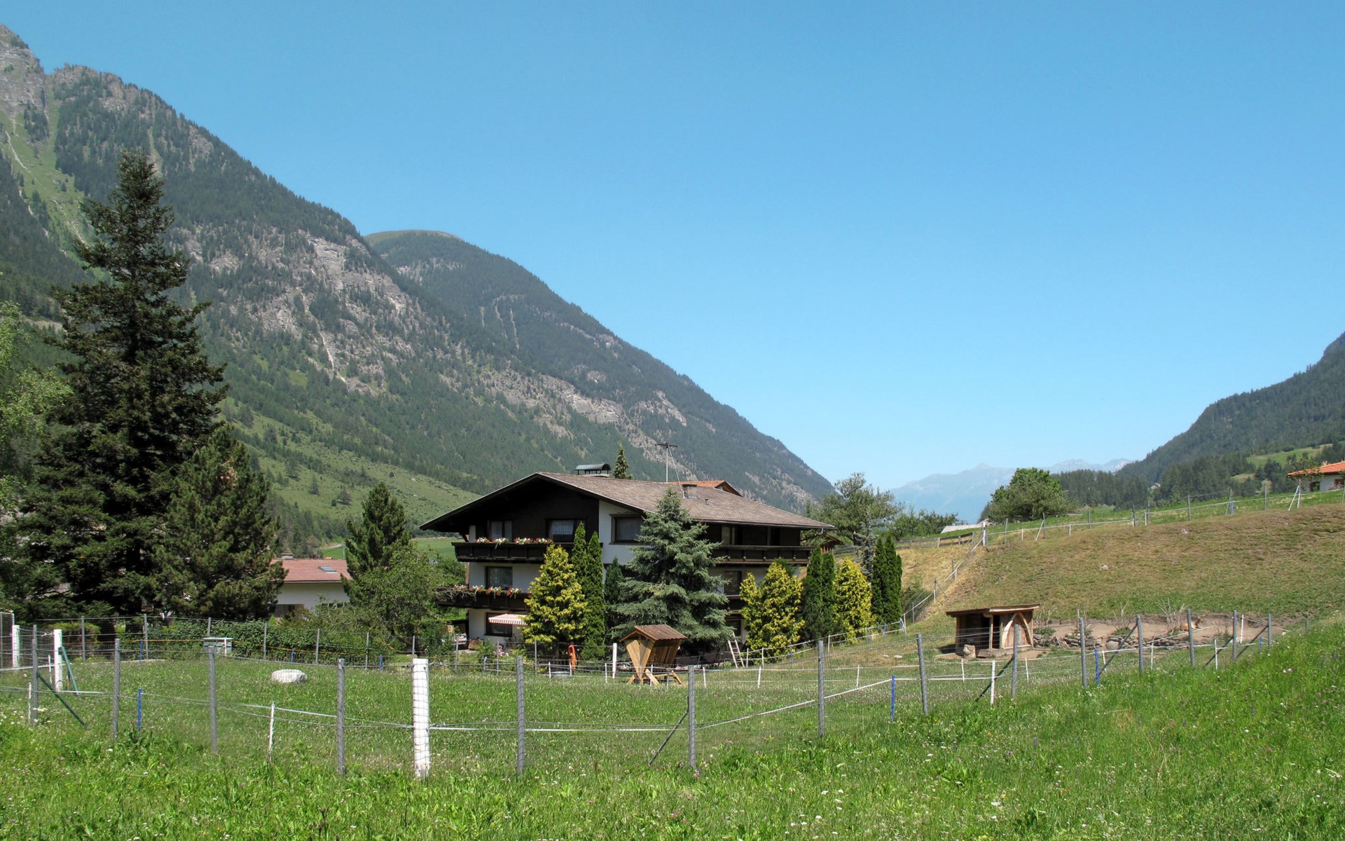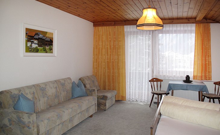House "Martina", 970 m a.s.l.. In the district of Dorf 500 m from the centre of Pfunds, 30 km from the centre of Landeck. For shared use: property 1'500 m2 (fenced) with trees. In the house: storage room for skis. Parking (for 4 cars) on the premises. Supermarket 500 m, bus stop 200 m, railway station "Landeck" 30 km, indoor swimming pool 28 km. Mountain railway 15 km, slopes 15 km, ski bus stop 200 m, ski school 750 m, sled run 1 km, cross country ski track 500 m. Well-known ski regions can easily be reached: Nauders (Skiarena Reschenpass) 15 km, Samnaun (Silvretta Skiarena) 15 km. Please note: ski bus (free of charge). Free ski bus service to the ski region Pfunds-Samnaun and Pfunds-Nauders. Please note: the owner lives in the same residence.