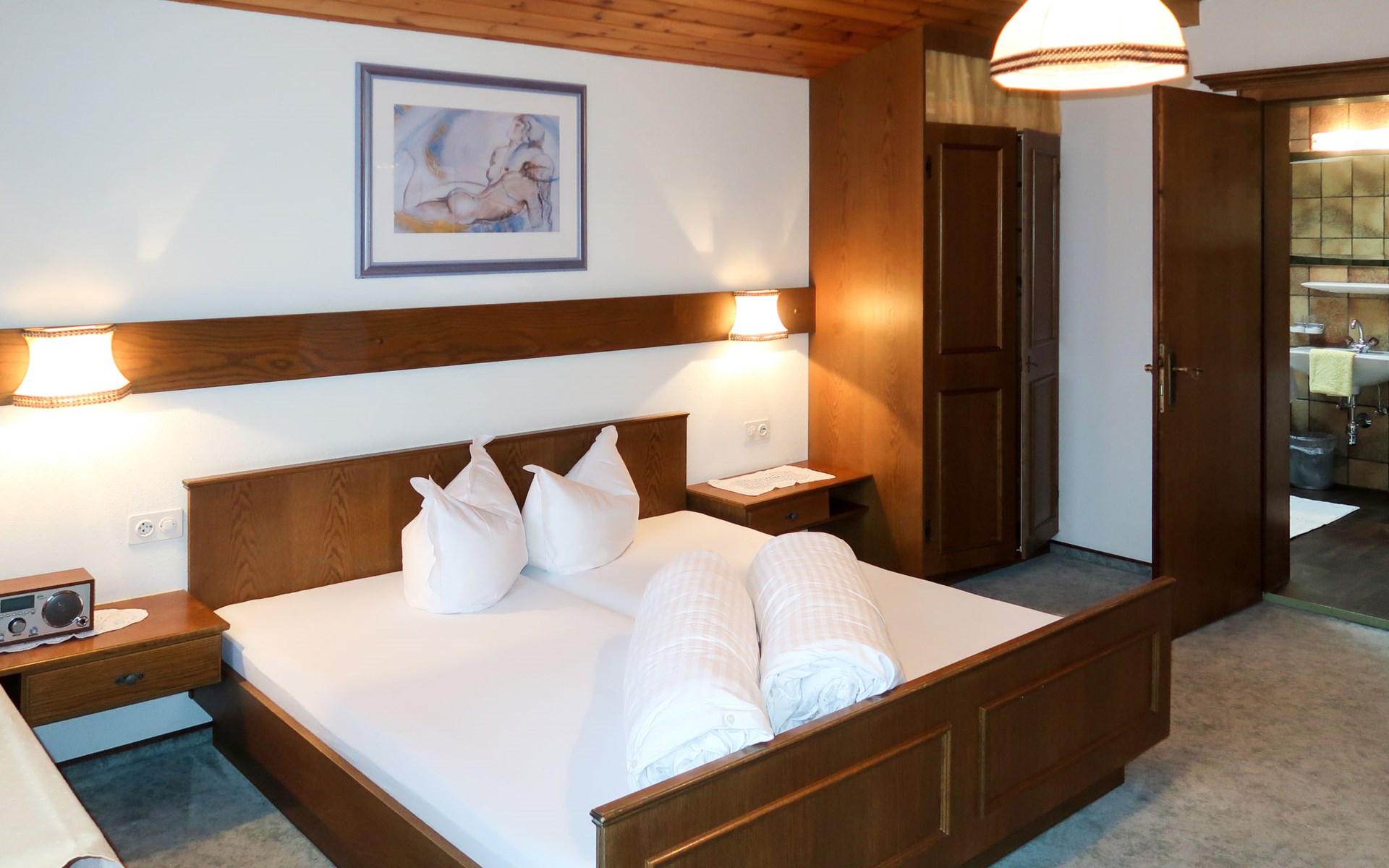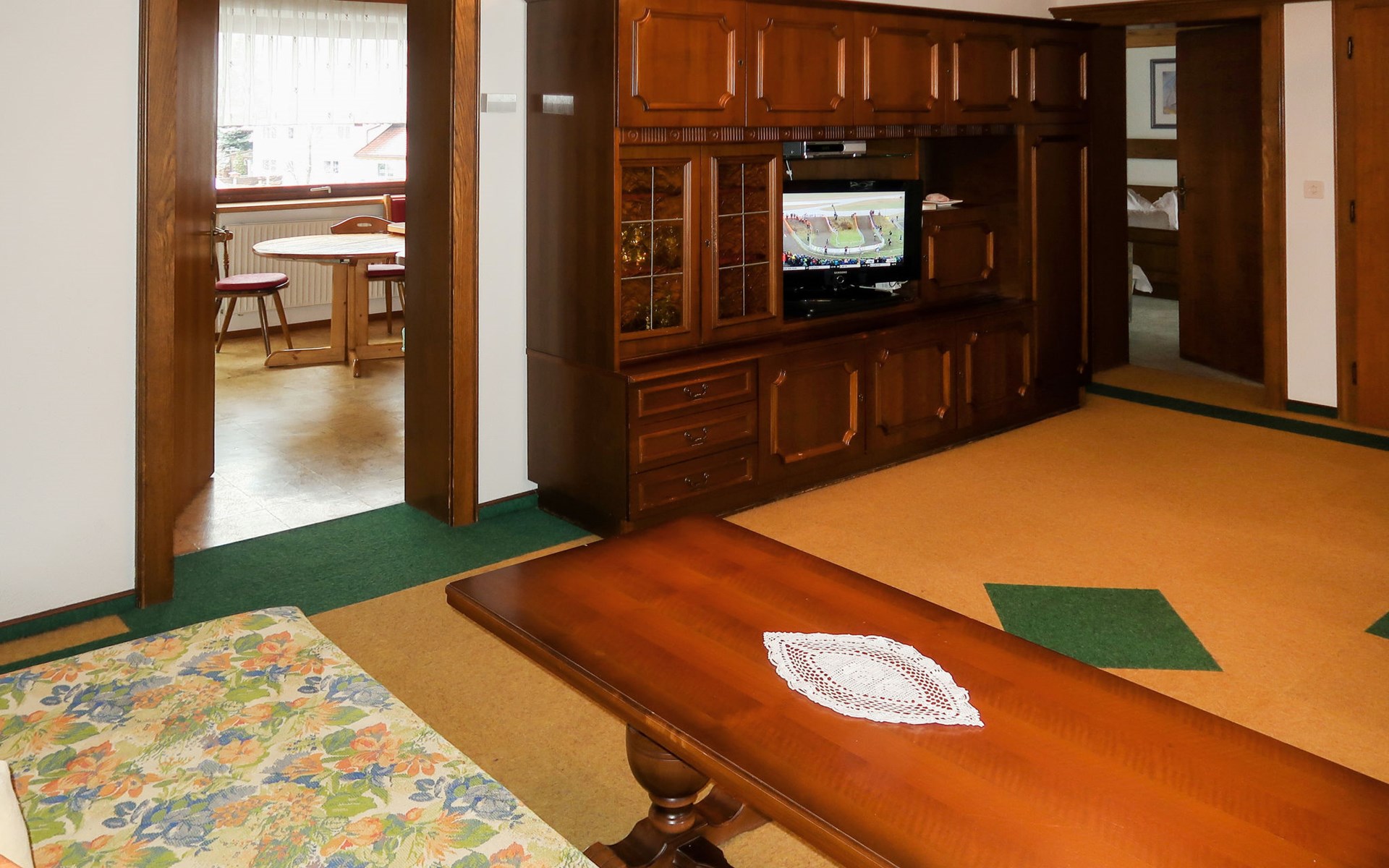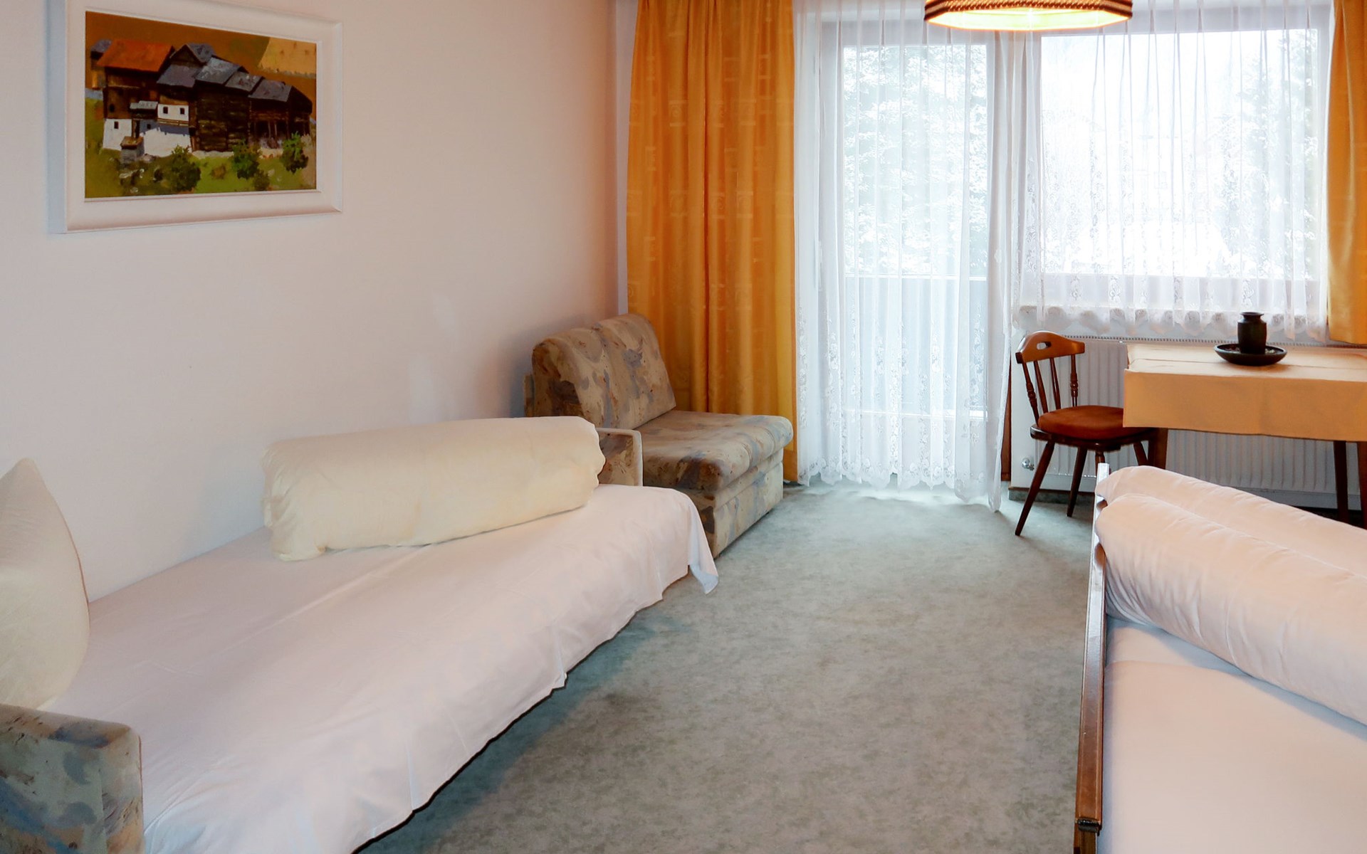 House "Martina", 970 m a.s.l.. In the district of Dorf 500 m from the centre of Pfunds, 30 km from the centre of Landeck. For shared use: property 1'500 m2 (fenced) with trees. In the house: storage room for skis. Parking (for 4 cars) on the premises. Supermarket 500 m, bus stop 200 m, railway station "Landeck" 30 km, indoor swimming pool 28 km. Mountain railway 15 km, slopes 15 km, ski bus stop 200 m, ski school 750 m, sled run 1 km, cross country ski track 500 m. Well-known ski regions can easily be reached: Nauders (Skiarena Reschenpass) 15 km, Samnaun (Silvretta Skiarena) 15 km. Please note: ski bus (free of charge). Free ski bus service to the ski region Pfunds-Samnaun and Pfunds-Nauders. Please note: the owner lives in the same residence.