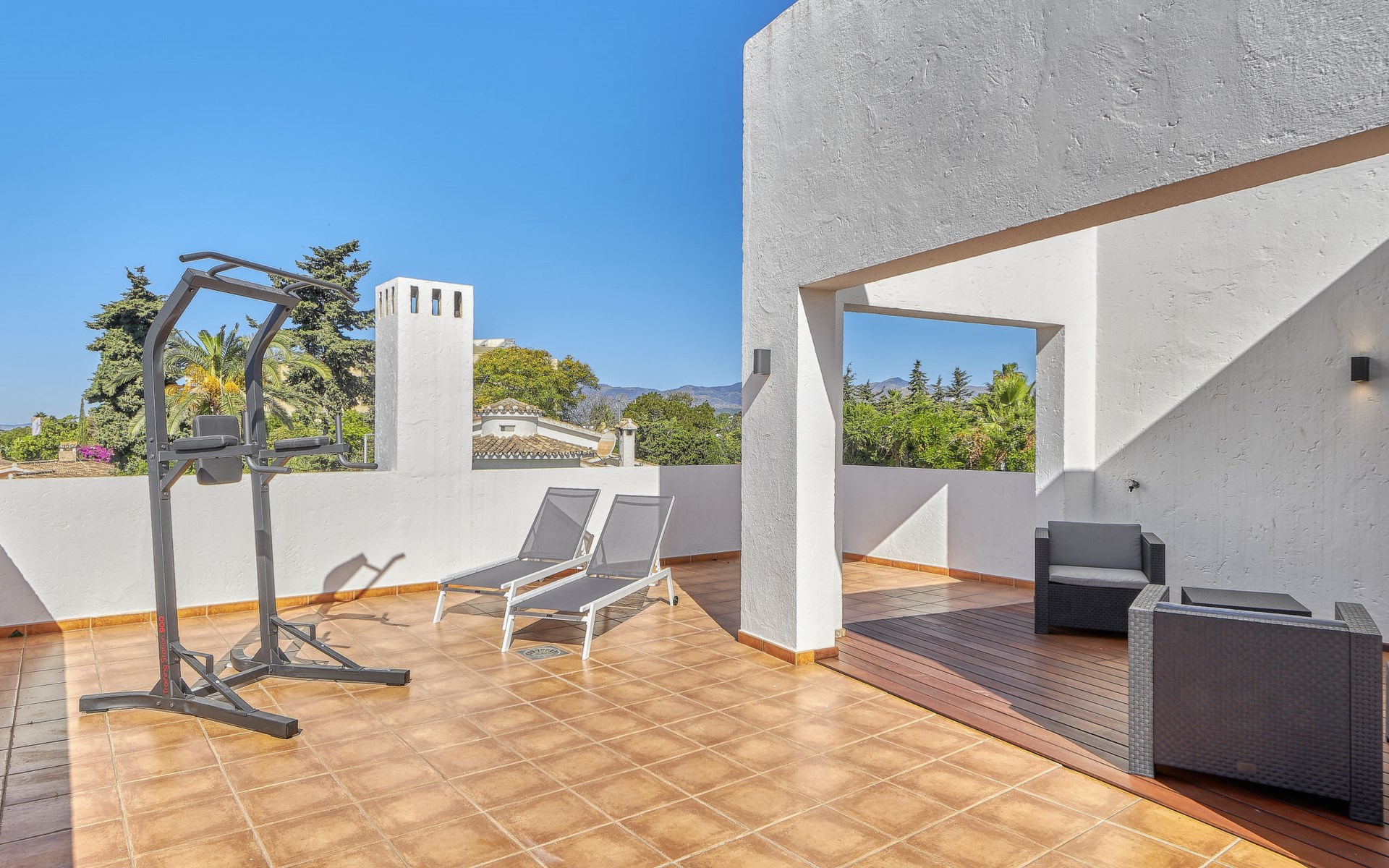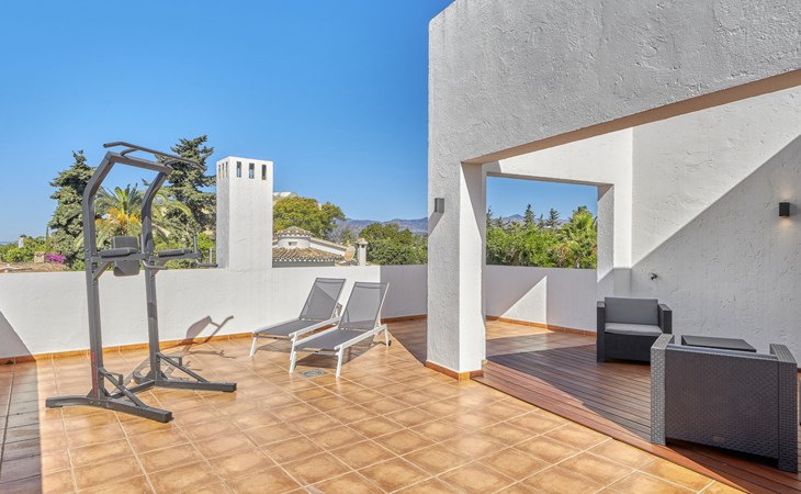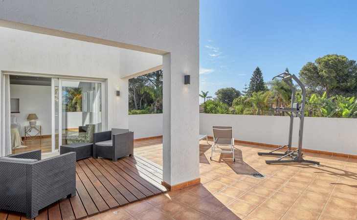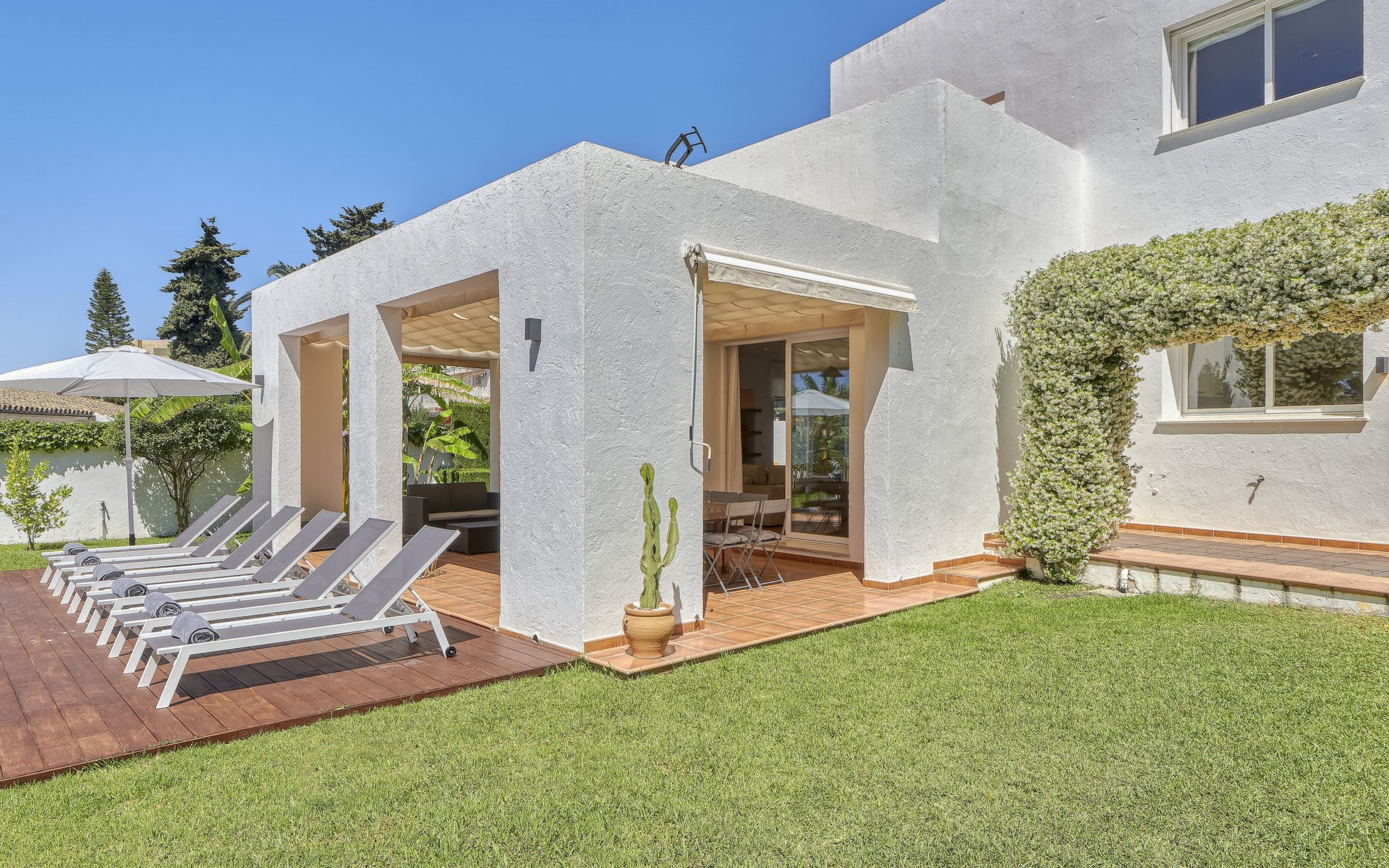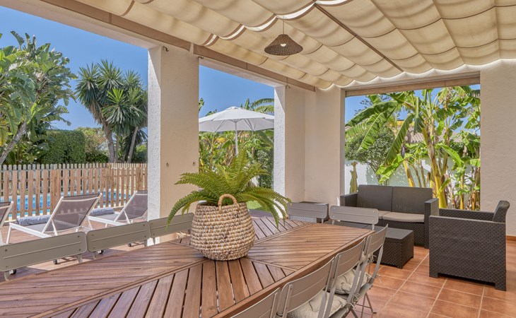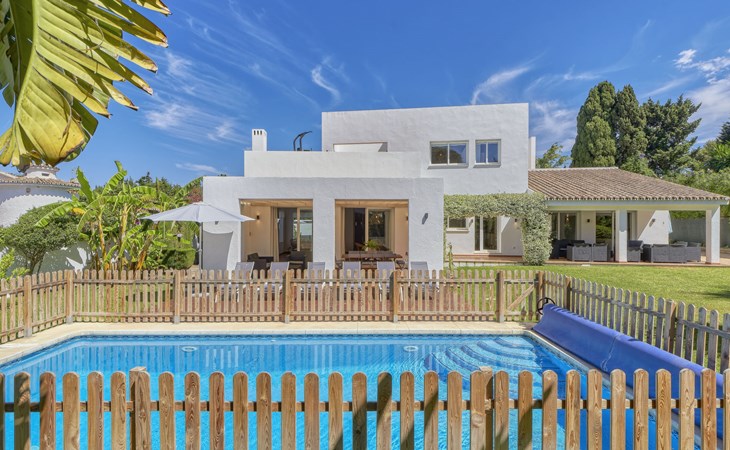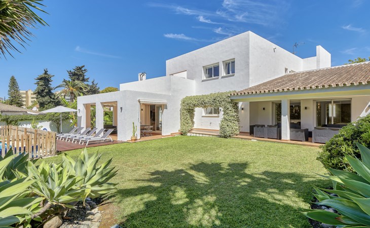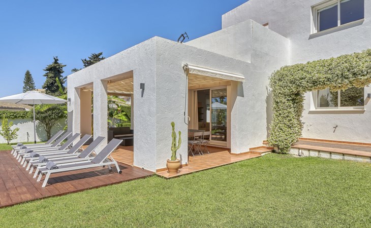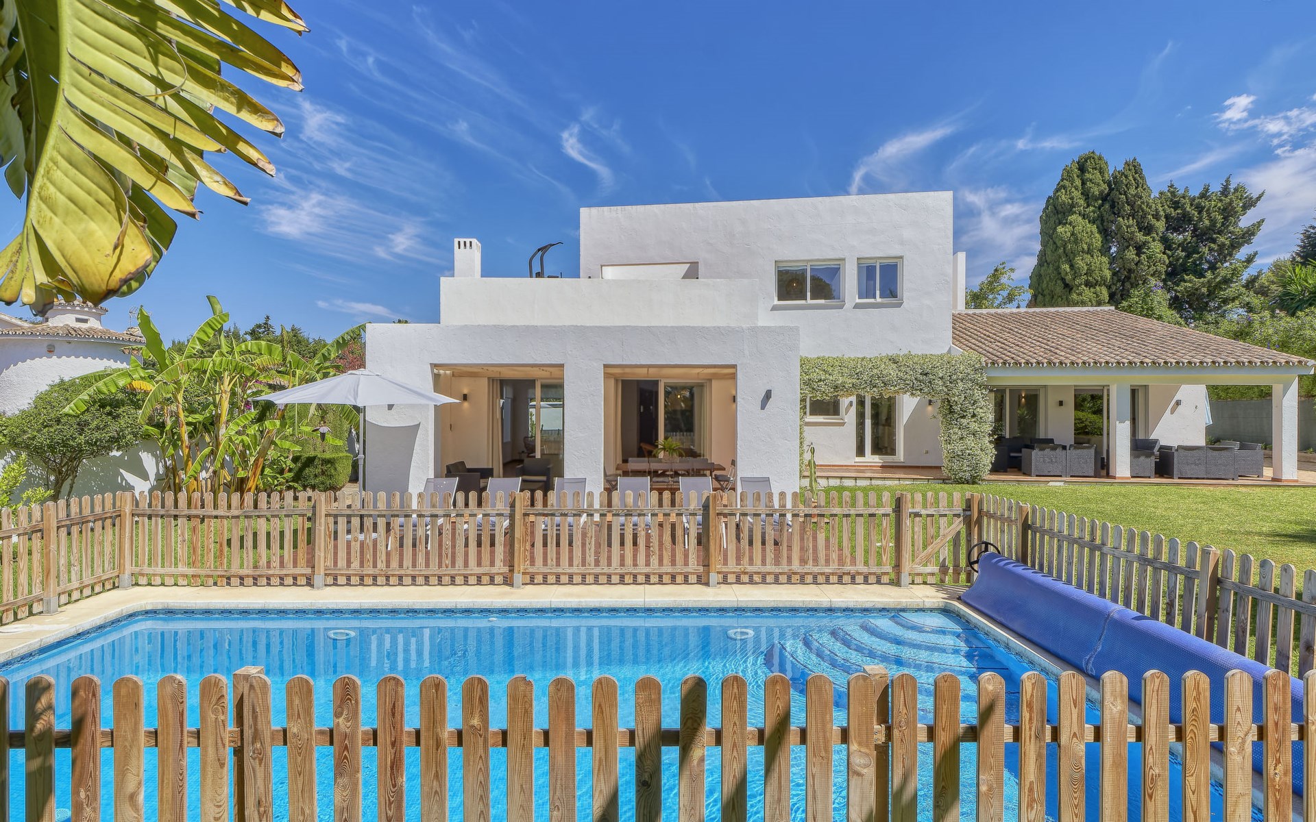 Atalaya 14 km from Estepona: Cosy, comfortable house "Villa Marina", 2 storeys, detached, renovated in 2023. 750 m from the sea, 750 m from the beach, south facing position. Private: property 1'263 m2 (fenced), garden with lawn, swimming pool angular (8 x 4 m, depth 120 - 200 cm, seasonal availability: 01.Jan. - 31.Dec.) with internal staircase. Supermarket 700 m, restaurant 500 m, bicycle rental 7.2 km, bus stop "Estación autobuses Marbella" 14.9 km, railway station "Estación de tren Fuengirola" 46.1 km, sandy beach "Playa del Saladillo" 5.7 km pebble beach "Playa San Pedro de Alcántara" 4.2 km. Marina 6.8 km, golf course (36 hole) 3.8 km, surf school 7.6 km, riding stable 7.5 km. Nearby attractions: Selwo Aventura 9.9 km, Orchidarium Estepona 15.7 km, Roman Villa & Roman Baths 8.1 km, Gibraltar 61.6 km, Marbella Center 14.1 km, Caminito del Rey 85.9 km. Well-known lakes can easily be reached: Lago de Las Tortugas 11 km, Reserva Natural Laguna Fuente de Piedra 140 km. Hiking paths: Senda Litoral Atalaya Isdabe - Marbella 12 km, Senda Estepona -Atalaya Isdabe - 11 km, Senda Atalaya Isdabe-Acequia Guadalmina 14 km. The owner does not accept any youth groups. Neighbourhood highly sensitive to noise. Quietness and good behaviour expected.