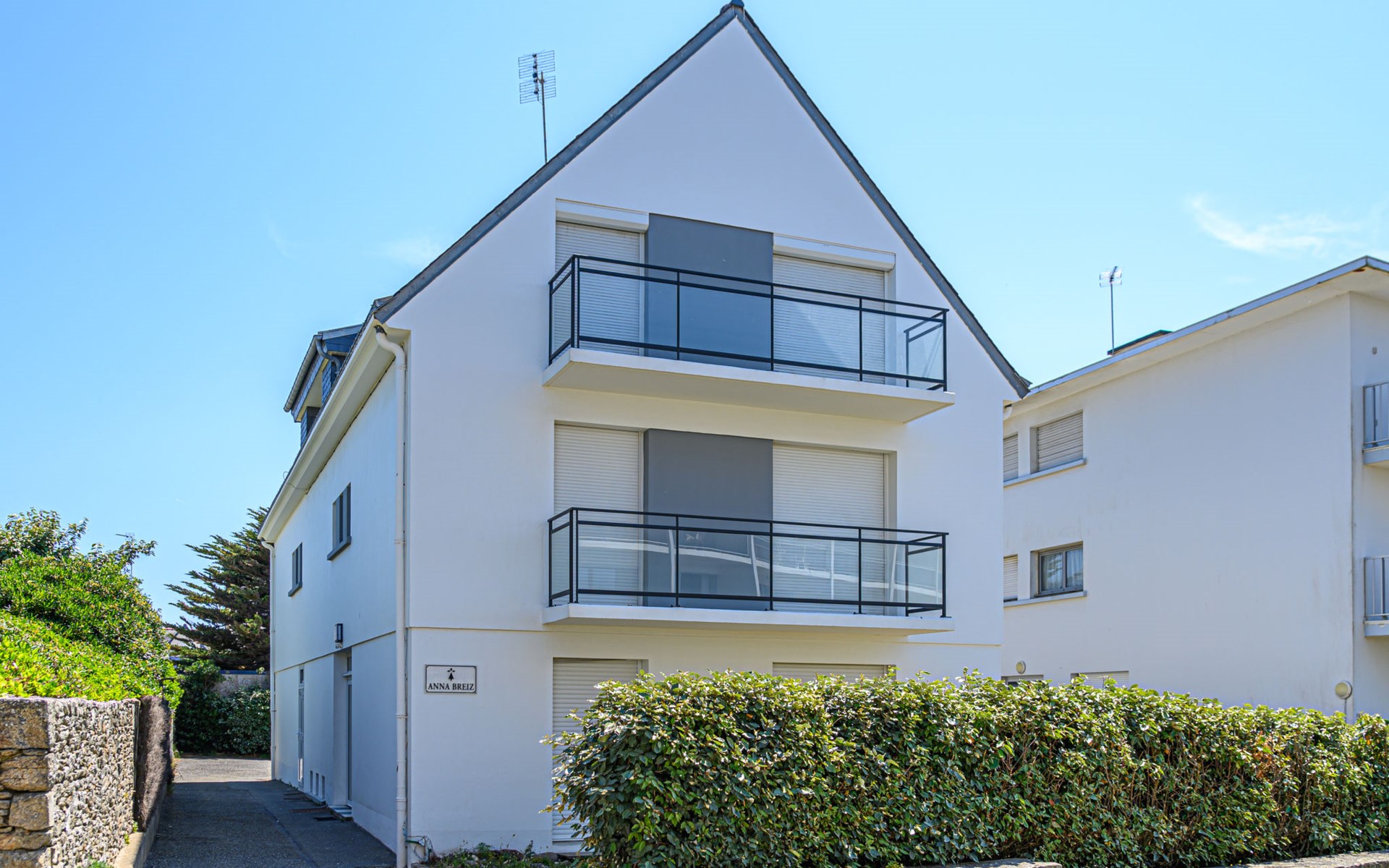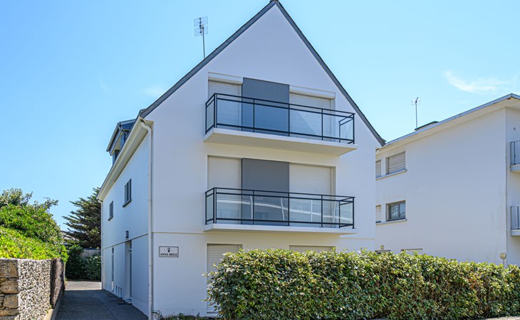 Quiberon: Residence "Résidence Anna Breizh", 3 storeys. 30 m from the sea, 300 m from the beach. Shop 1 km, grocery 1 km, restaurant 1 km, bar 1 km, bus stop 200 m, sandy beach "Grande plage De Quiberon" 300 m, thermal baths "Thalassothérapie" 600 m. Marina 1 km, golf course (9 hole) 800 m. Nearby attractions: Casino de Quiberon 200 m, Thalassothérapie 600 m, Les Alignements de Carnac 30 km, Vannes 50 km, Belle Ile en Mer. The keys‘ handover takes place by the agency Interhome in Quiberon, 1 km.