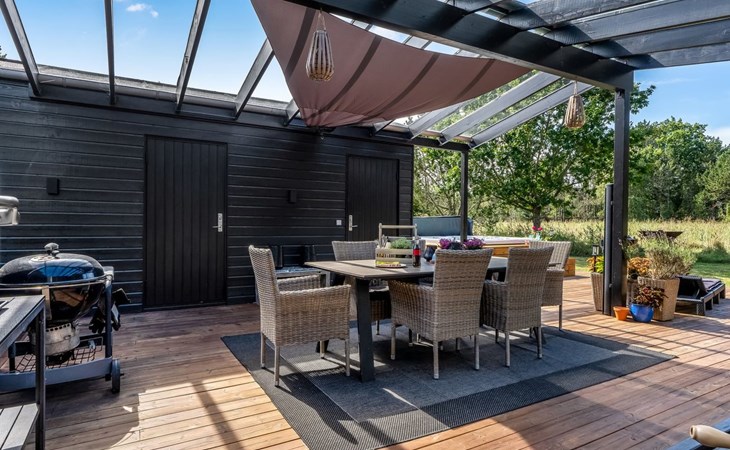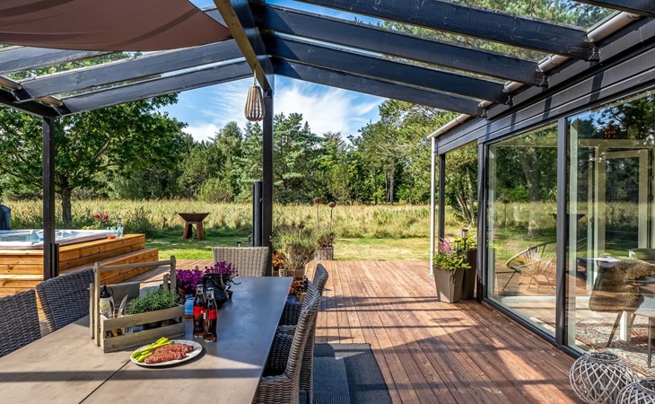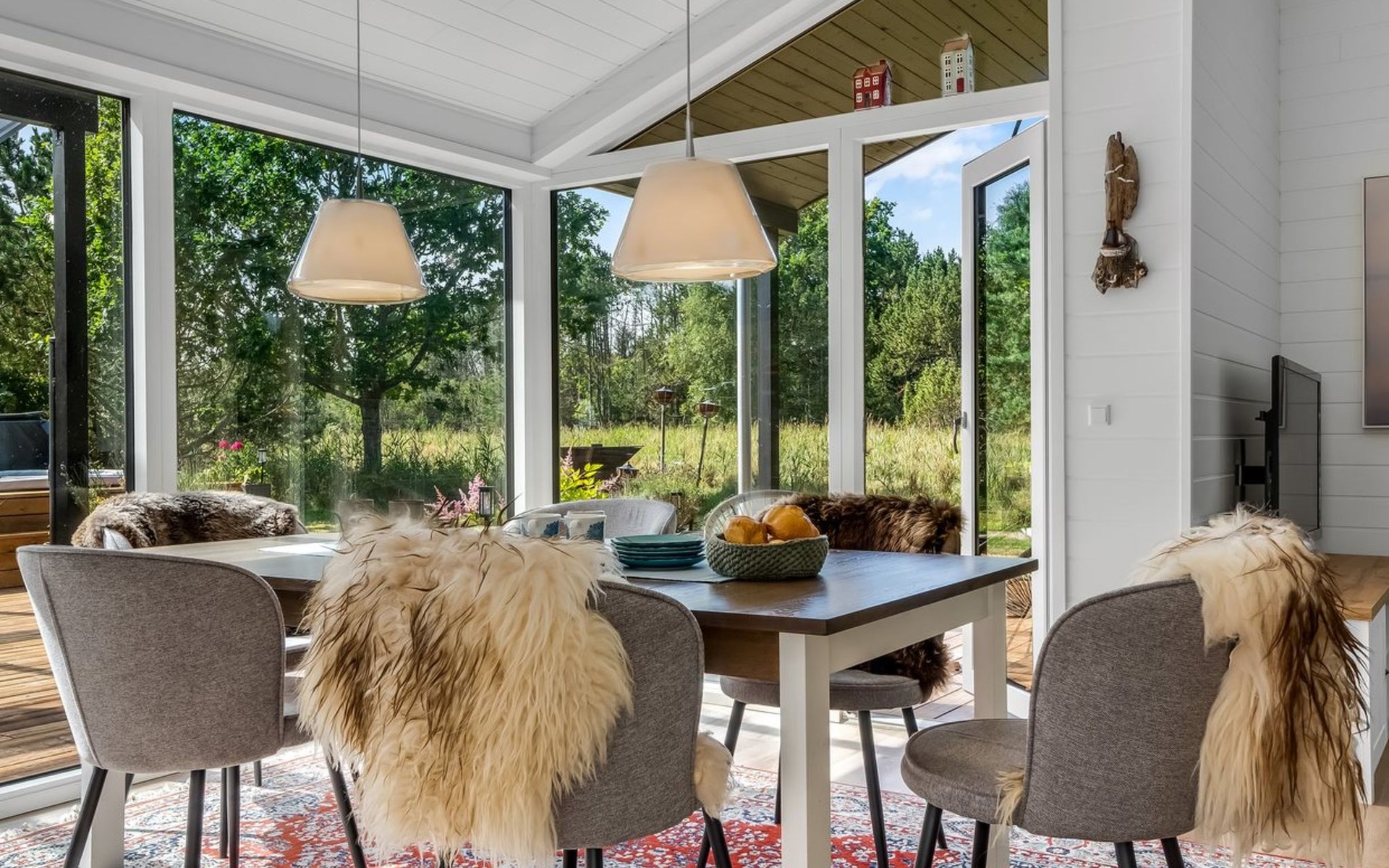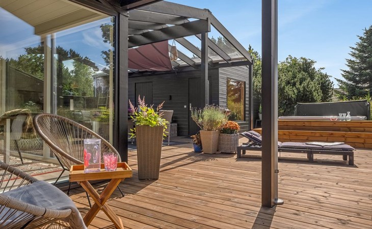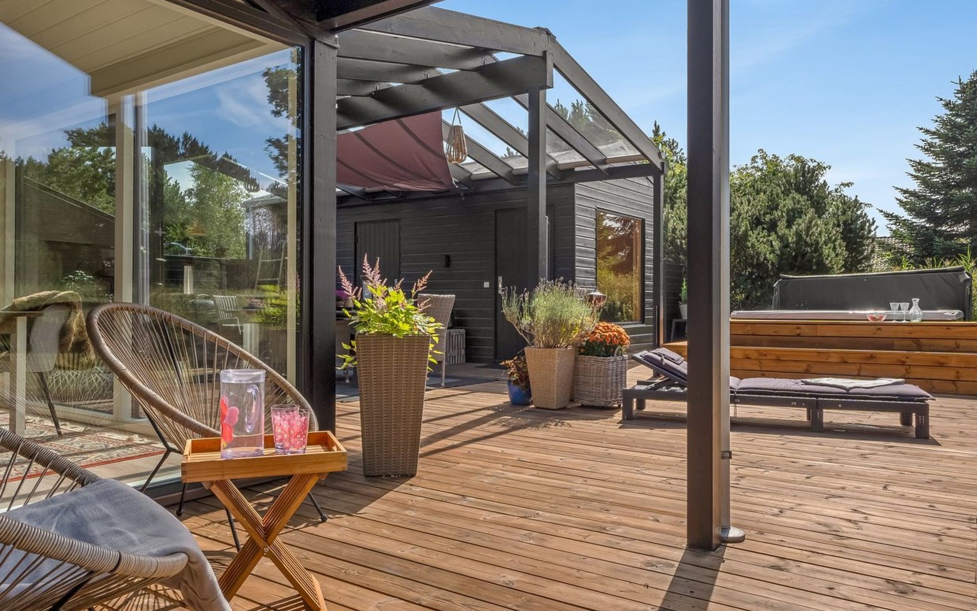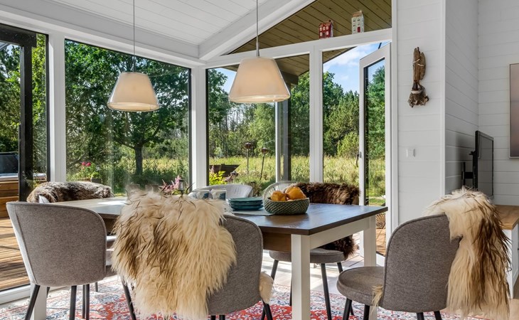 Single-family house, built in 2017. 2 km from the sea. Private: natural state property 1'253 m2. Outdoor shower, barbecue. In the house: sauna, washing machine. Parking at the house. Grocery 5 km. The owner does not accept any youth groups.