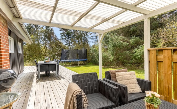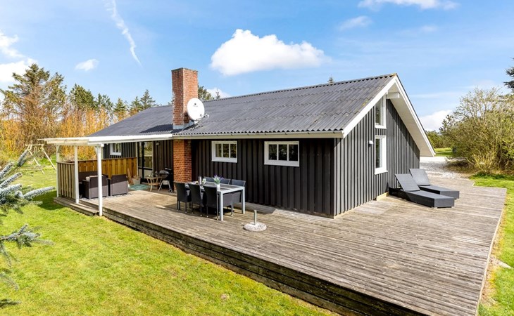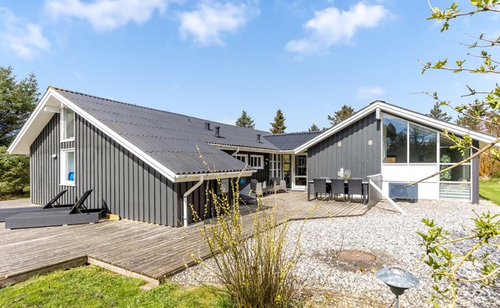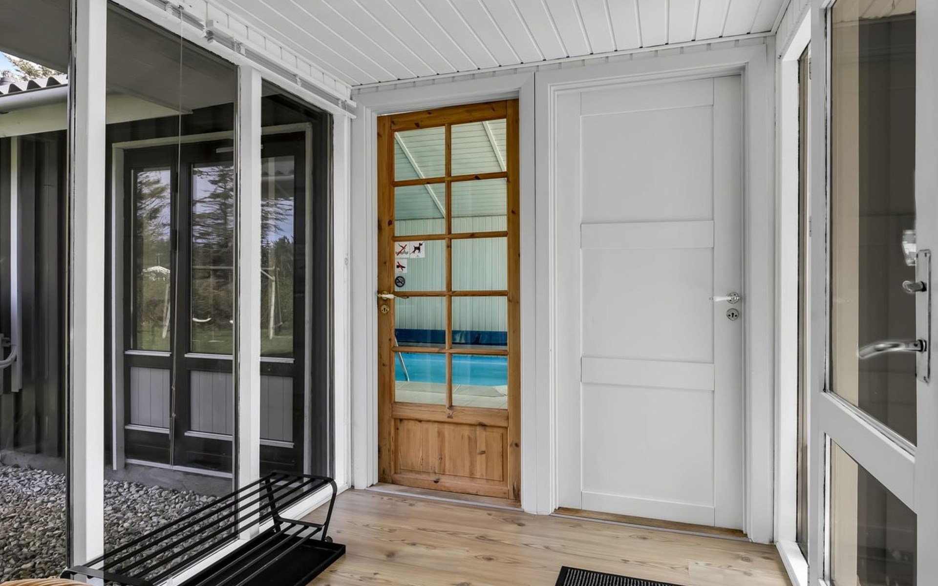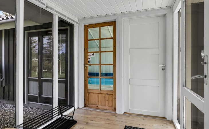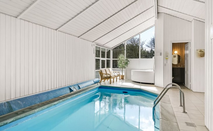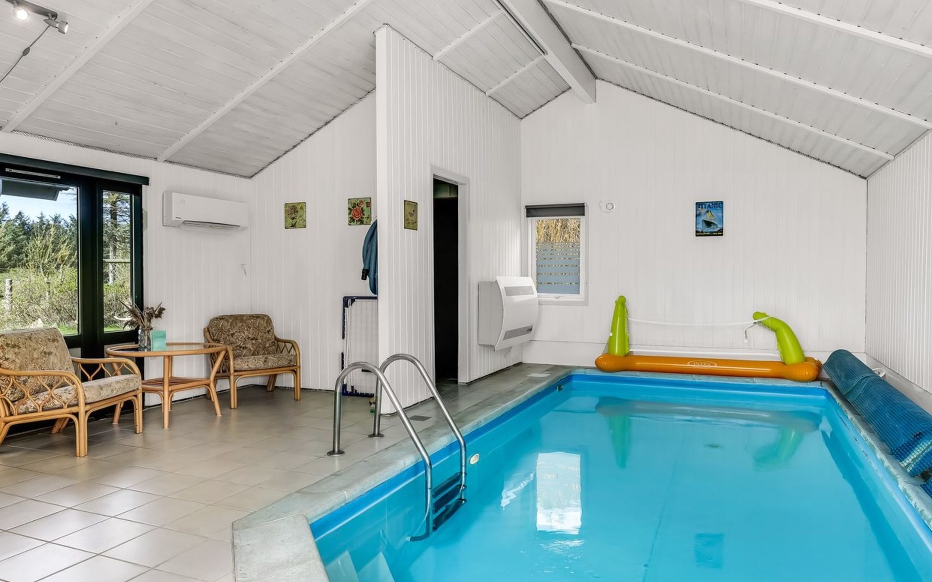 Single-family house, built in 1989. 300 m from the sea. Private: natural state property 1'292 m2, indoor pool (3 x 5 m, 1'7.5 m2, depth 130 - 130 cm). Terrace (85 m2), children's playground (swing). In the house: sauna, trampoline, washing machine, tumble dryer. Parking at the house. E-charging station. Grocery 600 m. The owner does not accept any youth groups.