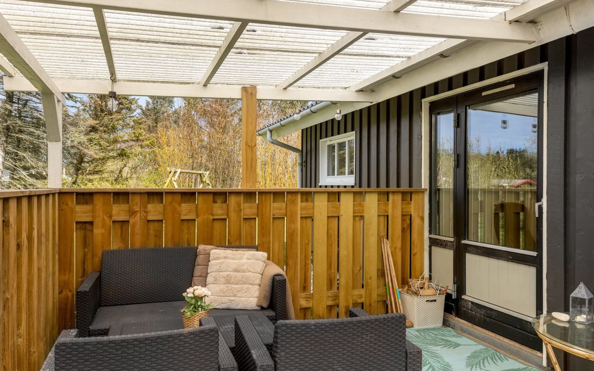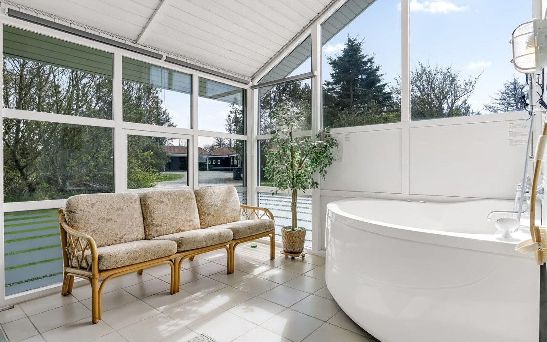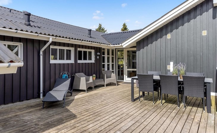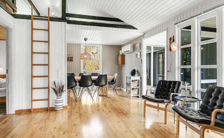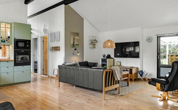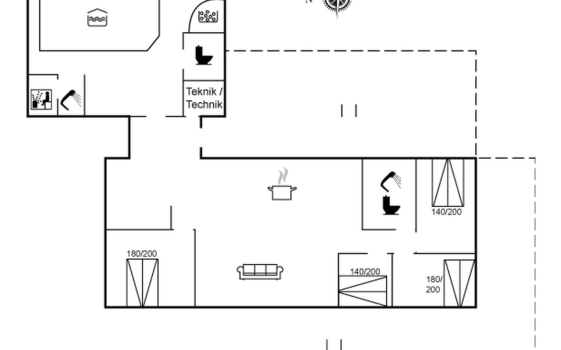 Single-family house, built in 1989. 300 m from the sea. Private: natural state property 1'292 m2, indoor pool (3 x 5 m, 1'7.5 m2, depth 130 - 130 cm). Terrace (85 m2), children's playground (swing). In the house: sauna, trampoline, washing machine, tumble dryer. Parking at the house. E-charging station. Grocery 600 m. The owner does not accept any youth groups.