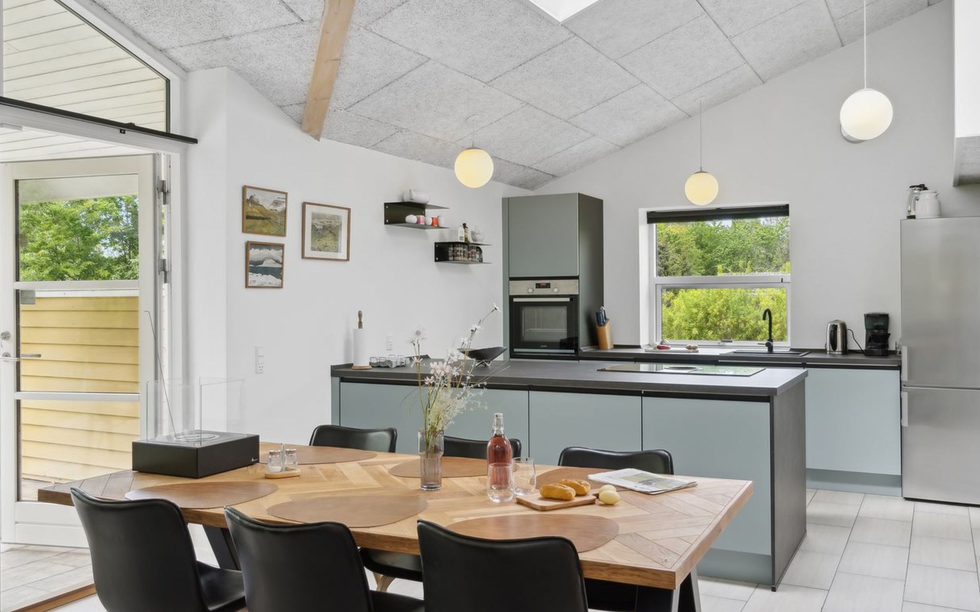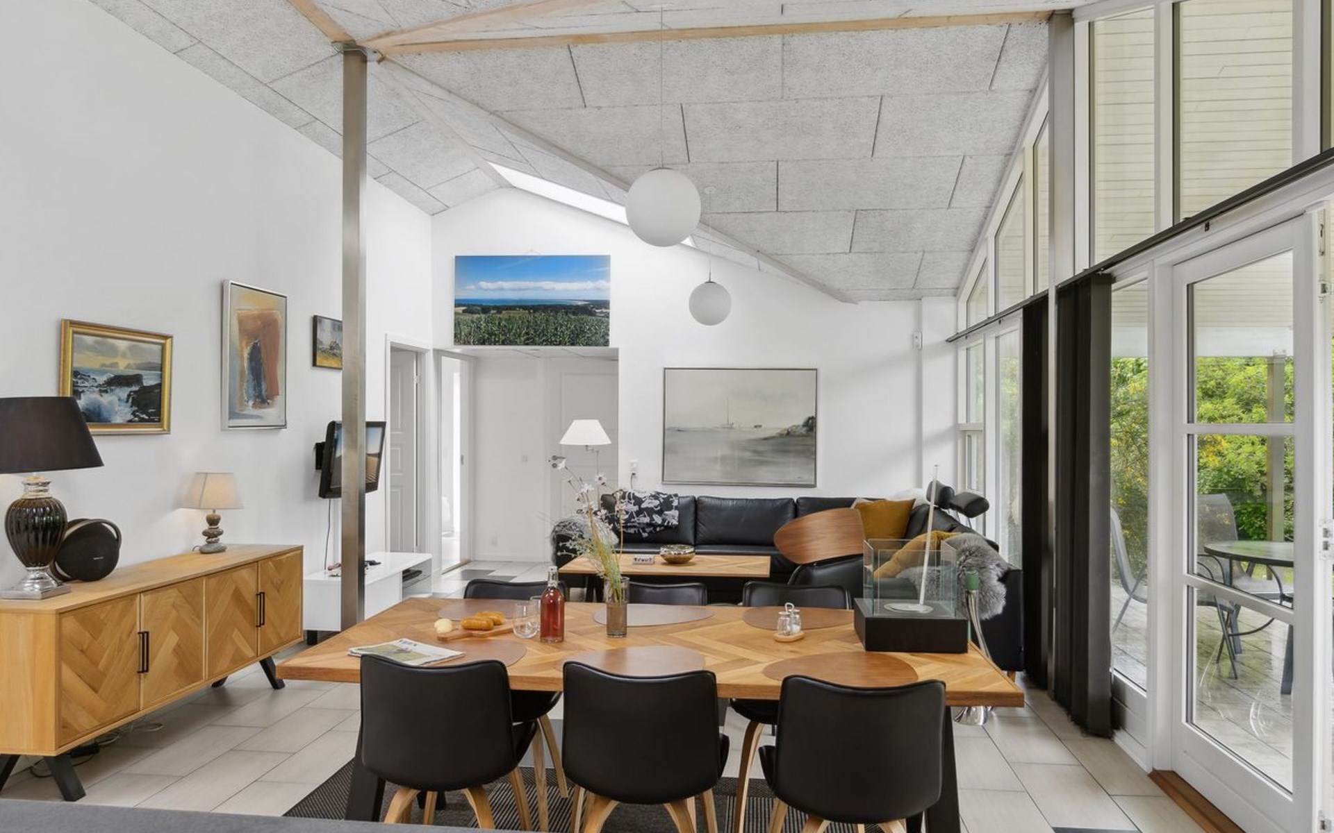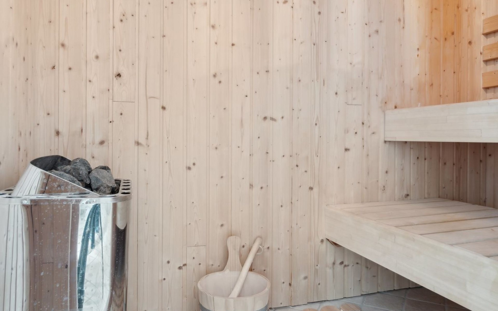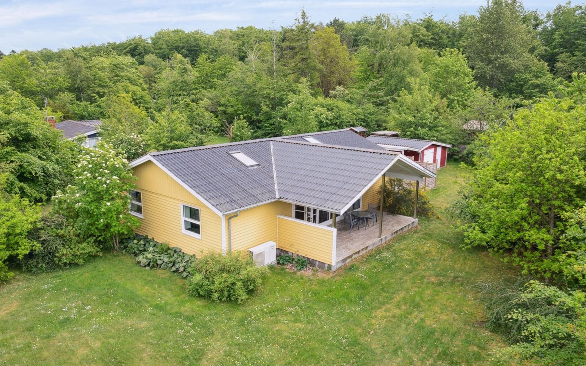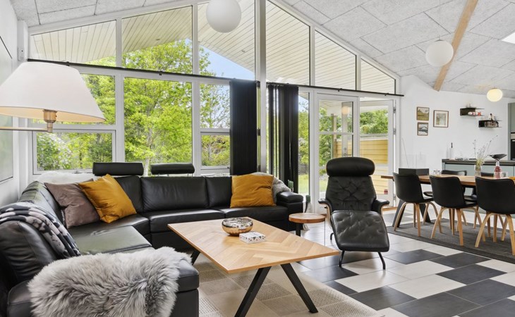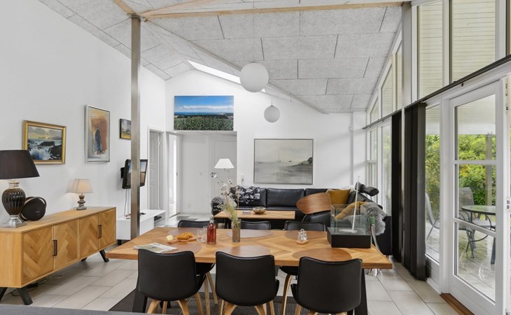 Single-family house, built in 1964. 950 m from the sea. Private: property 1'239 m2, well-kept garden. Terrace (40 m2), barbecue, children's playground (slide, swing). In the house: sauna, washing machine. Parking at the house. Grocery 800 m. Golf course 8.2 km. The owner does not accept any youth groups.