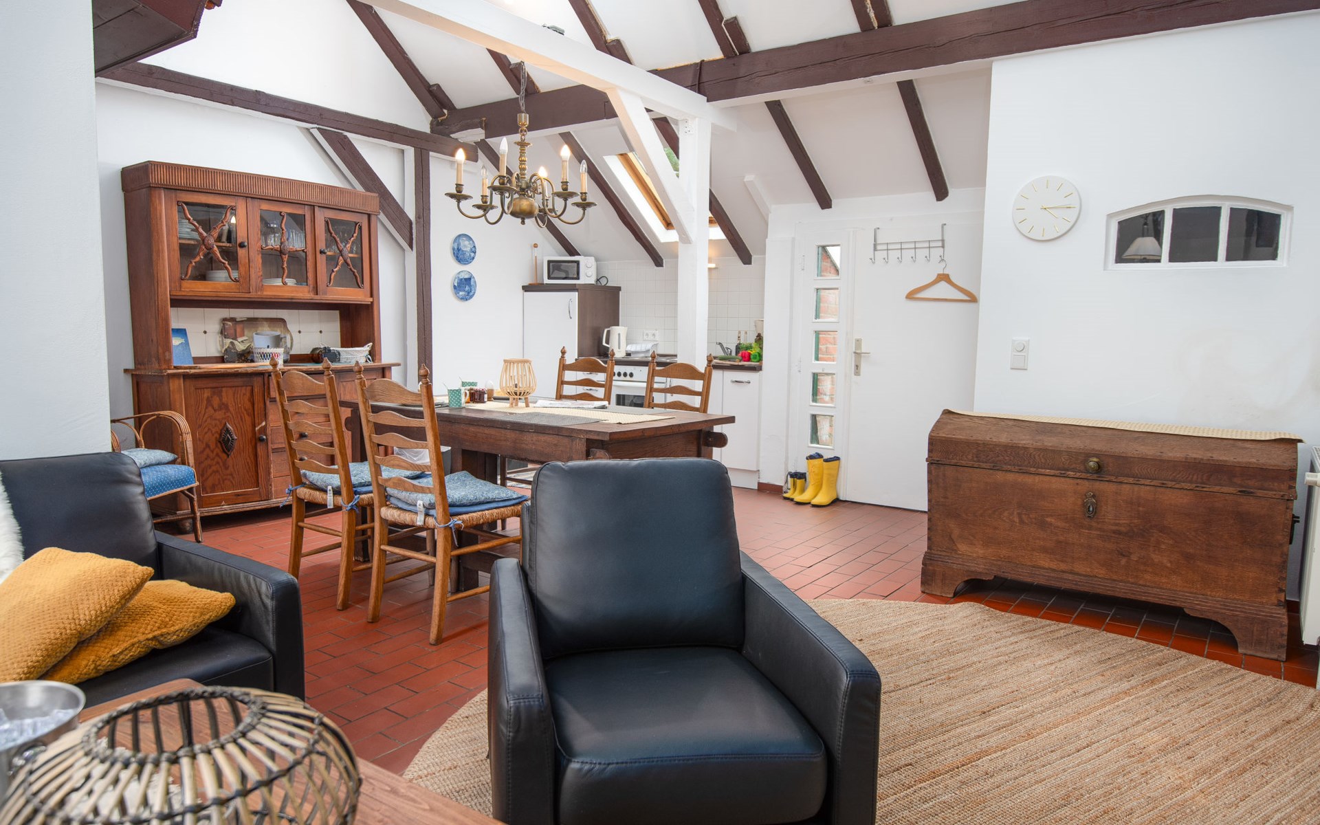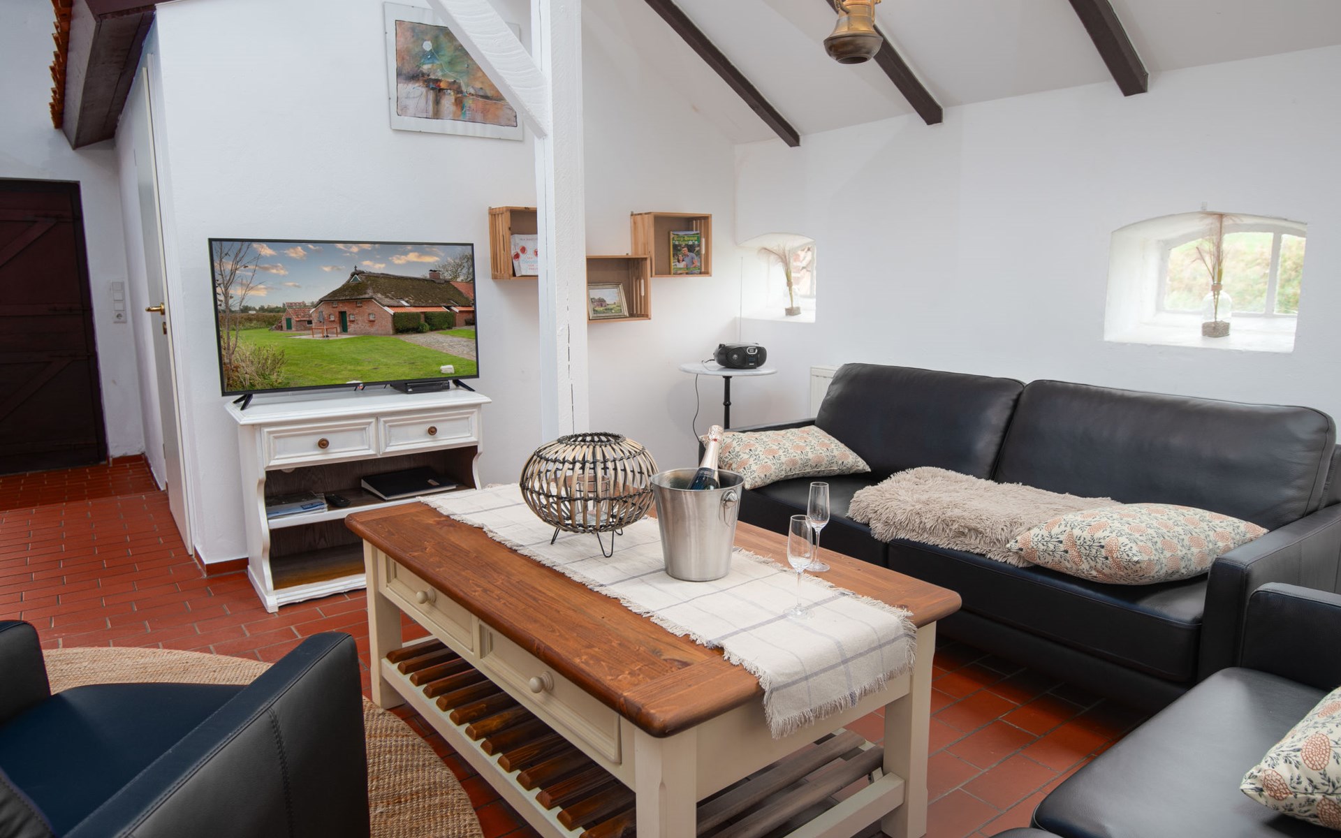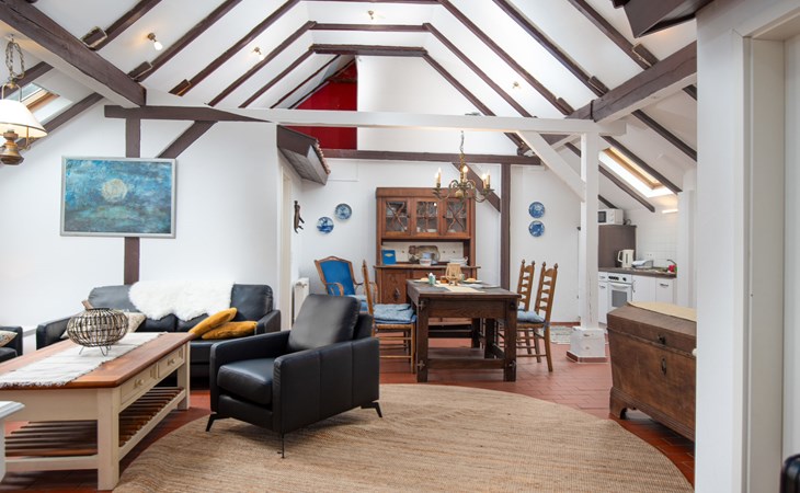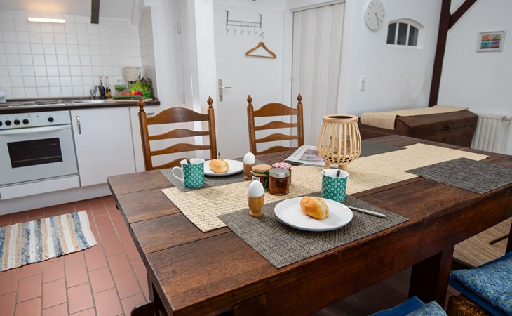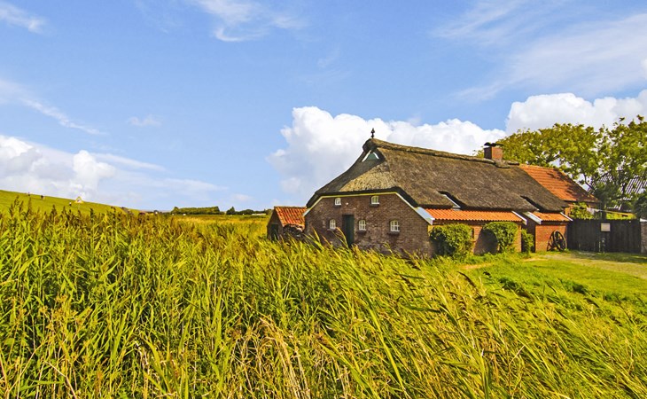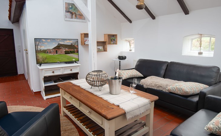 Rustic, historical semi-detached house "Itzendorfer Rott", built in 1834, surrounded by meadows and fields. On the outskirts, 2.5 km from the centre, in a quiet position, 50 m from the sea, 2.5 km from the beach, in the countryside. In the house: central heating system. Parking at the house. Supermarket 3.5 km, restaurant 500 m, bakery 2.5 km, café 100 m, railway station "Norddeich Mole" 3.5 km, ferry 3.5 km, sandy beach 2.5 km, outdoor swimming pool 14 km, indoor swimming pool 2.5 km. Golf course (18 hole) 8 km, surf school 2.5 km, tennis 4 km. The holiday house is a rustic, partly thatched farmhouse (under a preservation order) .