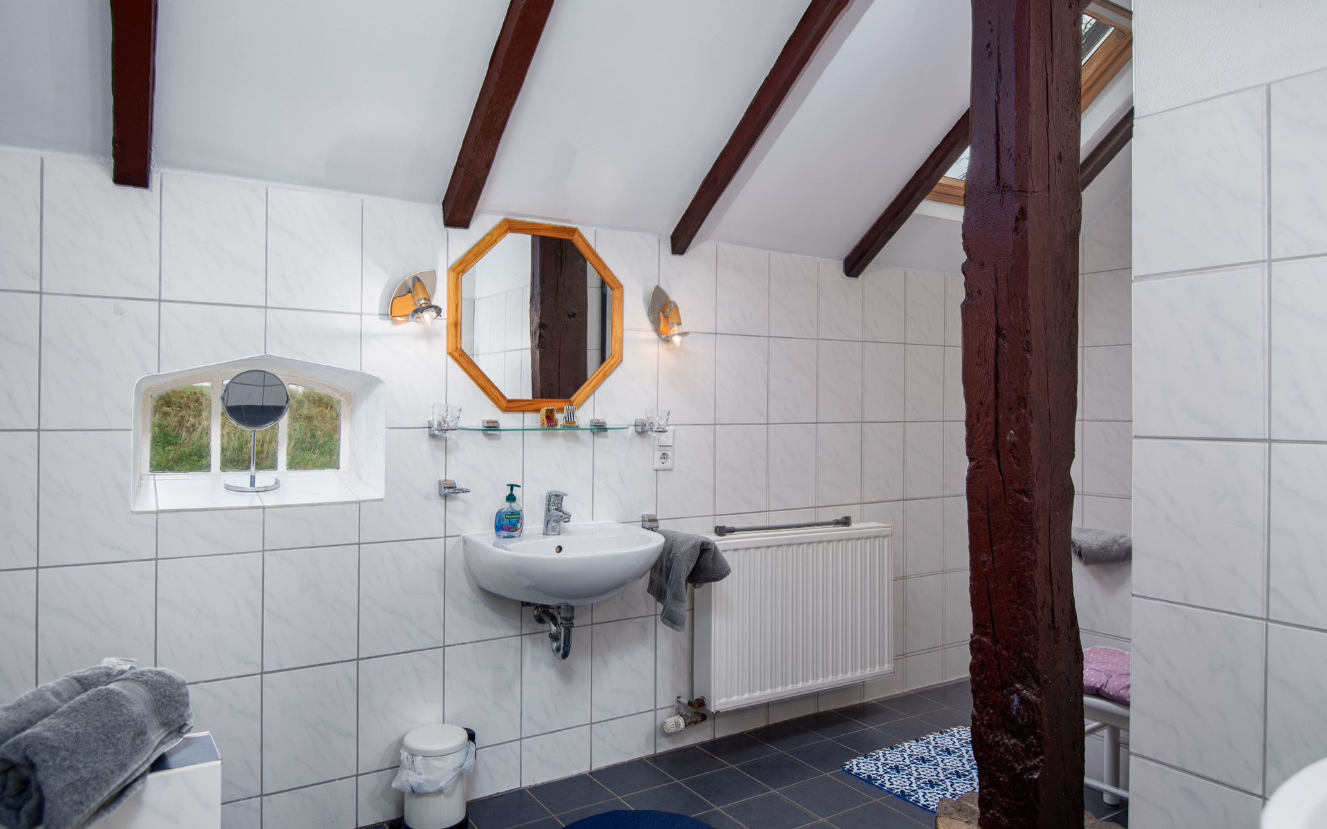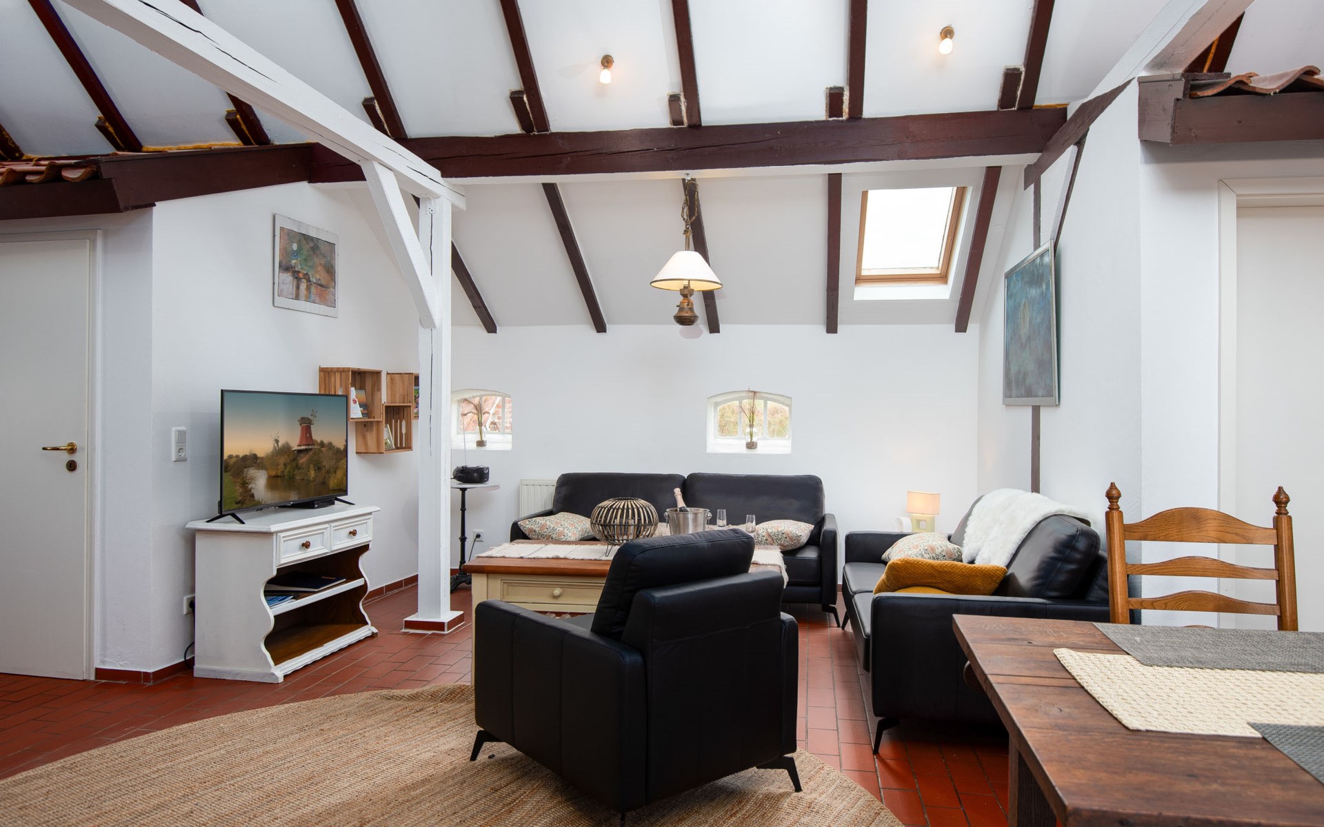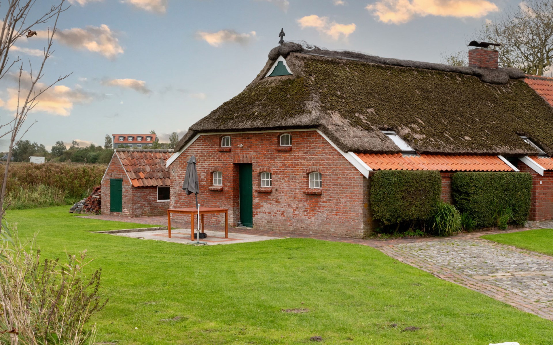 Rustic, historical semi-detached house "Itzendorfer Rott", built in 1834, surrounded by meadows and fields. On the outskirts, 2.5 km from the centre, in a quiet position, 50 m from the sea, 2.5 km from the beach, in the countryside. In the house: central heating system. Parking at the house. Supermarket 3.5 km, restaurant 500 m, bakery 2.5 km, café 100 m, railway station "Norddeich Mole" 3.5 km, ferry 3.5 km, sandy beach 2.5 km, outdoor swimming pool 14 km, indoor swimming pool 2.5 km. Golf course (18 hole) 8 km, surf school 2.5 km, tennis 4 km. The holiday house is a rustic, partly thatched farmhouse (under a preservation order) .