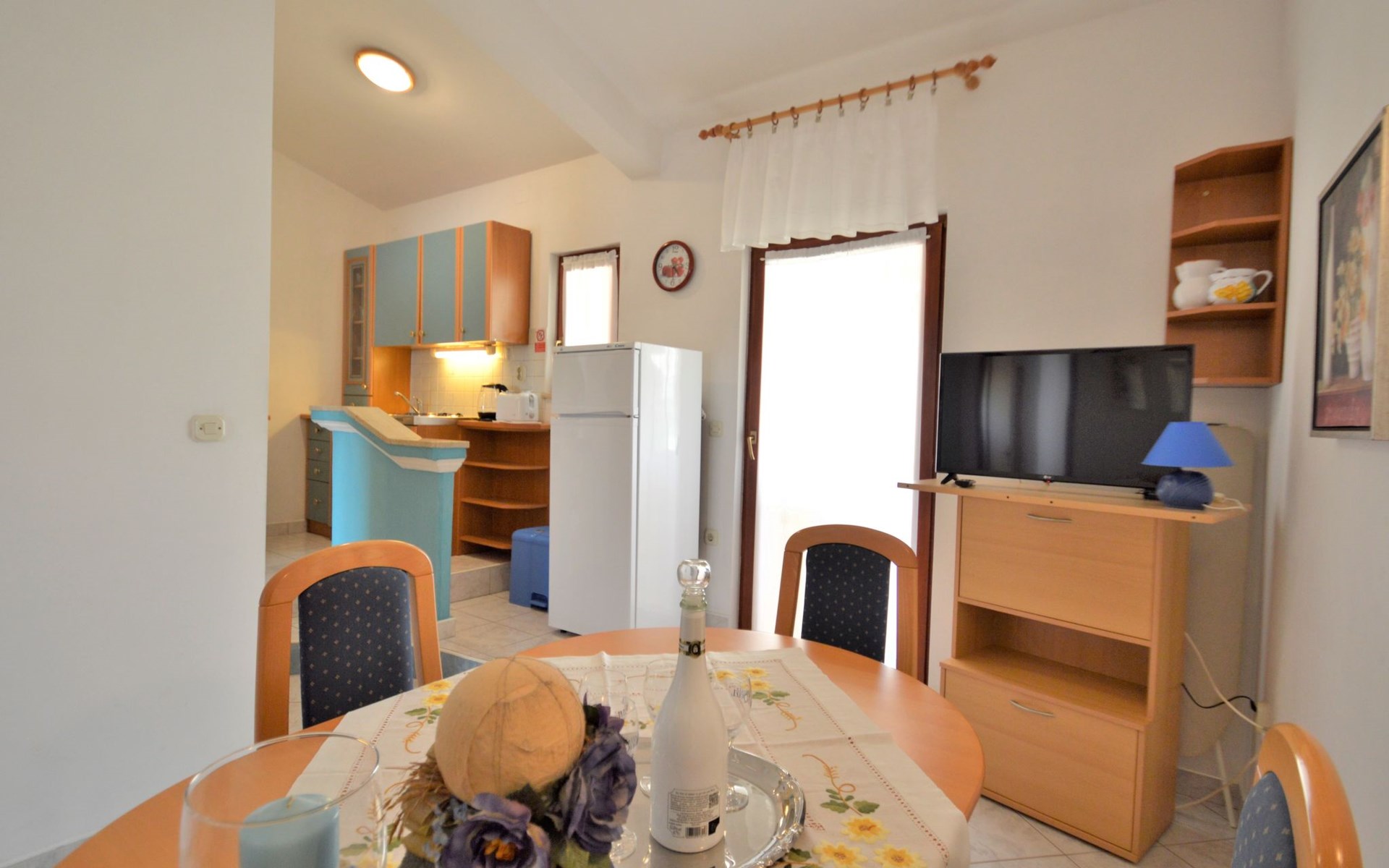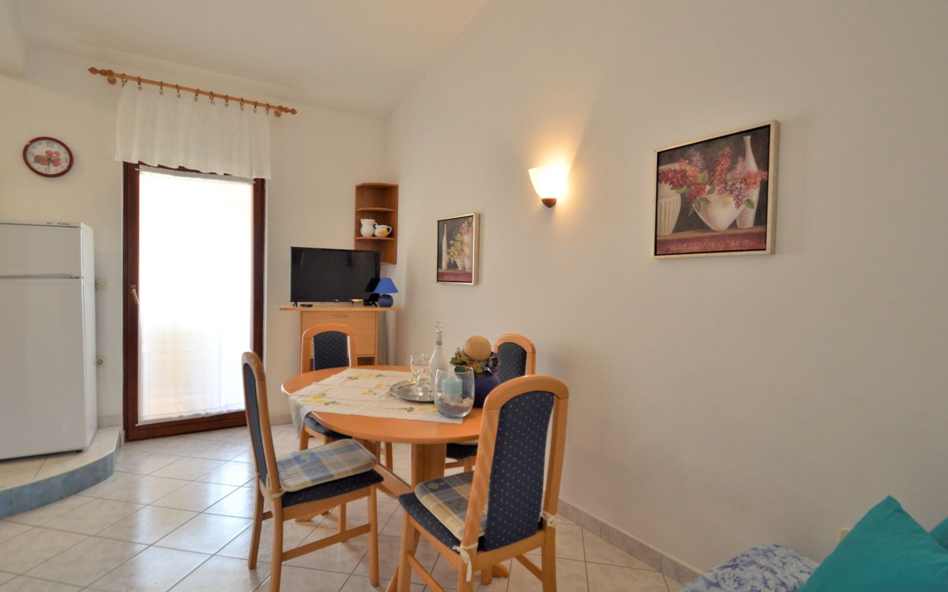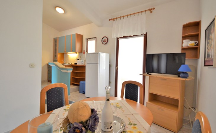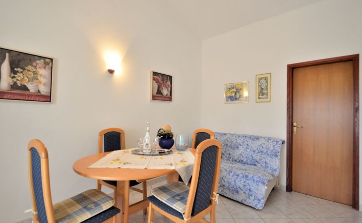 Apartment house "Denise". 800 m from the centre of Medulin, 12 km from the centre of Pula, in the residential district, 150 m from the sea, 400 m from the beach. For shared use: property 700 m2 with lawn and trees. Garden furniture, barbecue. In the house: internet access. Parking on the premises. Supermarket 500 m, bus stop 650 m, sandy beach 2 km pebble beach, rocky beach 400 m. Marina 800 m. Please note: private mooring (extra) on request. Airfield 10 km from the property.
