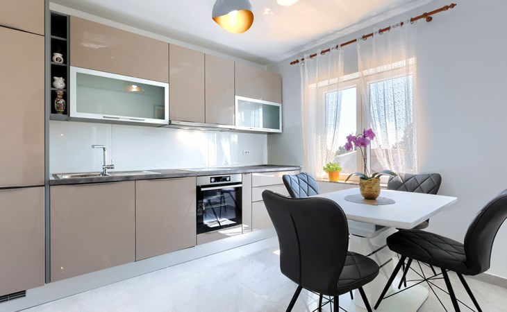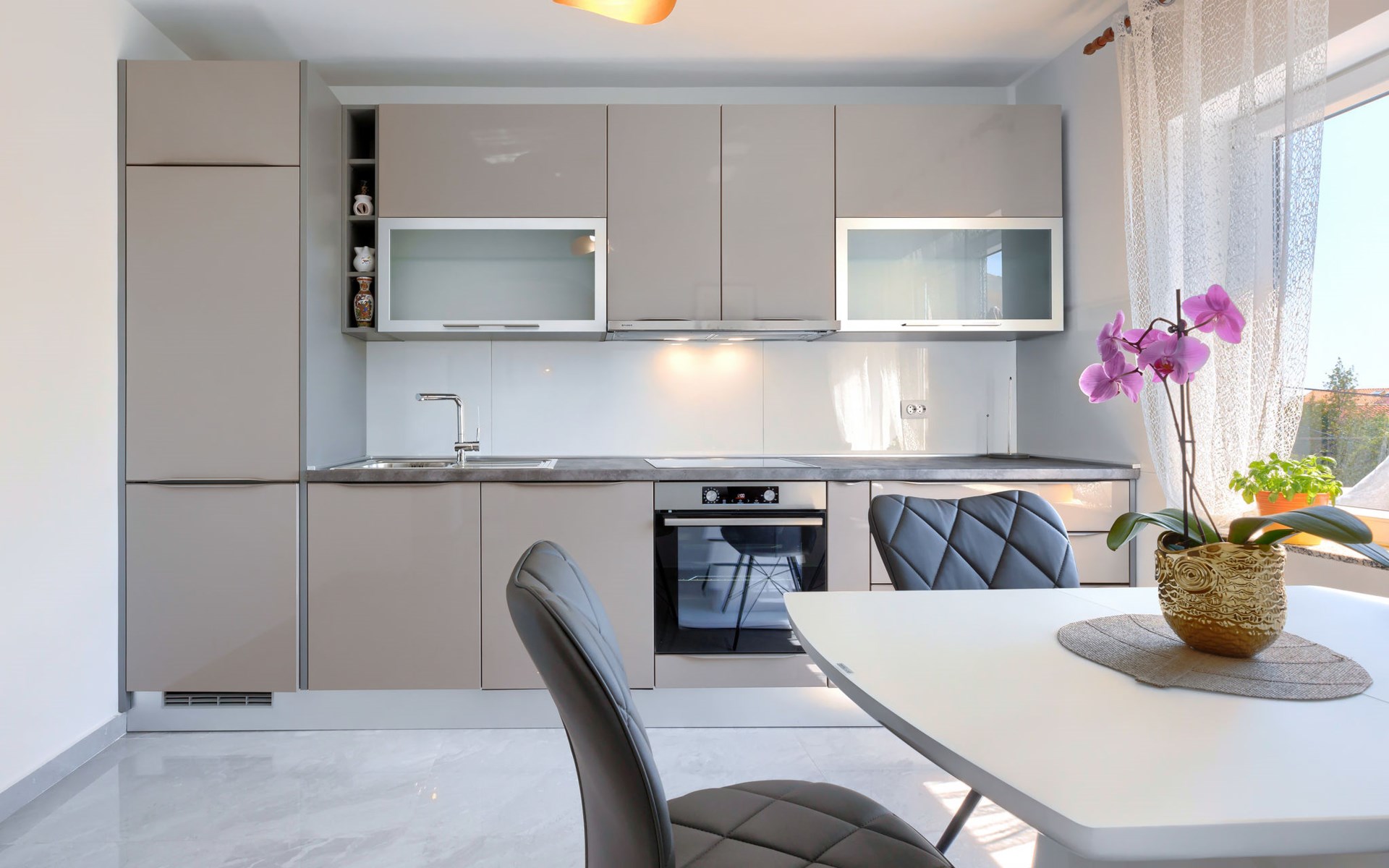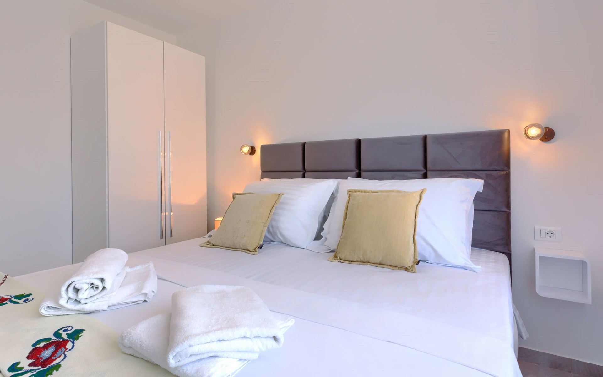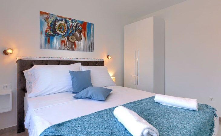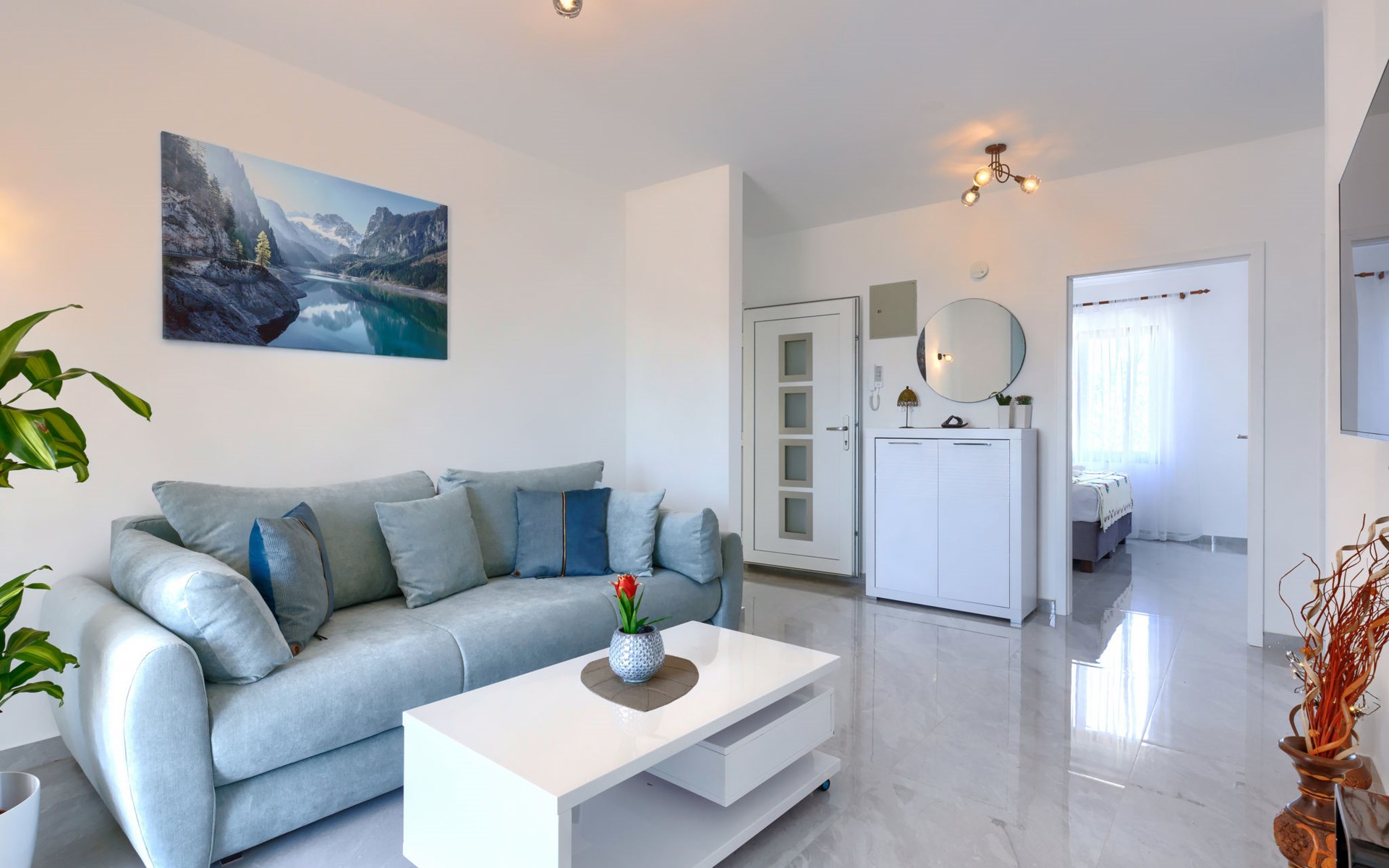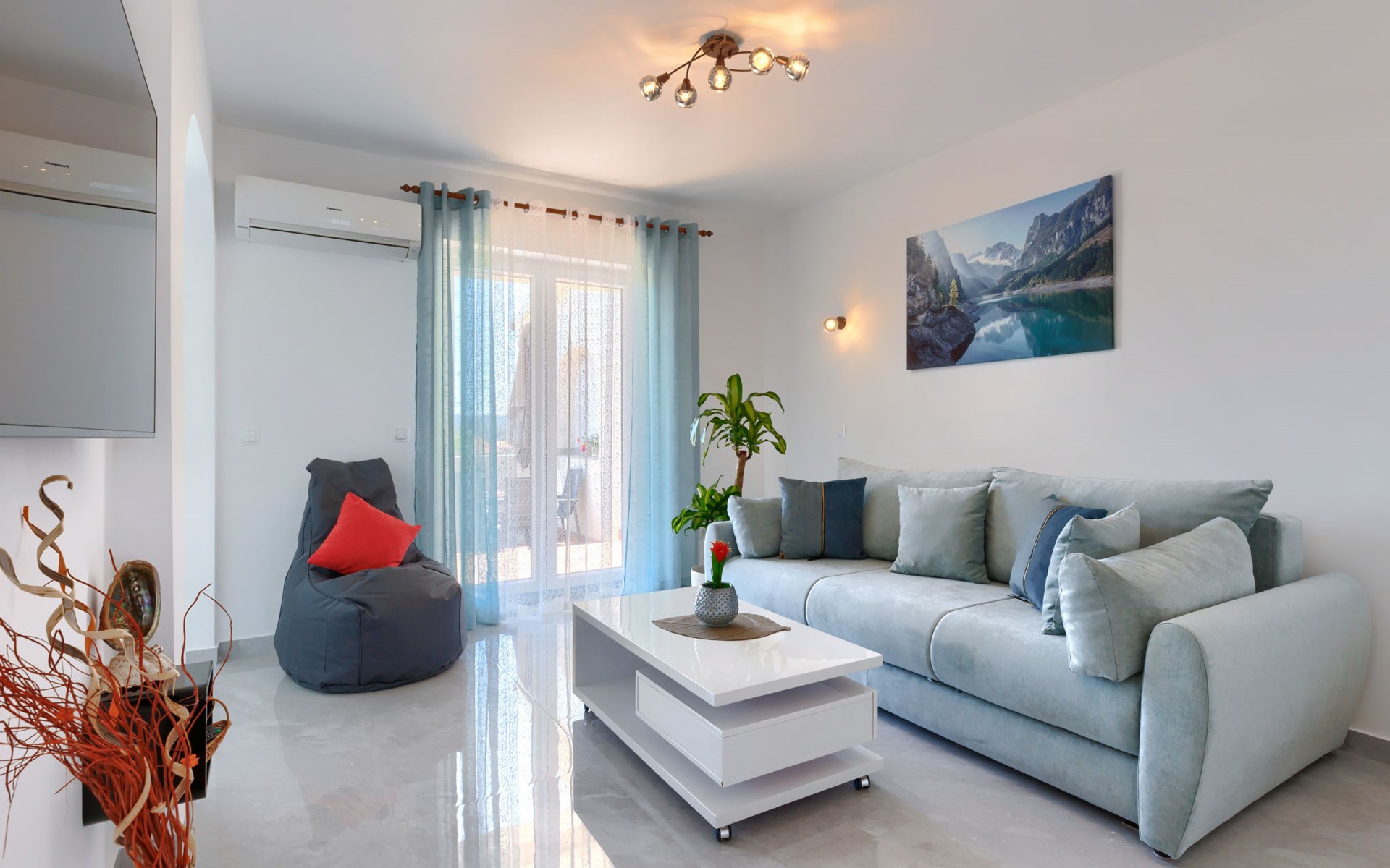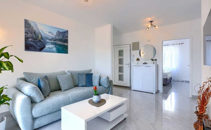Beautiful apartment house "Muki". 600 m from the centre of Medulin, in a quiet, sunny position, 500 m from the sea, 700 m from the beach. For shared use: property 1'850 m2 (fenced), beautiful garden with lawn and trees. Garden furniture, barbecue. In the house: internet access, storage room for bicycles. Parking at the house on the premises. Shop 200 m, supermarket, restaurant 300 m, bar, bakery 100 m, bus stop 230 m, sandy beach 1 km pebble beach, rocky beach 700 m. Golf course (18 hole) 27 km, surf school 2.5 km, tennis 2.5 km, riding stable 2 km, walking paths from the house 200 m, cycle lane 250 m, children's playground 1 km. Parking for trailer (extra). Video surveillance of the property.