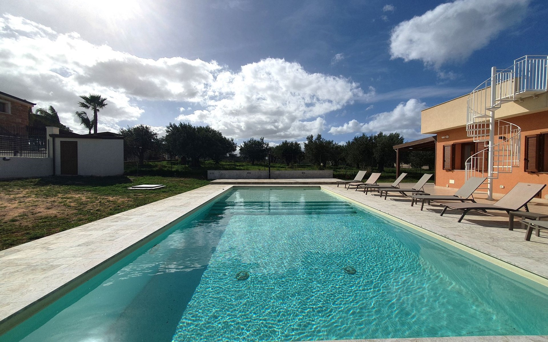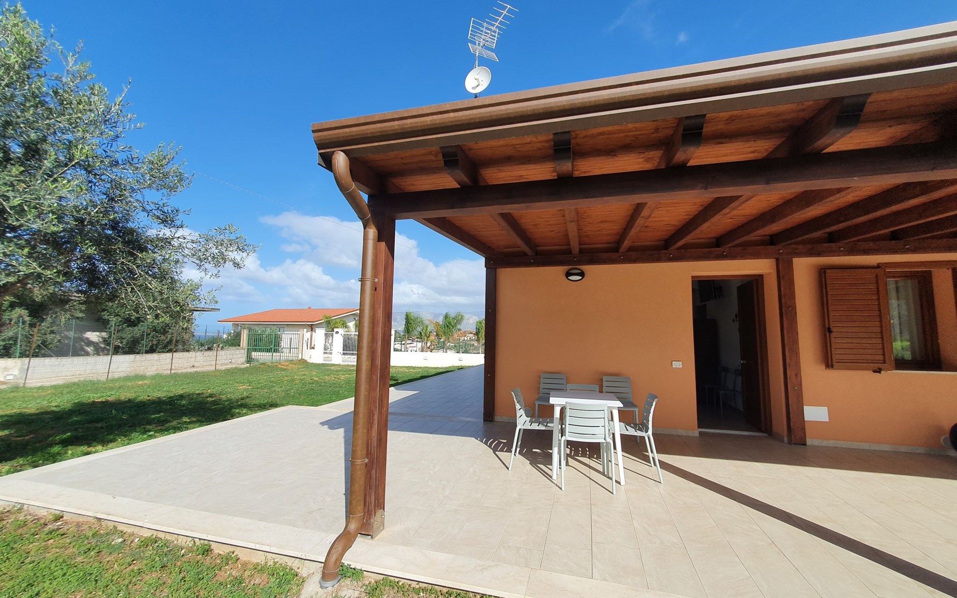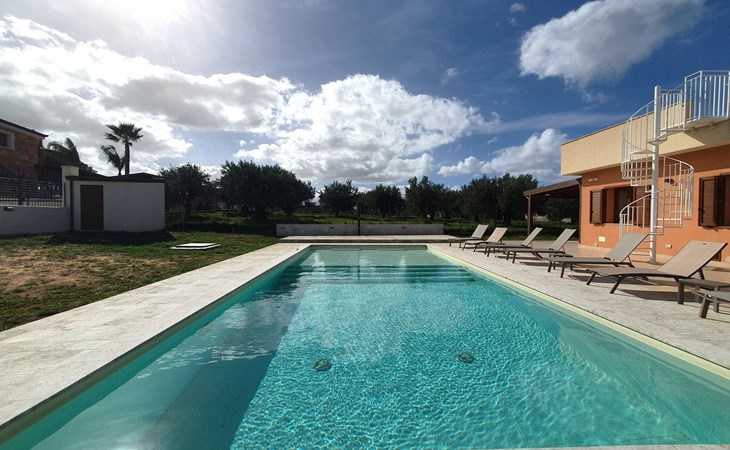 2-family house, built in 2024. 2 apartments in the property. In the resort 1.5 km from the centre of Balestrate, 50 km from the centre of Palermo, in a quiet, sunny position, 1.5 km from the sea, 1.5 km from the beach. For shared use: property 1'000 m2 (fenced), natural garden, swimming pool (5 x 11 m, depth 50 - 140 cm, seasonal availability: 01.Jan. - 31.Dec.). Outdoor shower, pool maintenance by the owner/gardener. 400 m long steep motor access to the house. Parking at the house. Grocery 1.5 km, supermarket 1.5 km, restaurant 1 km, bar 1 km, bus stop 1 km, sandy beach "Balestrate" 1.5 km. Sports harbour 1.5 km. Nearby attractions: Borgo Parrini 19 km, Parco Archeologico di Segesta 27 km, Trapani porto Escursioni Isole Egadi 60 km, San Vito lo Capo 60 km, Erice 64 km, Marsala Saline dello Stagnone 67 km. Well-known lakes can easily be reached: Lago Piana degli Albanesi Riserva WWF 45 km. Hiking paths: Riserva Naturale attrezzata "La Foce" 5 km, Riserva Naturale dello Zingaro -Sud 28 km. Please note: car recommended. Residence with electric gates.