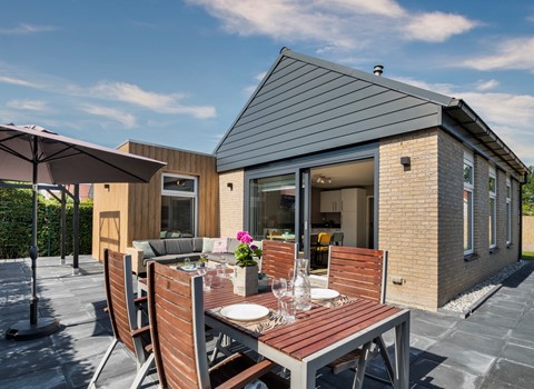 This detached bungalow is situated in a beautiful location in the park and has its own driveway. The cosy living room has an open kitchen and sliding doors to the garden. In the colder months, the fireplace provides extra warmth and cosiness.