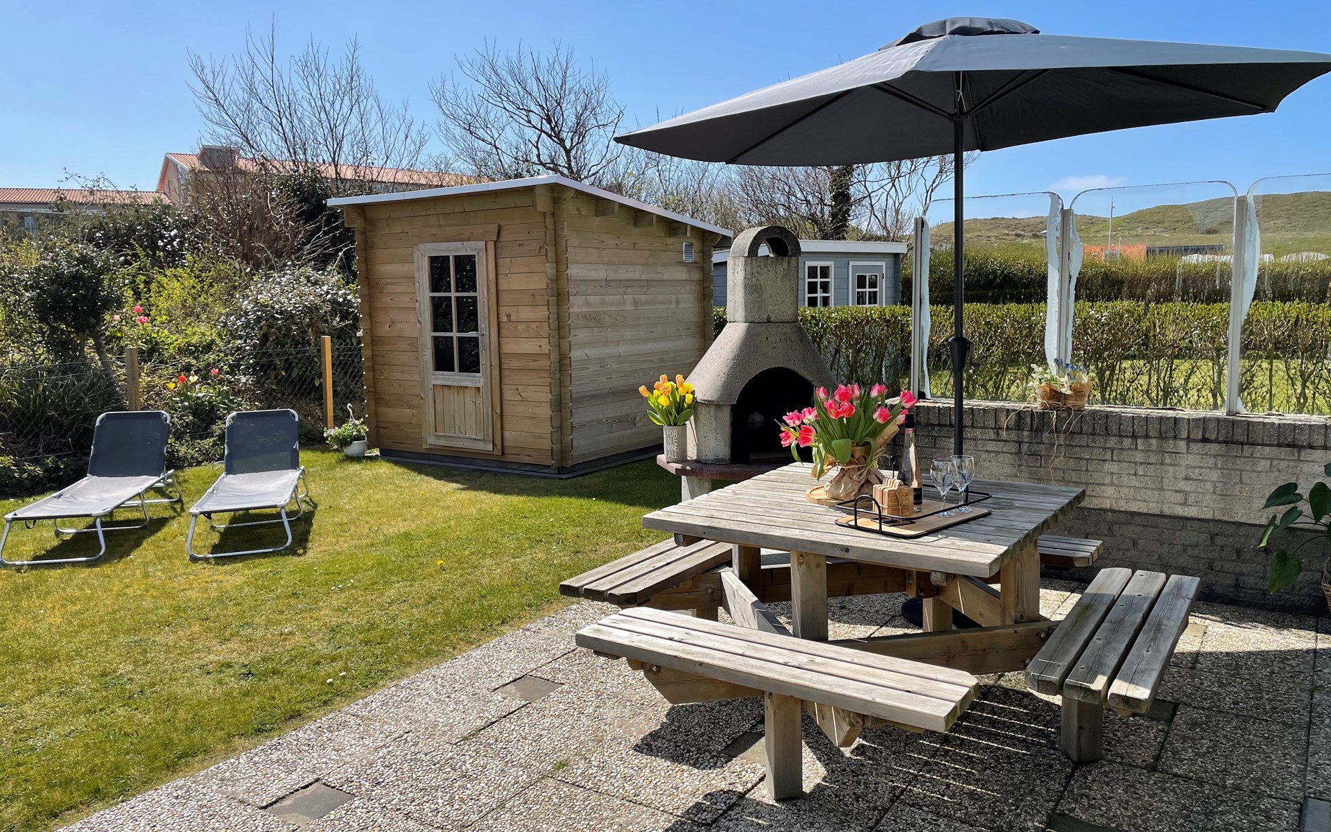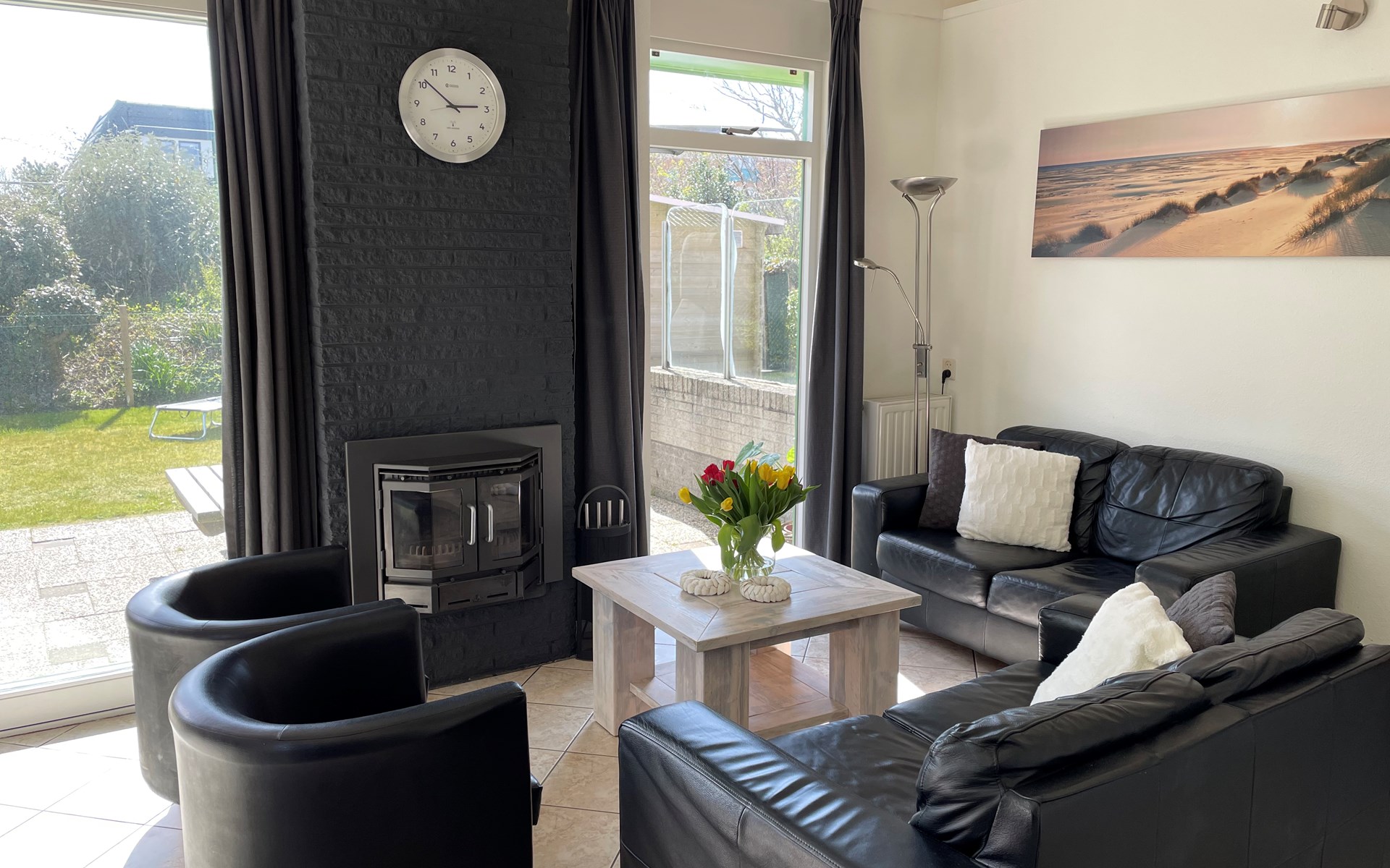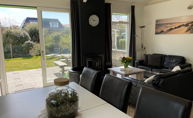 The cosy furnished bungalow has an open kitchen in the living room with sliding doors to the garden. The living room has a fireplace which you can enjoy heating during the colder months. The kitchen is equipped with a fridge, dishwasher, Senseo and filter coffee maker, combination microwave and gas hob. There are 3 bedrooms, 1 of which has a double bed with 1 large mattress and 2 bedrooms with 2 single beds. The bathroom has a shower and a washbasin. There is a separate toilet. The house also has internet access and you may use free WI-FI in the house. The spacious sunny cosy garden has a terrace with garden furniture and is fully fenced. There are a large BBQ which you are allowed to use. Pets are also allowed so you can come and spend a lovely holiday here with the whole family and your four-legged friend.