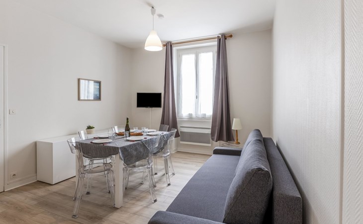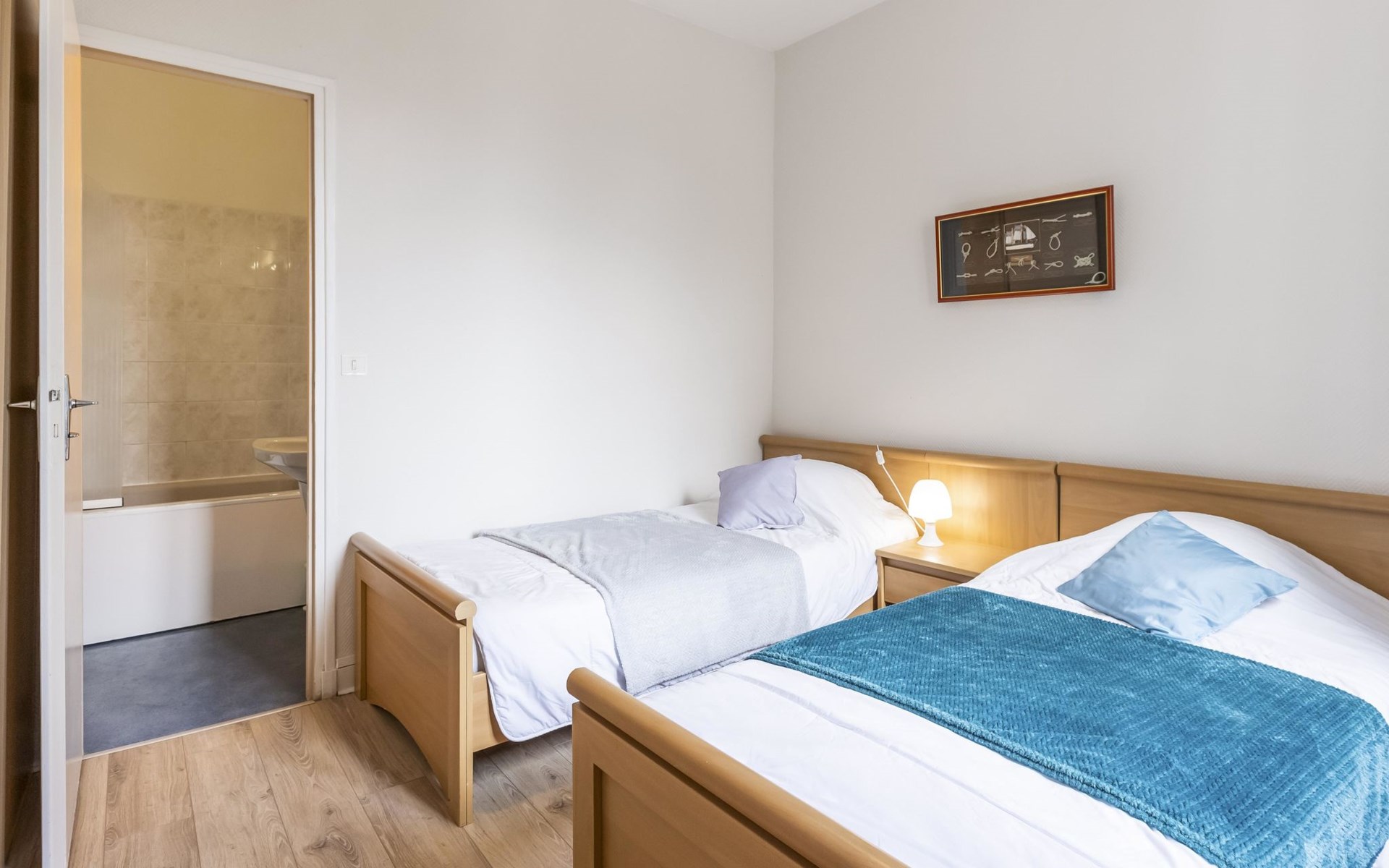 La Richardais, the small locality on the Rance river 1km south of Dinard. The residence " Le Petit Robinson" is a house divided into 8 apartments. It is located on the border of Dinard, along the coastal road that leads to Dinard. Residence "Le Petit Robinson", renovated. 8 apartments in the residence. In the resort 3 km from the centre of Dinard, 600 m from the sea, 1.4 km from the beach, on a main road. For shared use: property 850 m2 with lawn, parking. Shop 1.5 km, grocery, restaurant 50 m, bus stop "La Bodinais" 210 m, railway station "SCNF Saint-Malo" 9 km, ferry "gare maritime du Naye" 8.2 km, sandy beach "Le Prieuré" 1.4 km, indoor swimming pool 4 km. Sports harbour 2.5 km, sailing school 1.4 km, indoor tennis centre 2 km, minigolf 1 km, riding stable 2.3 km, sports centre 2.5 km, walking paths from the house 900 m. Nearby attractions: Saint-Malo 10 km, Le Grand Aquarium de Saint-Malo 6 km, Cancale 20 km, Dinan 23 km, Cap Fréhel et Fort la Latte 37 km, Le Mont Saint-Michel 60 km. Please note: no lift. The keys‘ handover takes place by the agency Interhome in Dinard, 3 km. Main road. Additional accommodations can be booked. Neighbourhood highly sensitive to noise. Quietness and good behaviour expected. Prieuré beach at 1400m, possibility of swimming only at high tide. Coastal paths within walking distance 500 meters. Busy and noisy road.