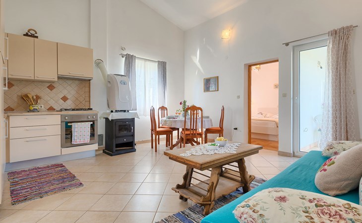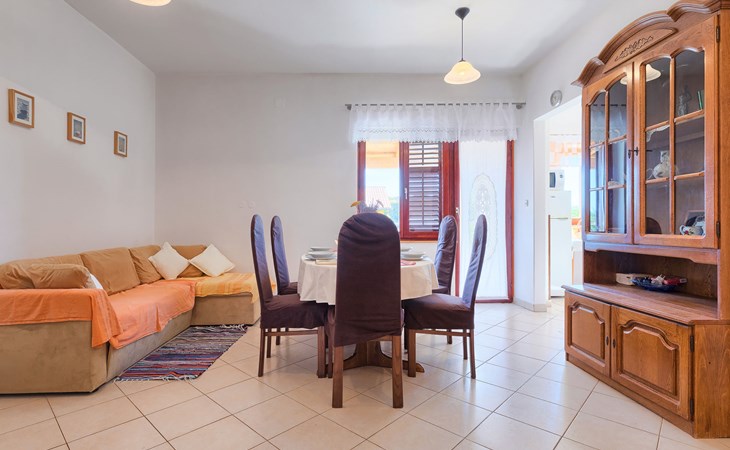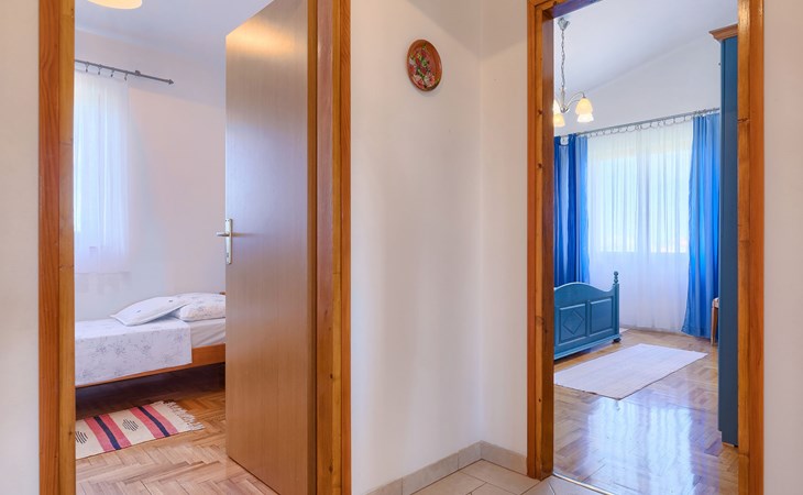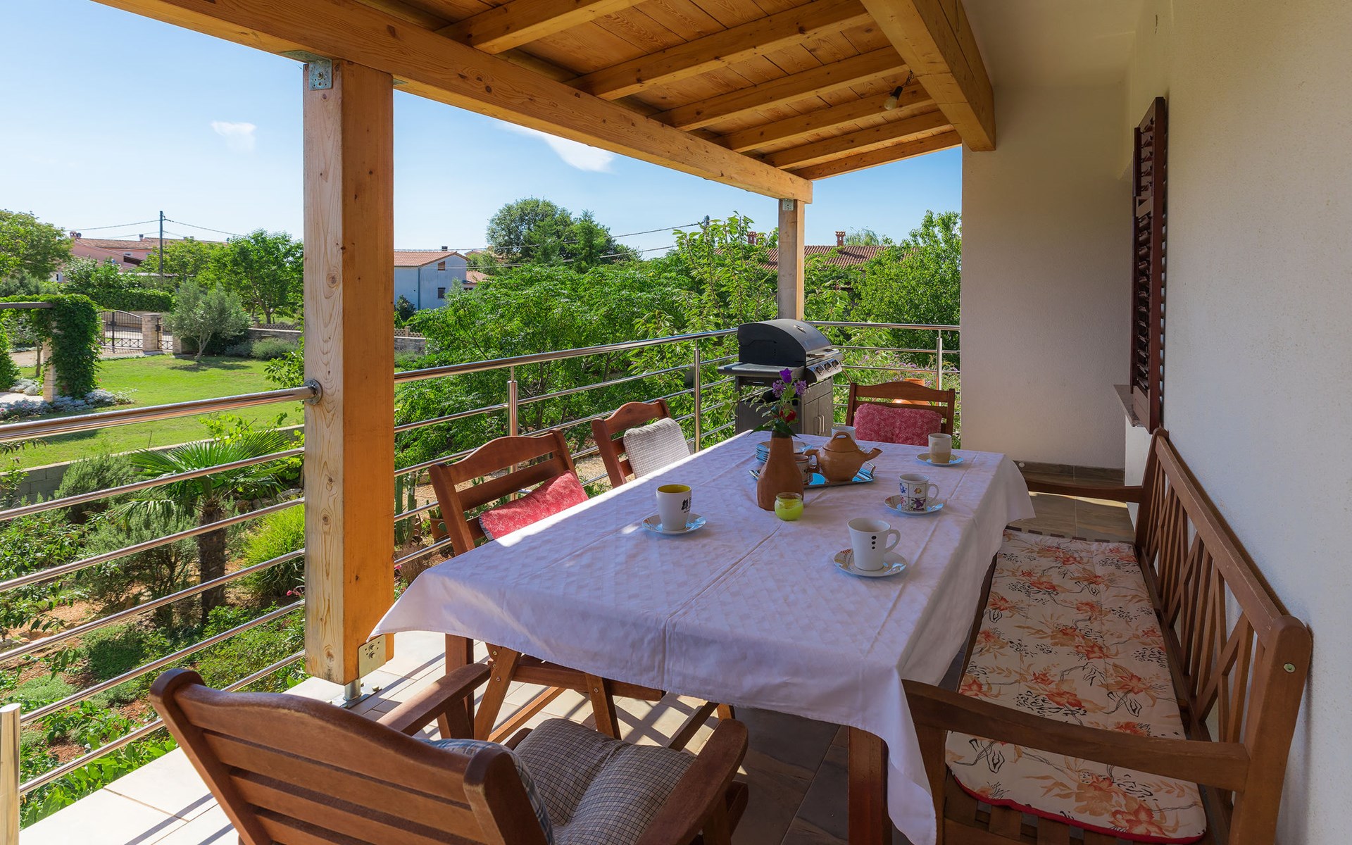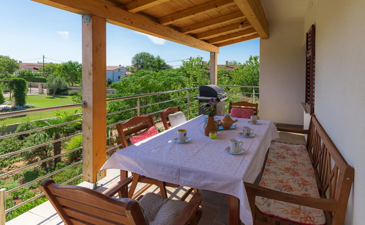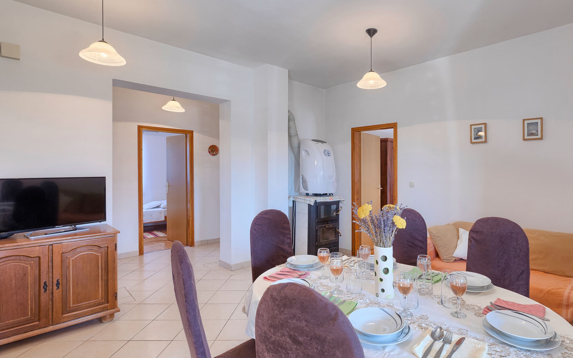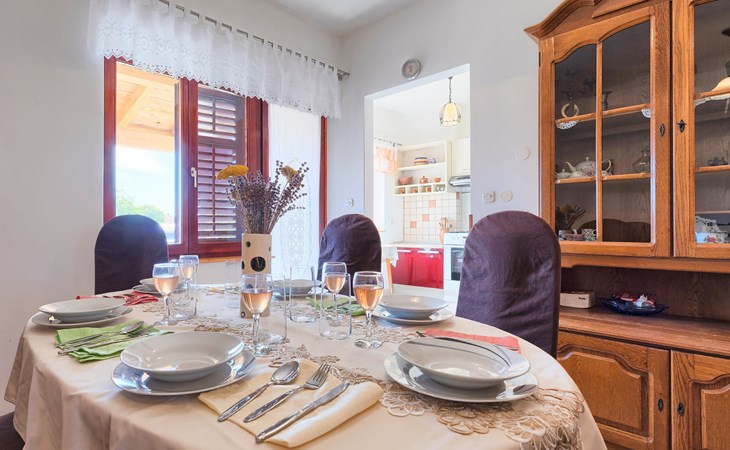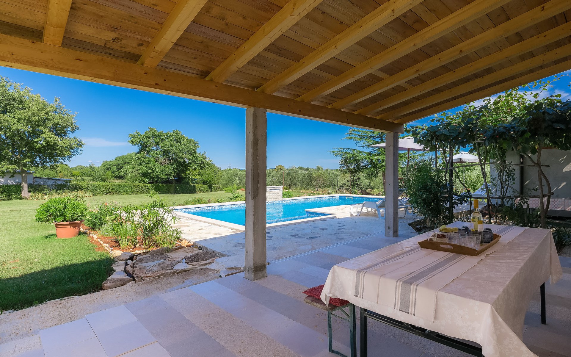 Single-family house "Ana Lucija". 500 m from the centre of Muntić, 10 km from the centre of Marčana, 10 km from the centre of Pula, 12 km from the sea, 12 km from the beach. Private: property 1'000 m2, wildlife garden, meadow, swimming pool (9 x 4 m, depth 135 cm, seasonal availability: 01.May. - 07.Oct.) with internal staircase. Paddling pool, table tennis, patio, barbecue. In the house: internet access, washing machine. Parking (for 3 cars) on the premises. Shop 500 m, supermarket 7 km, restaurant 6 km, bus stop 240 m, pebble beach 15 km, rocky beach 12 km. Marina 12 km. Please note: airfield 4 km from the property. Ground floor is closed and not occupied. The house consists of 2 apartments, rented as one unit.