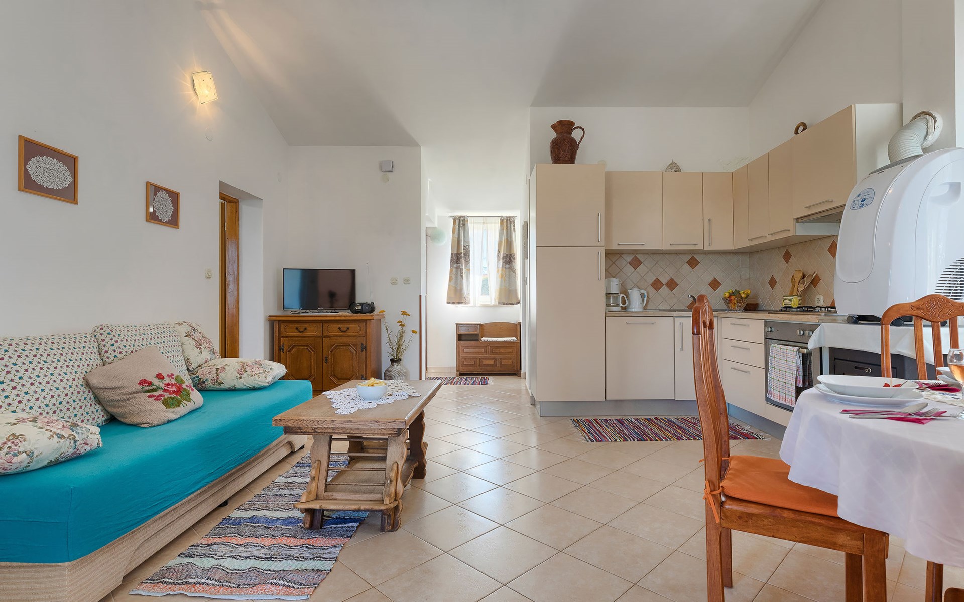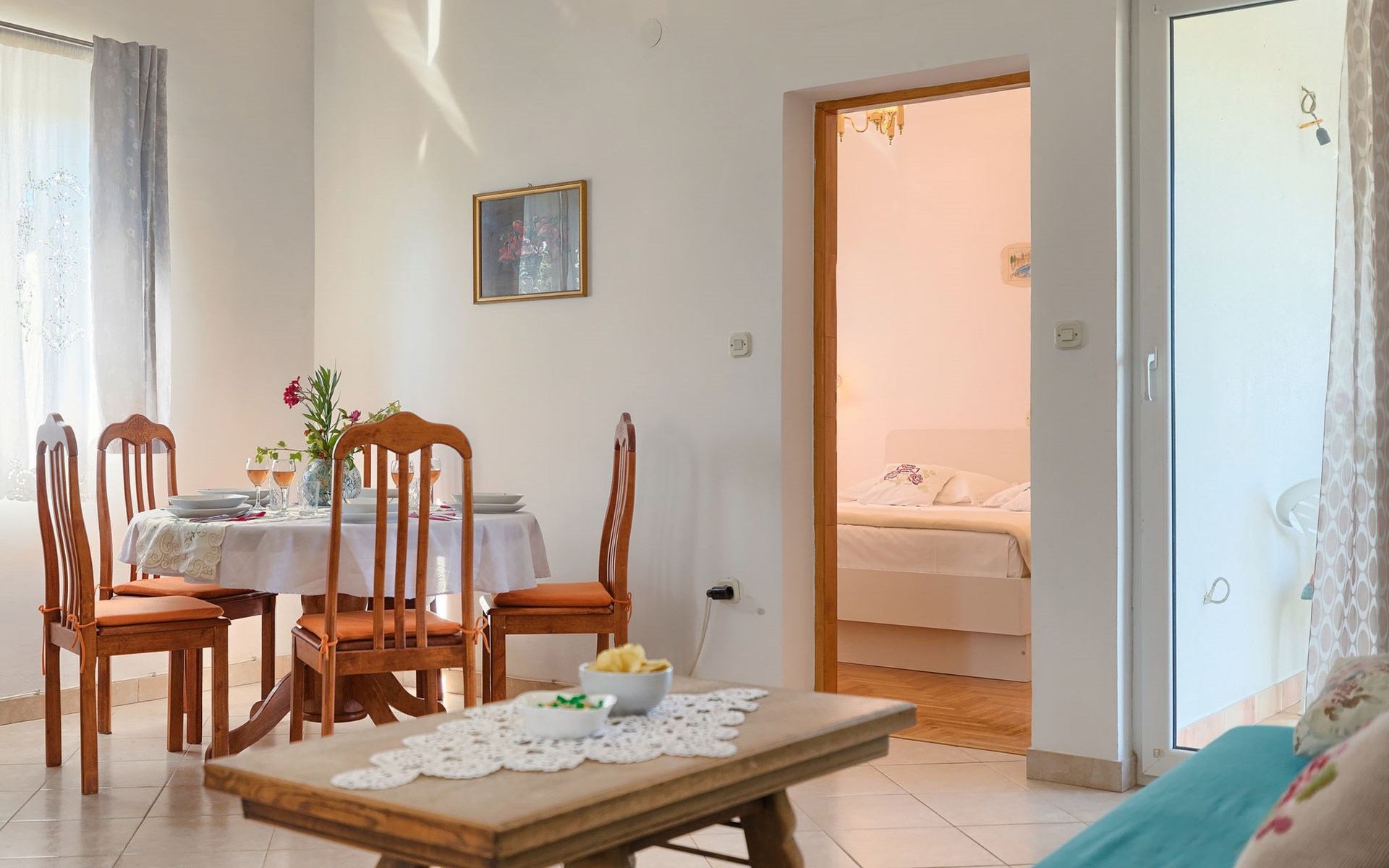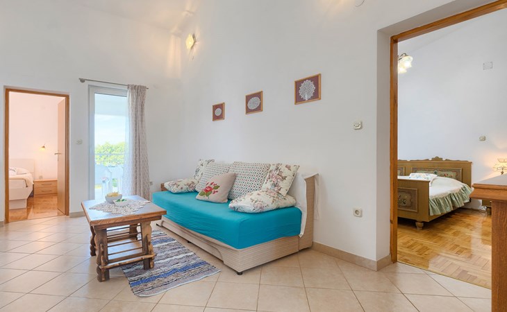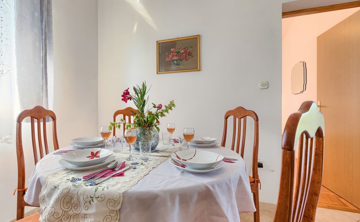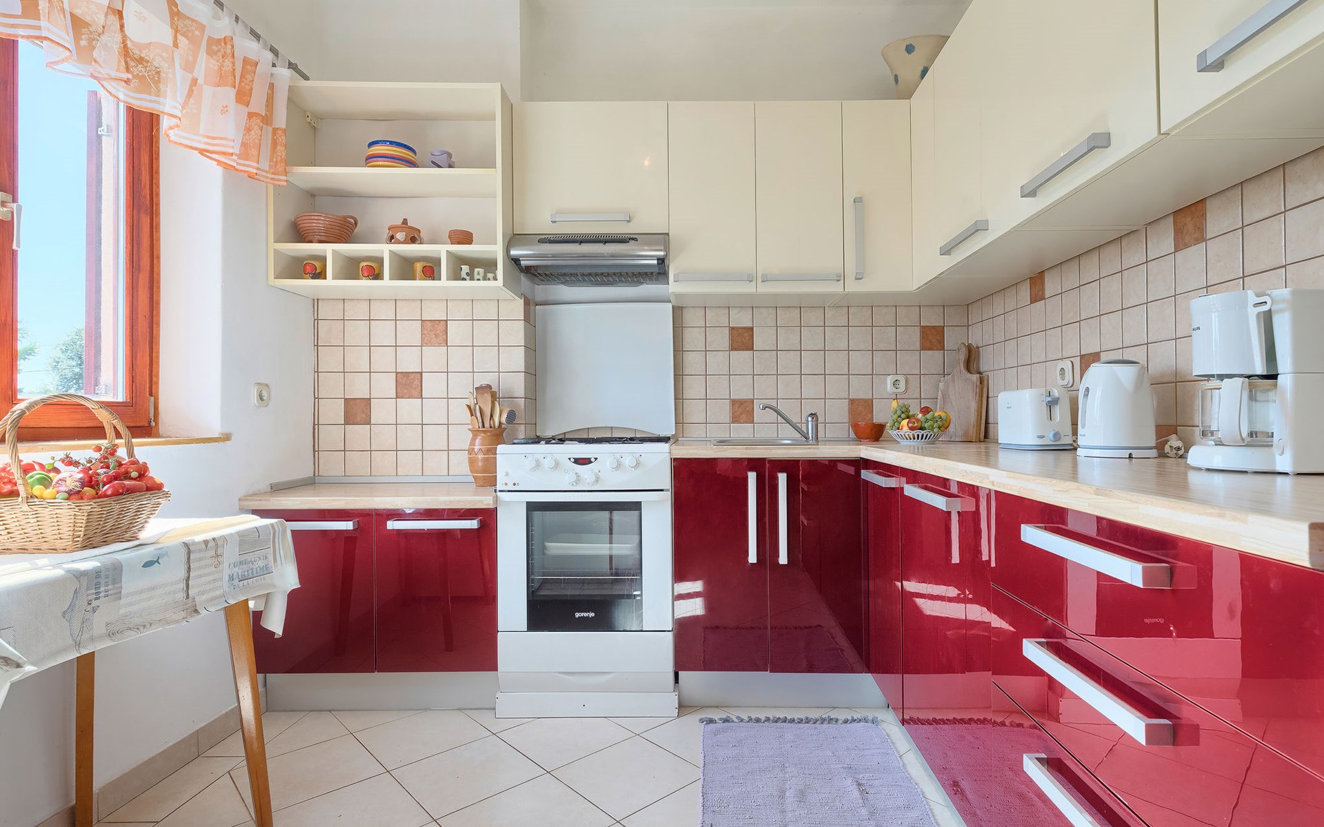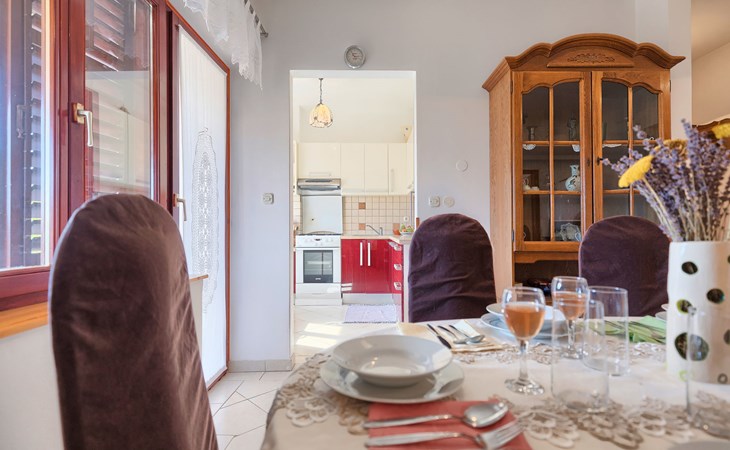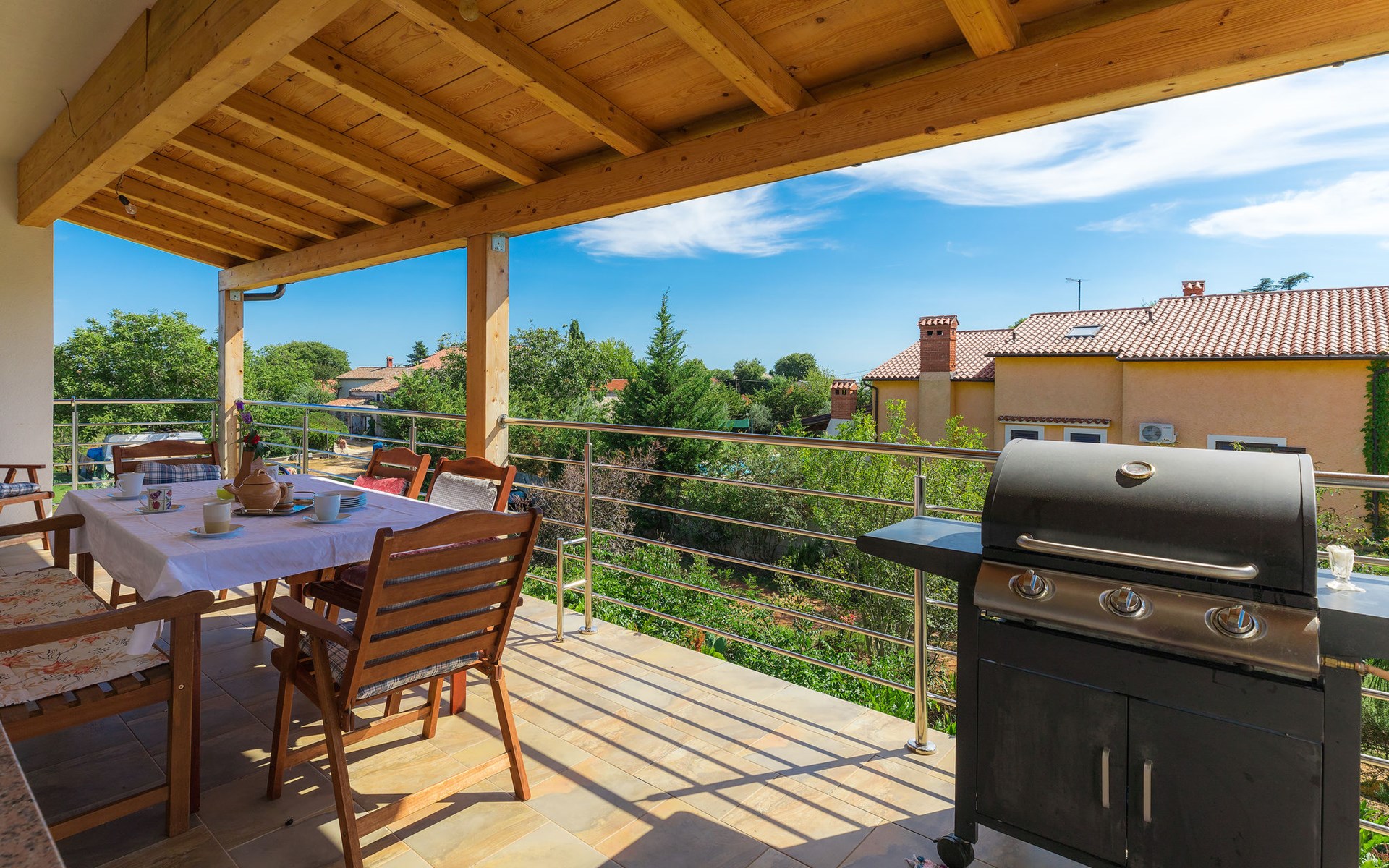Single-family house "Ana Lucija". 500 m from the centre of Muntić, 10 km from the centre of Marčana, 10 km from the centre of Pula, 12 km from the sea, 12 km from the beach. Private: property 1'000 m2, wildlife garden, meadow, swimming pool (9 x 4 m, depth 135 cm, seasonal availability: 01.May. - 07.Oct.) with internal staircase. Paddling pool, table tennis, patio, barbecue. In the house: internet access, washing machine. Parking (for 3 cars) on the premises. Shop 500 m, supermarket 7 km, restaurant 6 km, bus stop 240 m, pebble beach 15 km, rocky beach 12 km. Marina 12 km. Please note: airfield 4 km from the property. Ground floor is closed and not occupied. The house consists of 2 apartments, rented as one unit.