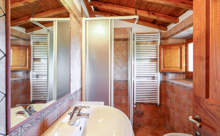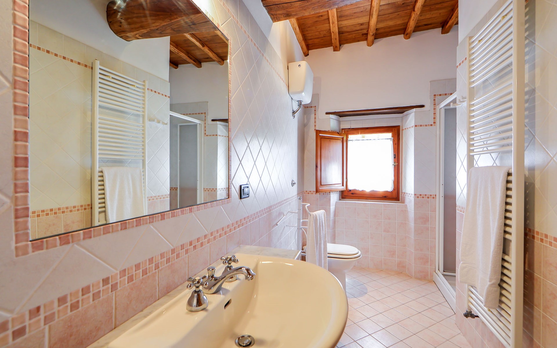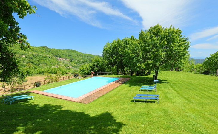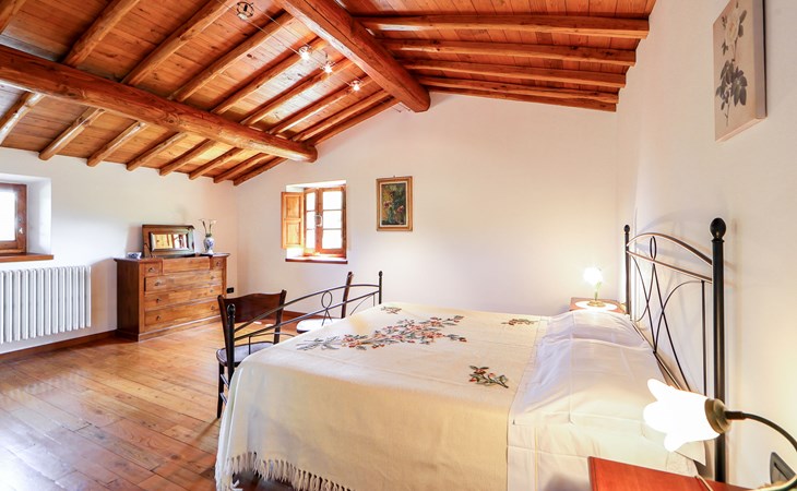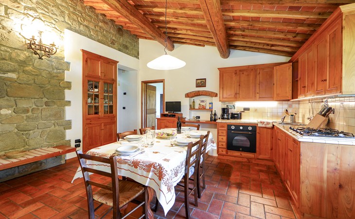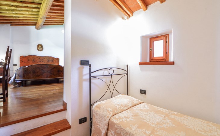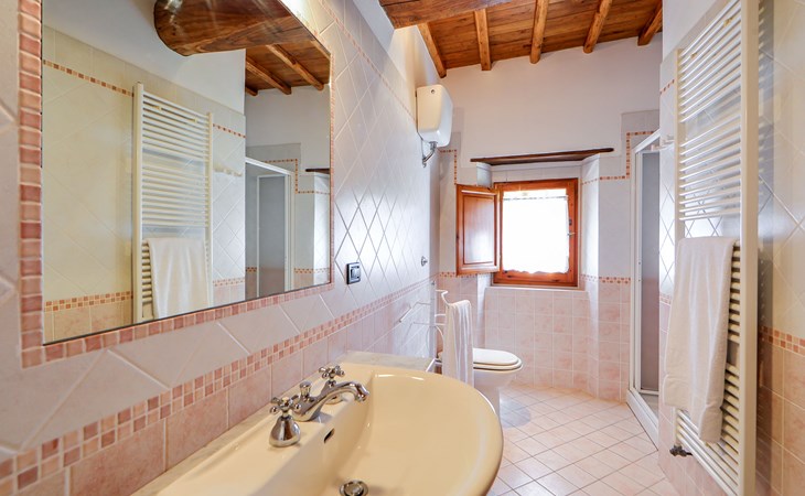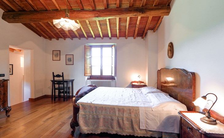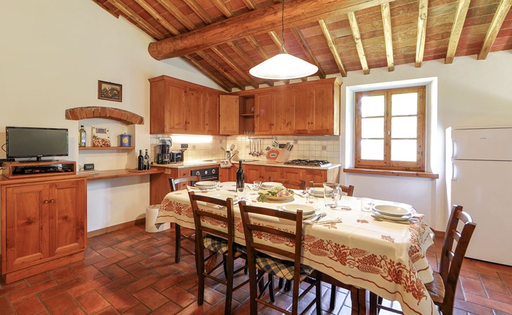 Torsoli 4 km from Lucolena: The Poggio is a beautiful independent farmhouse divided into 3 residential units, Torsoli (IT5269.840.1)) and Lucolena (IT5269.840.2) are two independent portions placed on the ground floor and below, where there is an apartment that the owner occasionally uses. Beautiful, rustic 3-family house "Il Poggio", surrounded by trees, meadows and fields. 15 km from the centre of Greve in Chianti, 16 km from the centre of Radda in Chianti, 35 km from the centre of Firenze, in a secluded, quiet, sunny position on top of a hill, in the countryside. For shared use: property 1 ha (fenced), large, well-kept garden with plants and trees, swimming pool (12 x 6 m, depth 120 - 160 cm, seasonal availability: 10.May. - 04.Oct.). Outdoor shower, garden furniture, barbecue. Private: garden. Garden furniture. Heating to be paid on the spot, heating available only from 01.Nov. - 15.Apr.. Motor access (50 m via unmade road). Parking. Grocery 4 km, supermarket 14 km, restaurant 2 km, bar 4 km, bus stop 3.5 km. Please note: car recommended. Suitable for families, suitable for seniors.