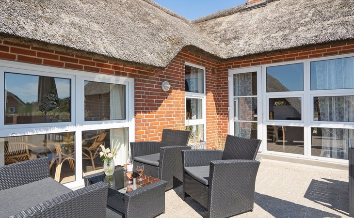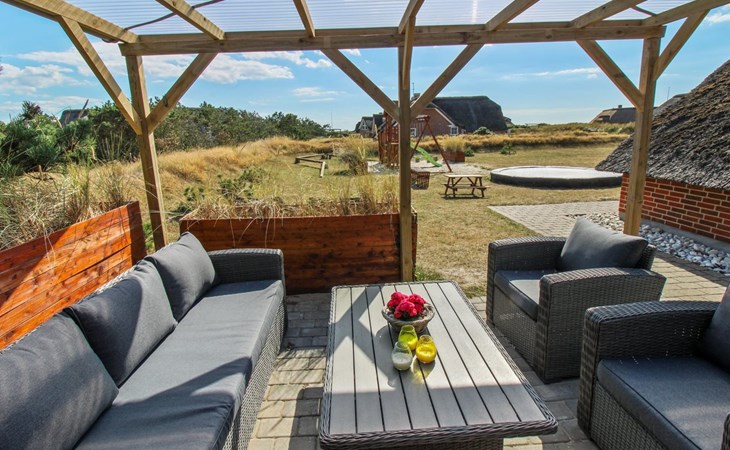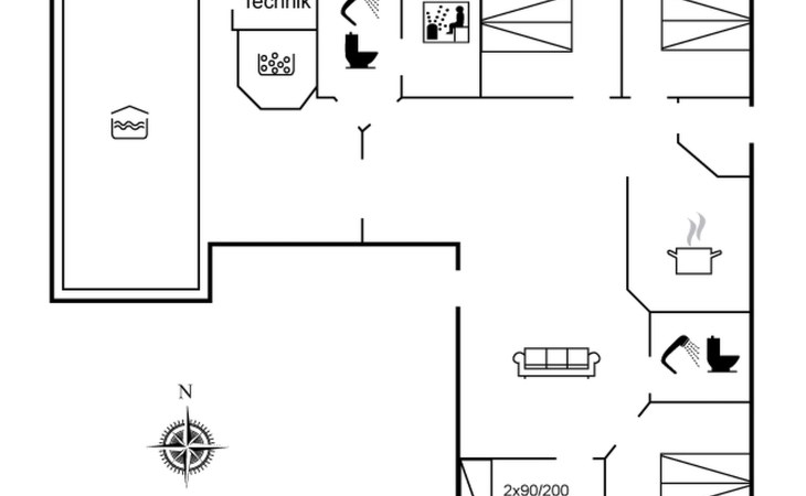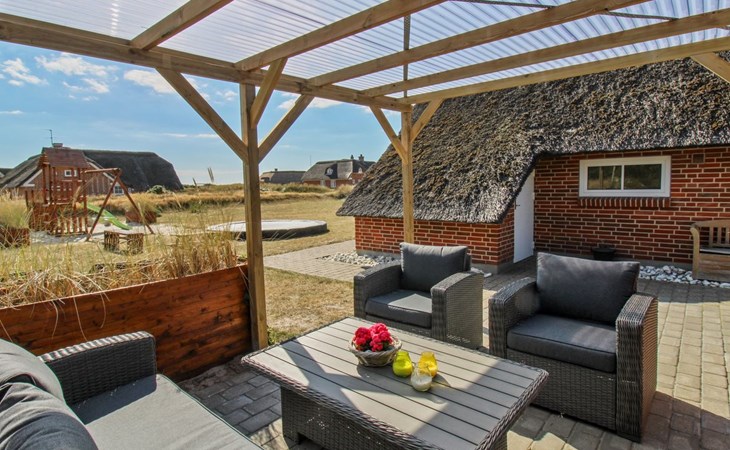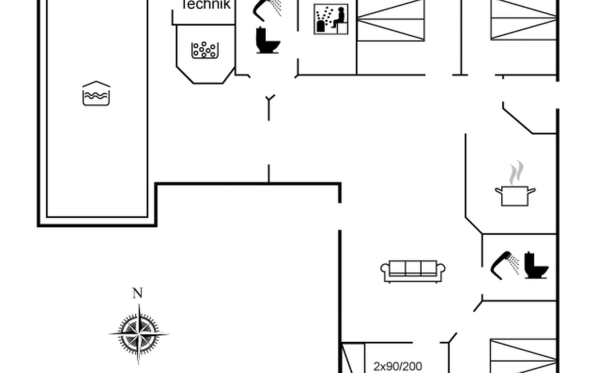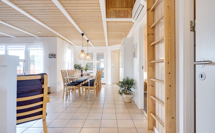 Single-family house, built in 1998. 100 m from the sea. Private: property 1'524 m2, indoor pool (3 x 7 m, 2'4.5 m2, depth 120 - 120 cm). Outdoor shower, terrace (50 m2), barbecue, children's playground (slide, swing). In the house: sauna, trampoline, washing machine, tumble dryer. Parking at the house. E-charging station. Grocery 900 m. The owner does not accept any youth groups.