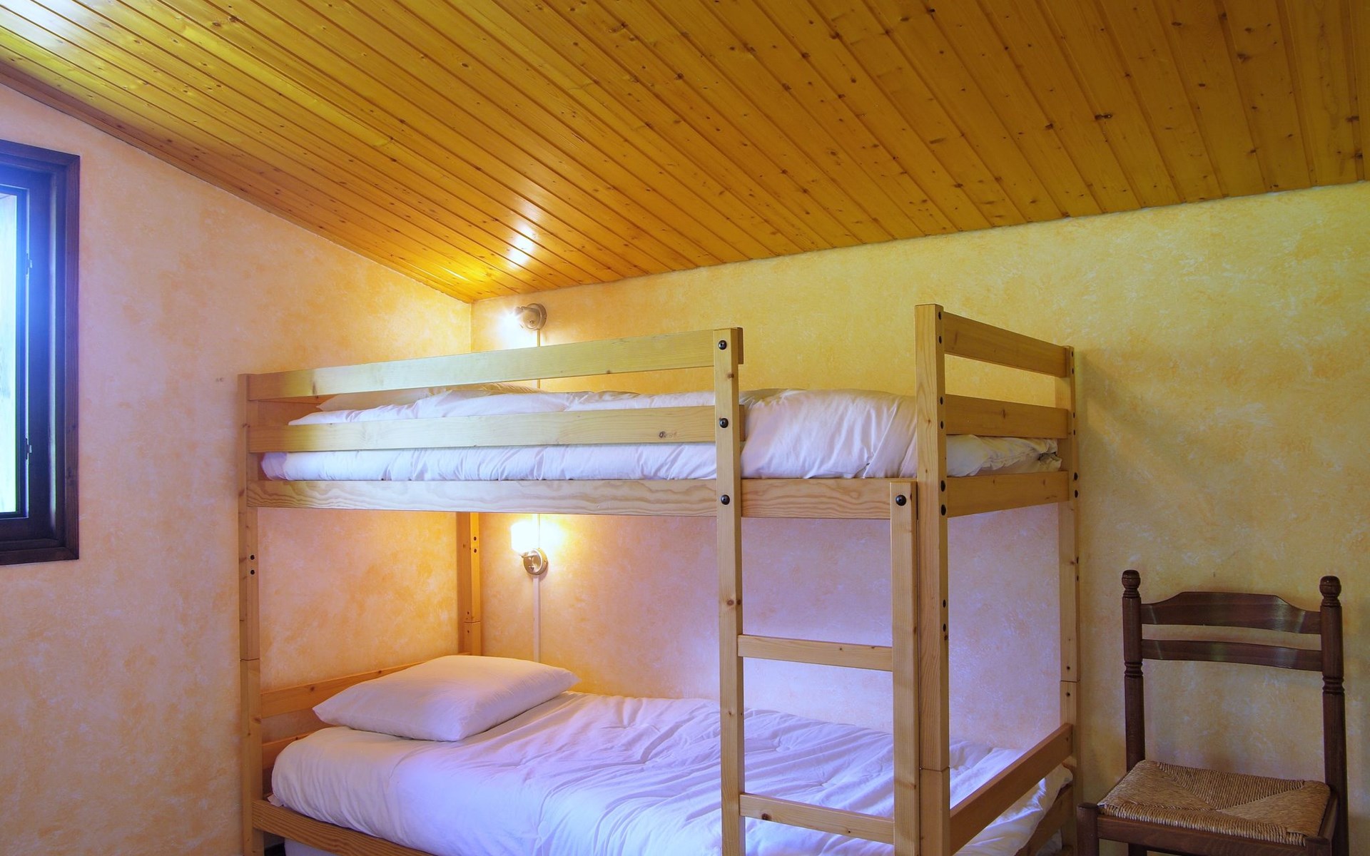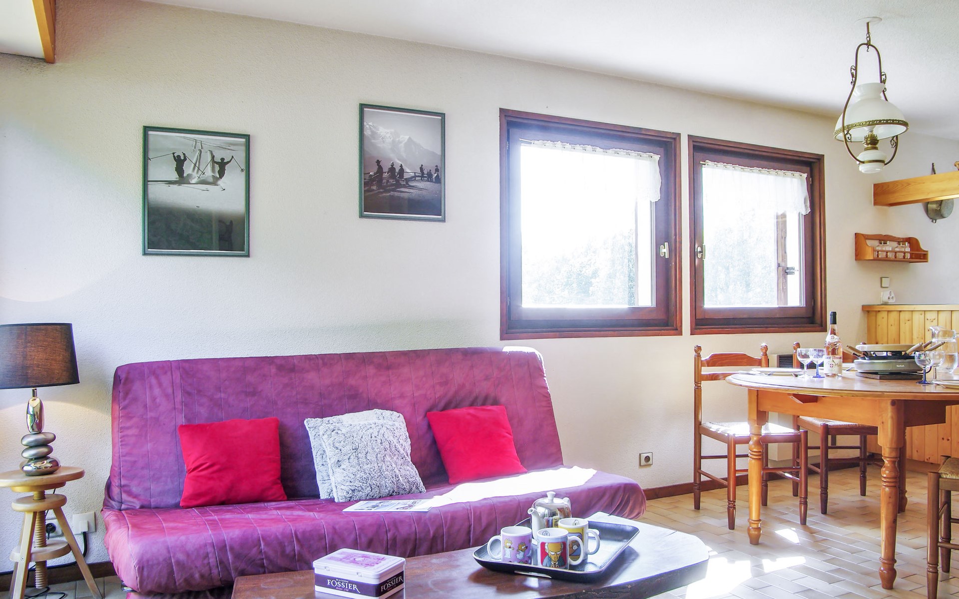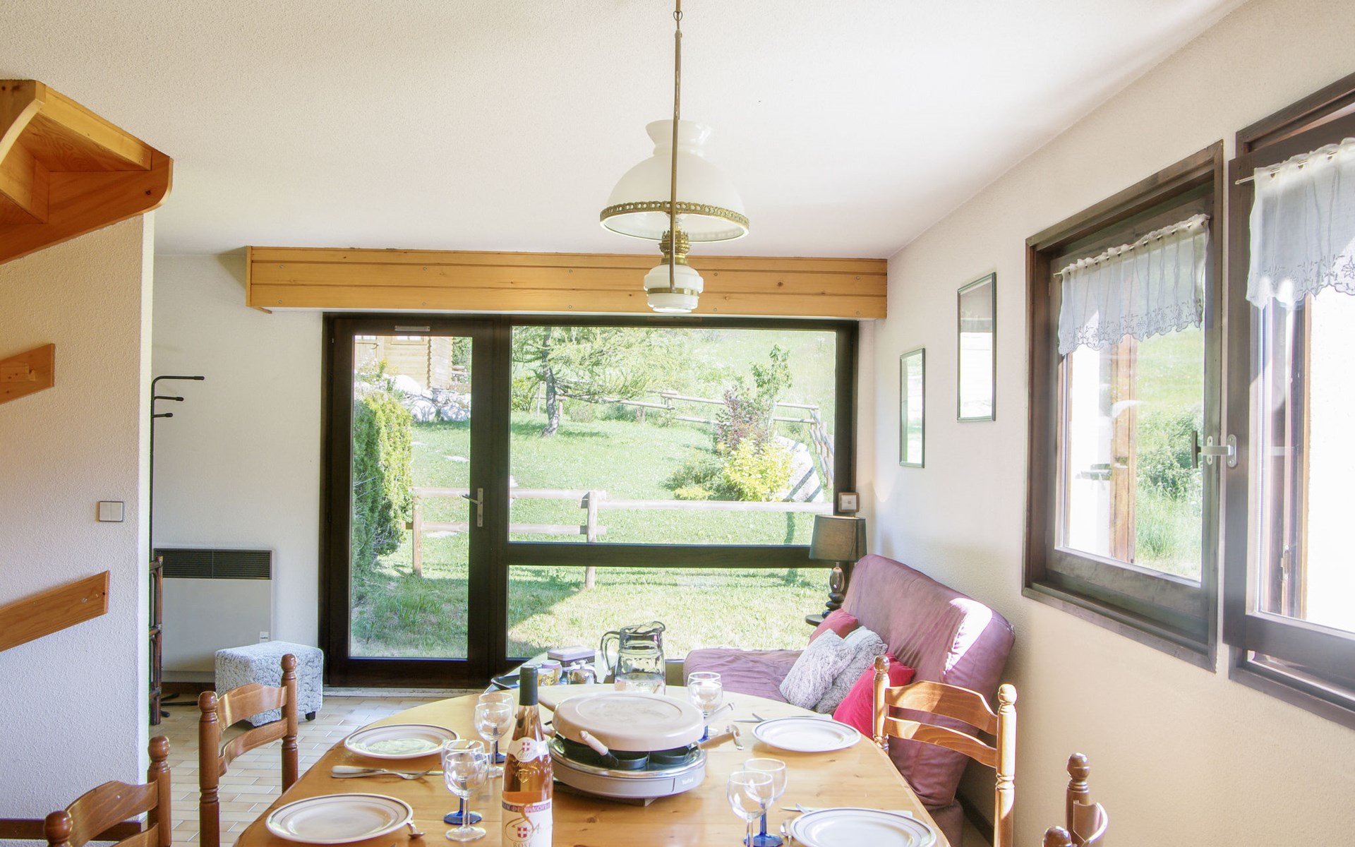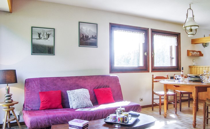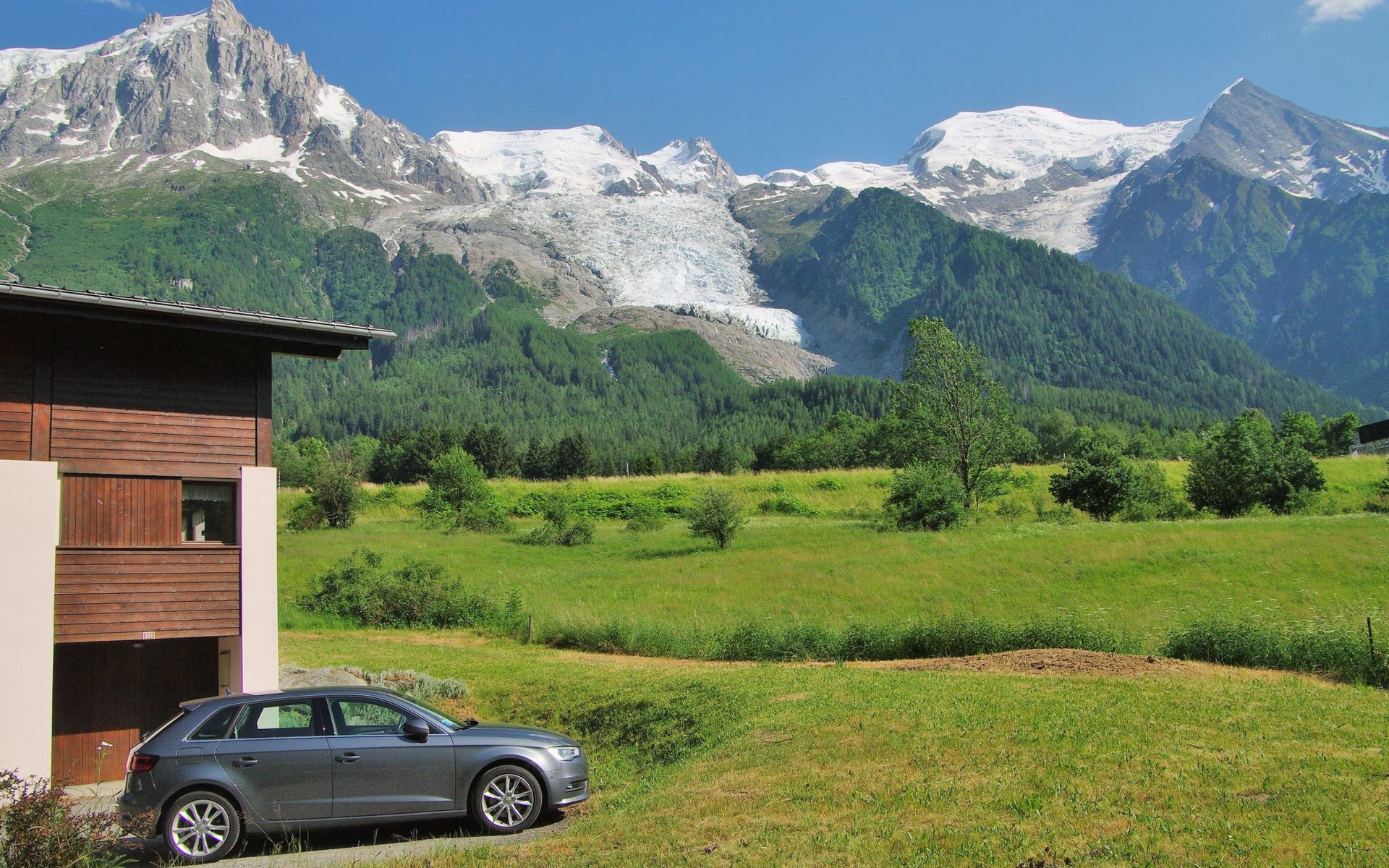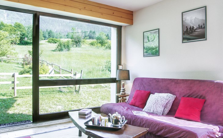 Semi-detached house "Les Pelarnys", 3 storeys, terraced, surrounded by meadows. In the district of Pélerins, 2.8 km from the centre. Parking. Shopping centre, restaurant 3 km, bus stop 600 m, railway station "Chamonix" 3 km. Golf course (18 hole) 6 km, sports centre 3 km, skisport facilities 2.7 km, ski school 3.1 km, cross country ski track 3 km. Please note: car recommended. Main road 300 m from the property.
