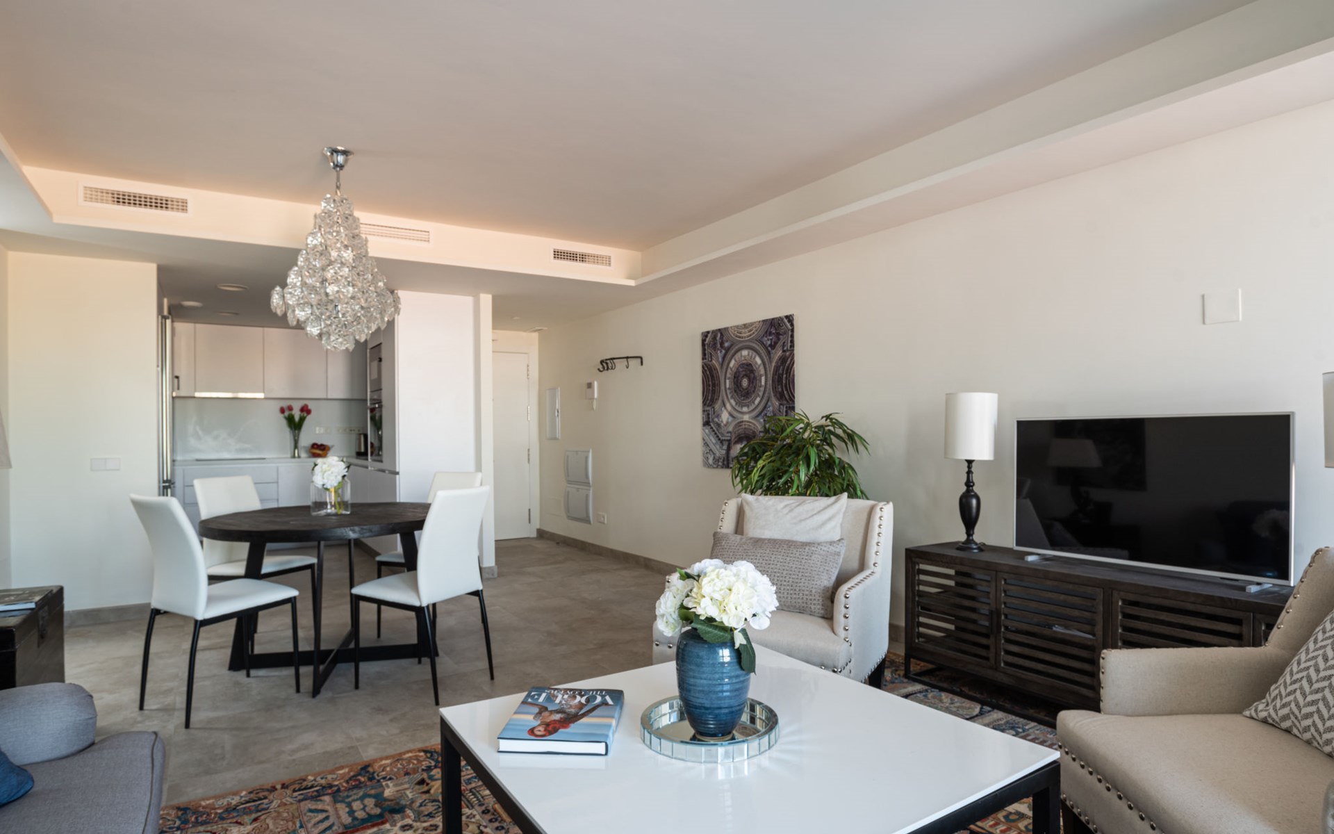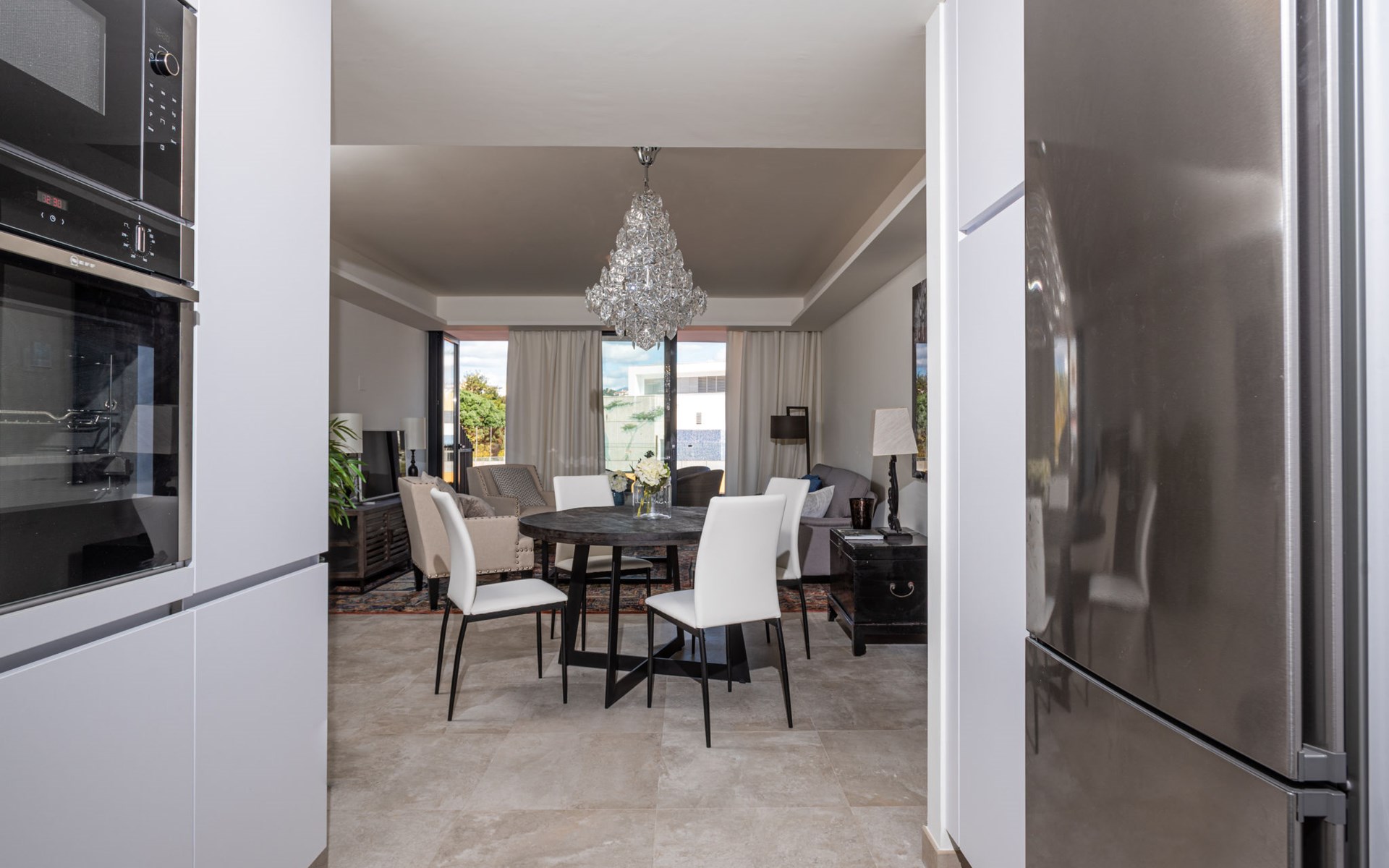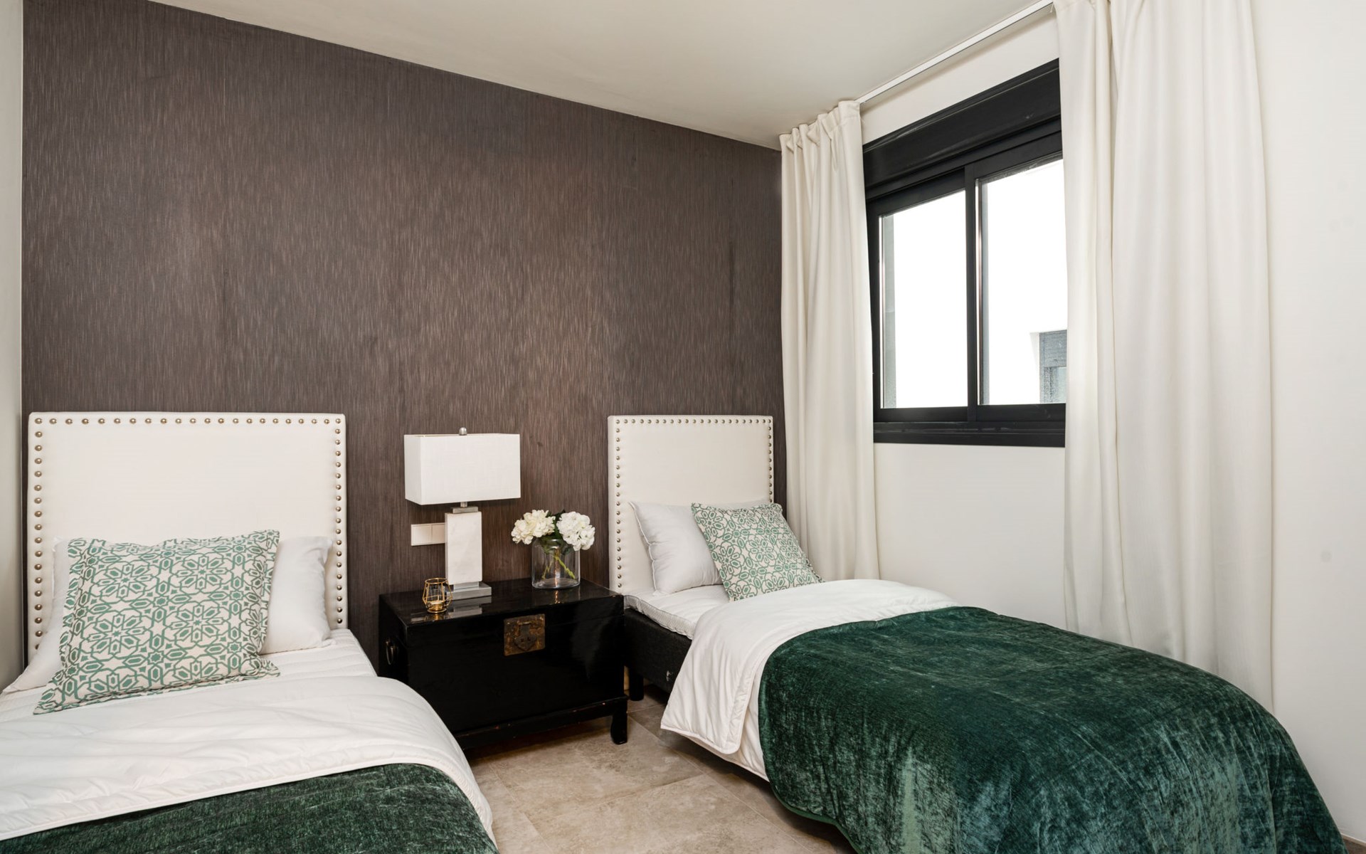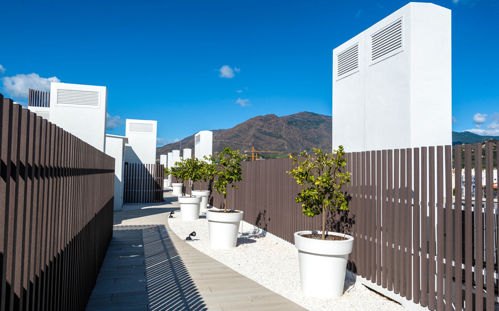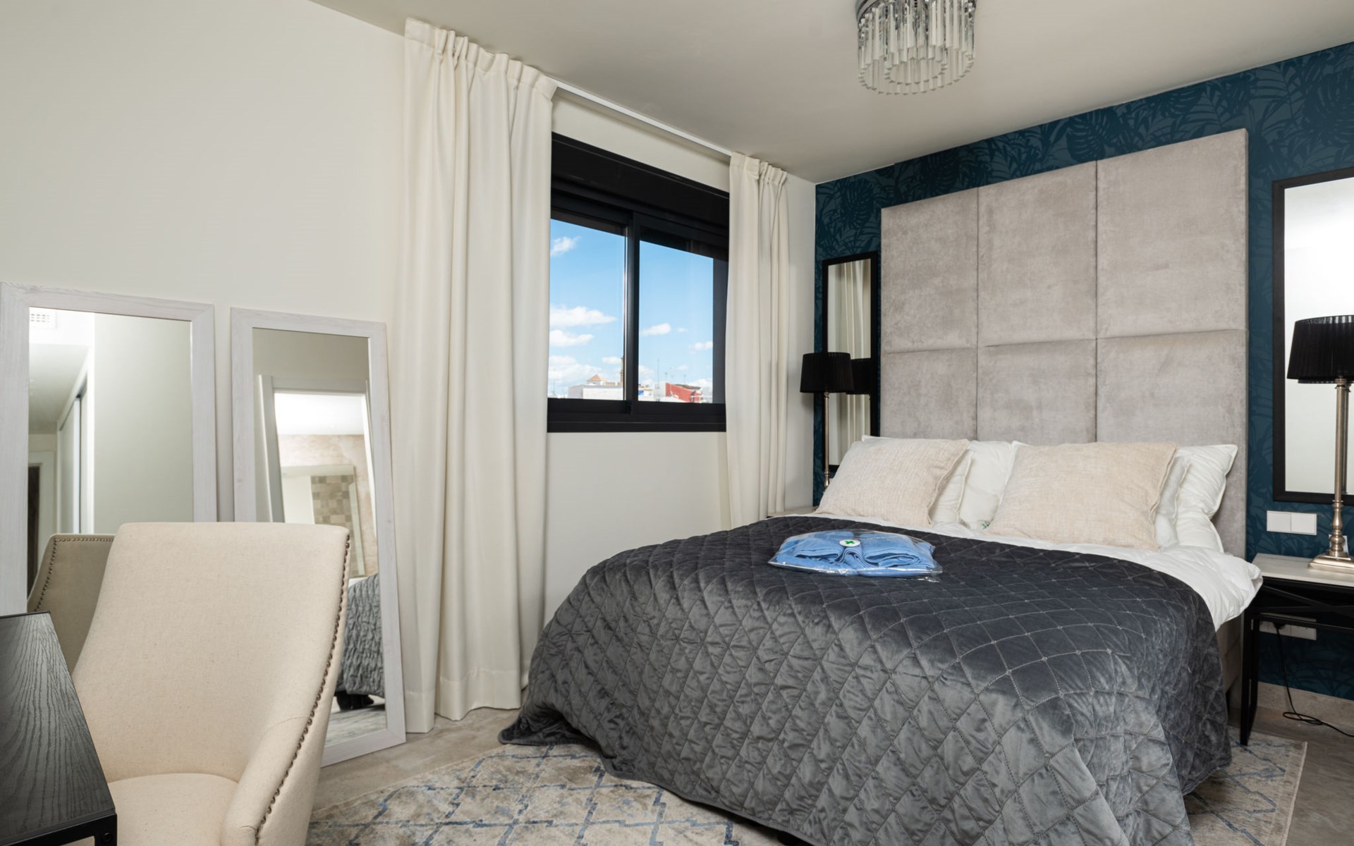 Modern, comfortable apartment block "Estepona Roof Top View", built in 2020. In a central, busy, sunny position, in the heart of the city, from the sea, 300 m from the beach. For shared use: swimming pool (seasonal availability: 01.Jan. - 31.Dec. pool opening hours: 10:00-22:00). Unconventional pool shape. WC in the pool area. In the complex: lounge, sauna, fitness room, in summer, use of sauna is included, in winter, use of sauna is included, lift, storage room for bicycles. Communal covered parking. Parking space or garage only for small to medium-sized cars. Shop, supermarket 20 m, restaurant 50 m, bar, café 40 m, pedestrian zone, pub garden 50 m, bus stop 100 m, sandy beach "Playa de la Rada" 300 m. Sports harbour 1.5 km, golf course (18 hole) 7 km, sports centre 1.5 km. Nearby attractions: Centro historico de Estepona 100 m, Puerto Estepona 1.4 km, Orchidarium Estepona 800 m. The owner does not accept any youth groups. Neighbourhood highly sensitive to noise. Quietness and good behaviour expected.