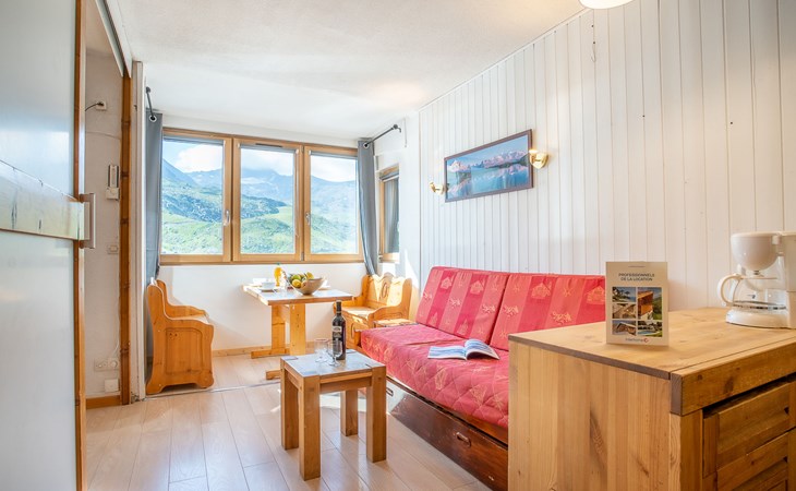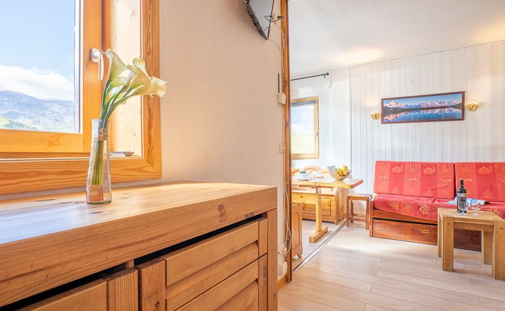 Very beautiful residence "Arcelle", 7 storeys. In the centre of la station, in a busy position, 100 m from the skiing area, in a pedestrian area. In the complex: lift, storage room for skis. In Winter: please take snow chains. Public car park at 50 m, extra. E-charging station. Shop 1 m, grocery, supermarket, shopping centre, restaurant, bar 2 m, bakery 15 m, café 5 m, pedestrian zone 2 m, bus stop 50 m, outdoor swimming pool 20 m. Sports centre 5 m, chair lift 50 m, gondola lift 150 m, skisport facilities 70 m, slopes 100 m, ski rental 2 m, ski bus stop 15 m, ski school 40 m, cross country ski track 1 km, ice rink 150 m. Nearby attractions: Les Menuires 1 km. Well-known ski regions can easily be reached: 3 Vallées. Well-known lakes can easily be reached: Lac du lou 1 km, Lac Menuires 800 m. Please note: baby equipment on request (extra). Groups of teenagers on request only. The owner does not accept any groups. In case of good snow conditions, the house is accessible on skis. The keys‘ handover takes place by the agency Interhome ValThorens. Additional accommodations can be booked. Neighbourhood highly sensitive to noise. Quietness and good behaviour expected.