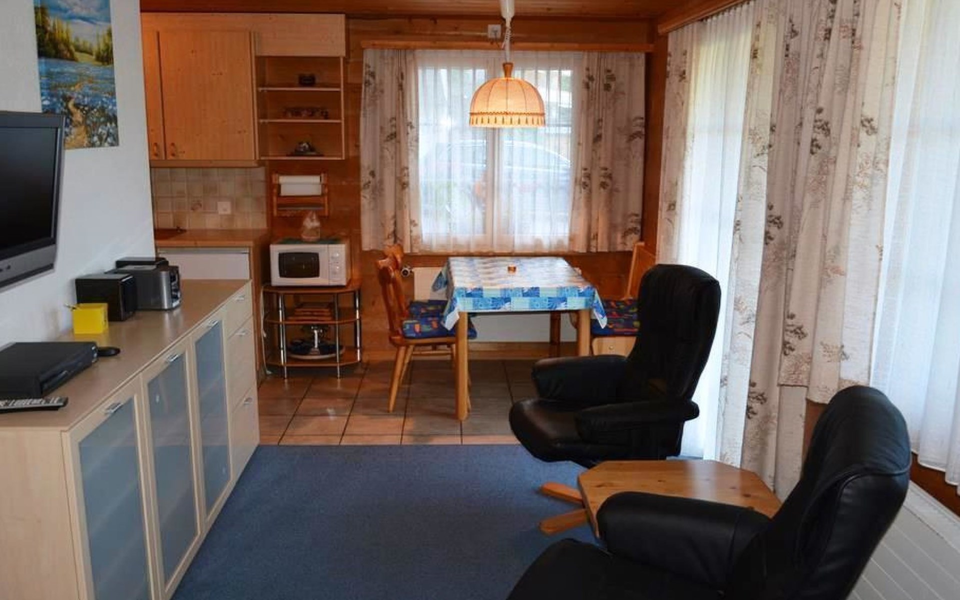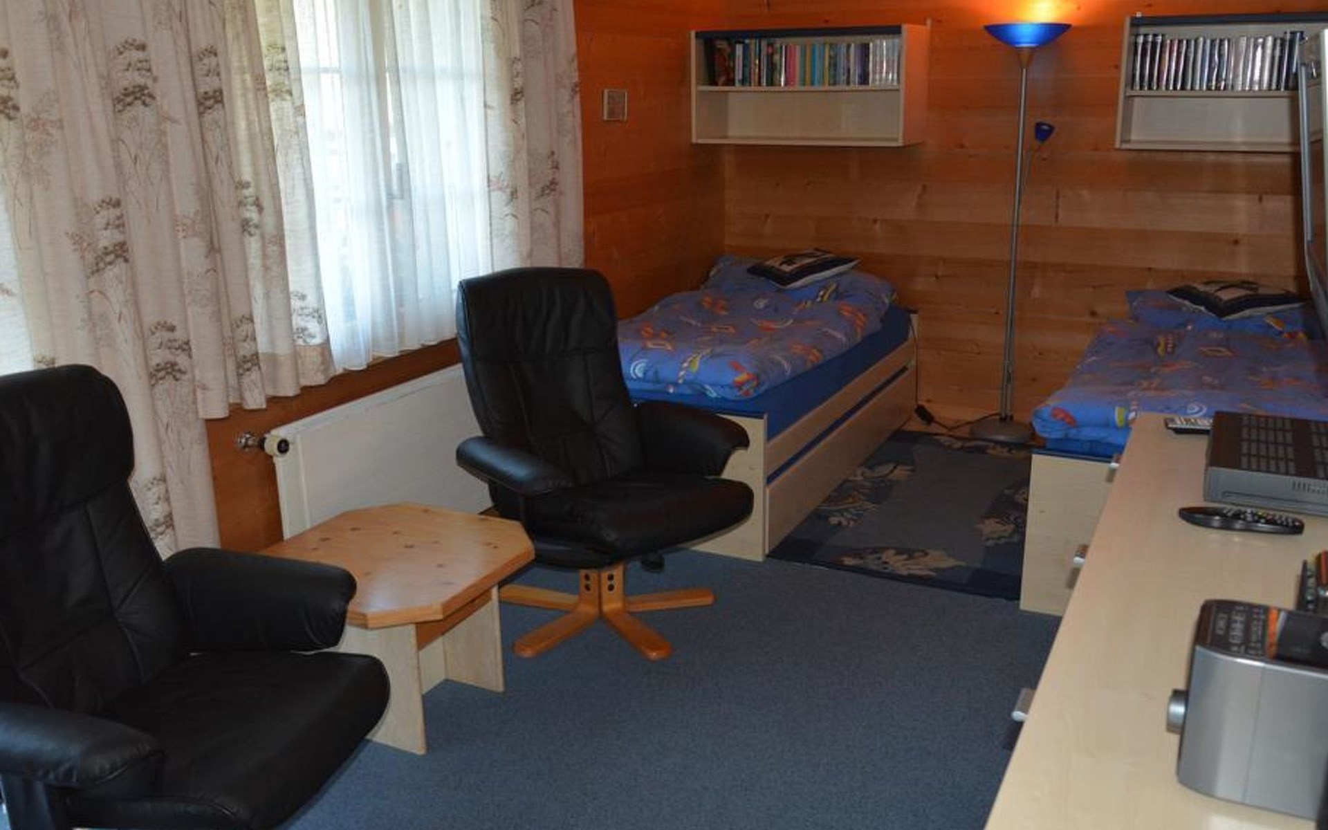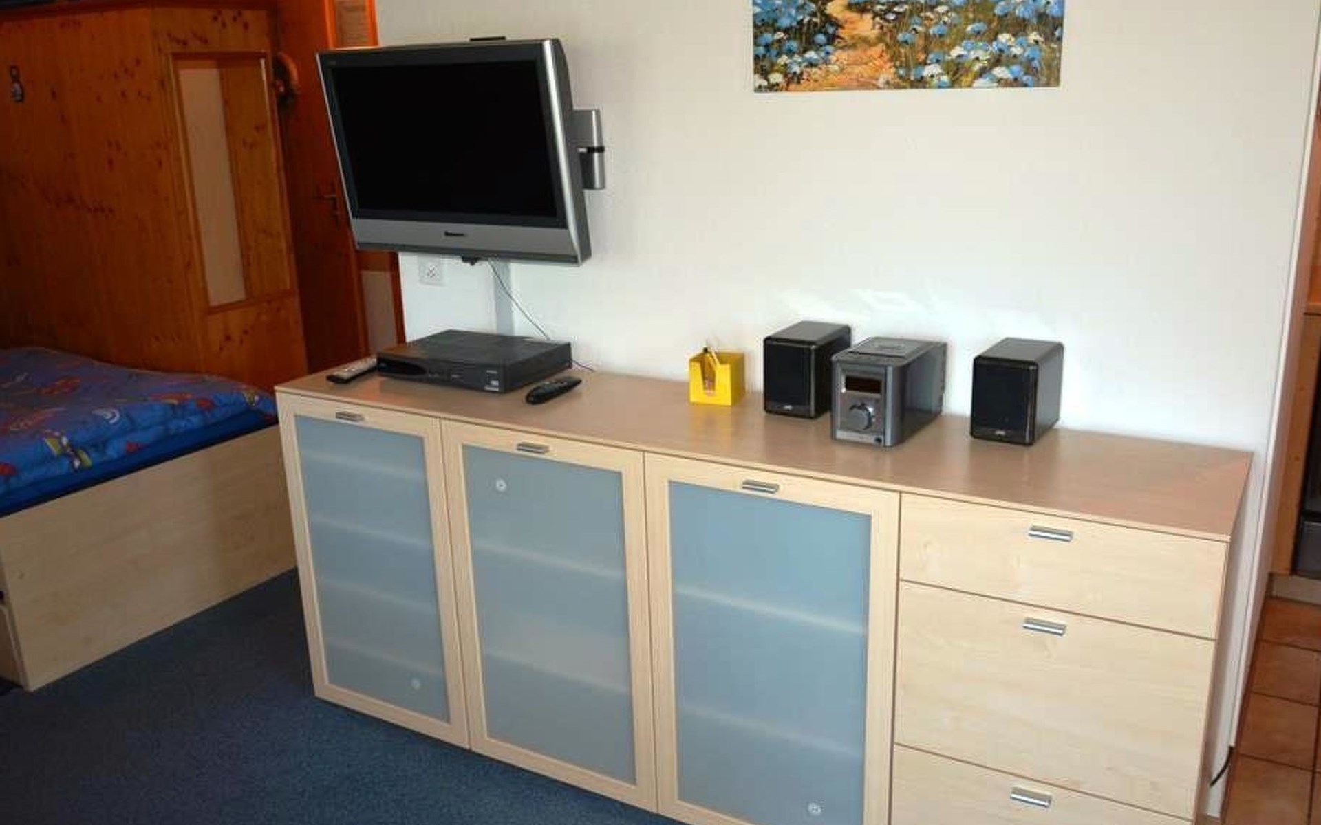 Kitchen among other things furnished with oven, cooking stove (4 hot plates), filter coffee machine, electric kettle, microwave oven. In the living-/bed room: dining table with 4 chairs, 2 armchairs, 2 single beds (90x200cm), 1 folding bed, satellite TV, video recorder, stereo system, game paddle. Bathroom with shower/toilet. Baby cot (65x125cm) incl. bed linen available. Maximum occupancy of 3 persons can not be exceeded (independently if adults or children).