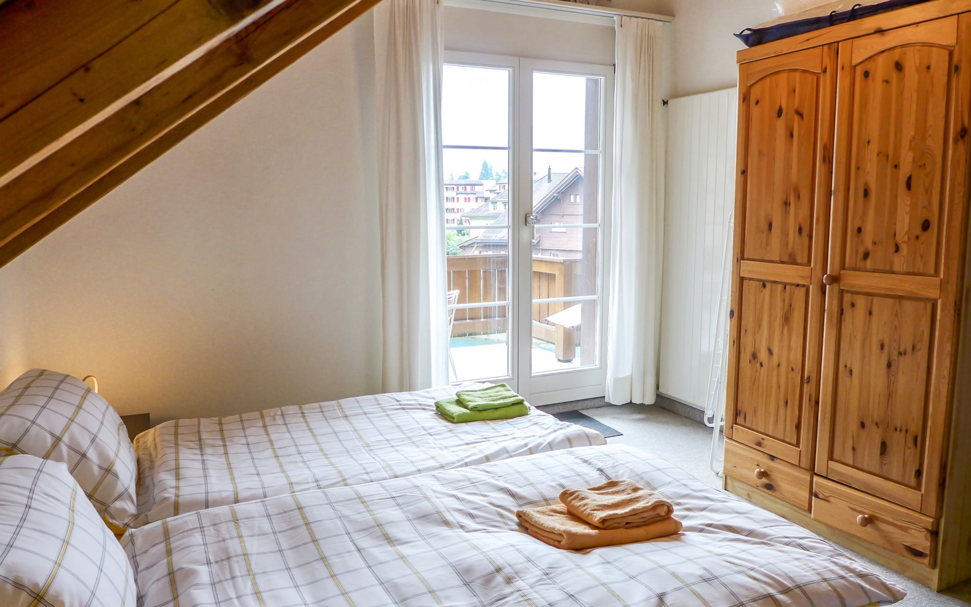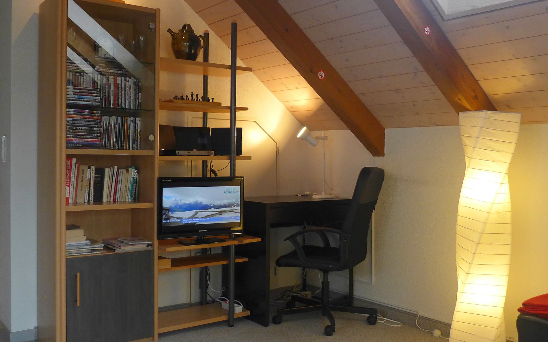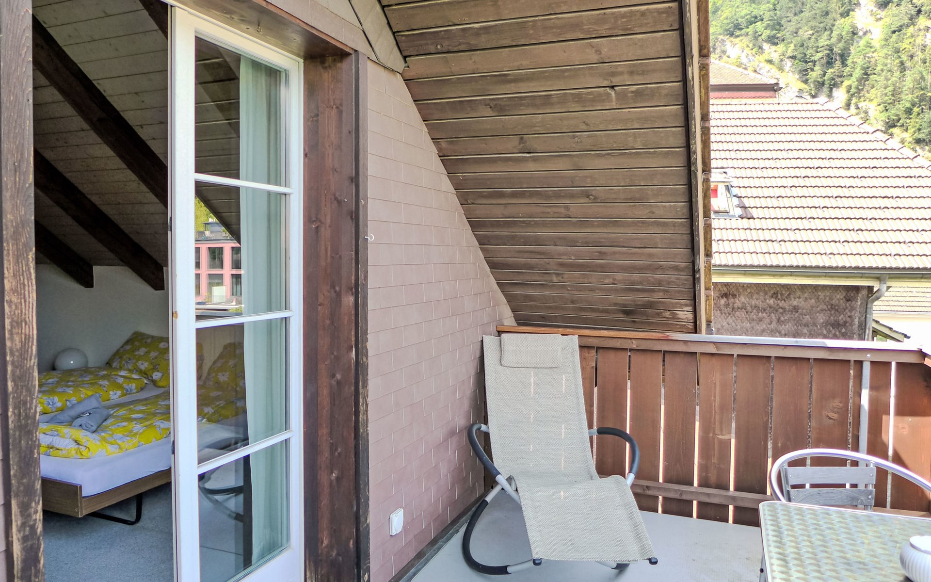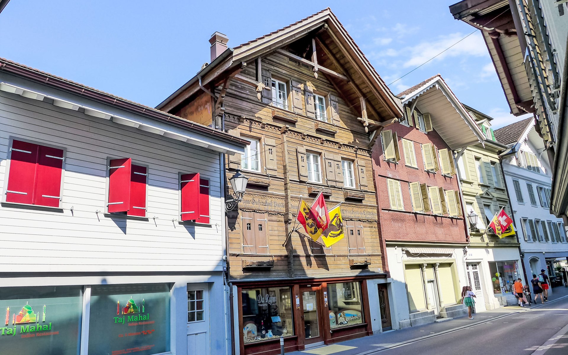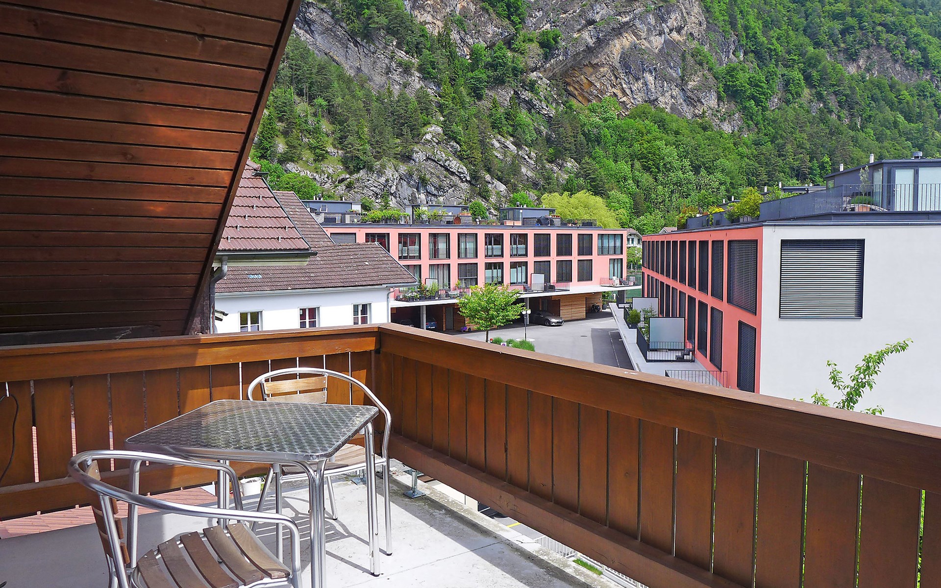 Interlaken: Historical apartment house, 3 storeys. In the resort 250 m from the centre of Interlaken, in a central position, in the heart of the city, 300 m from the edge of the forest, 100 m from the river. Public parking 100 m extra. Shop 100 m, supermarket, shopping centre 300 m, restaurant 50 m, bar, bakery 100 m, café 200 m, bus stop "Stadthaus" 180 m, railway station "Interlaken West" 400 m, outdoor swimming pool, indoor swimming pool 300 m. Golf course (18 hole) 1.5 km, surf school 1.5 km, tennis, indoor tennis centre, minigolf, riding stable 600 m, walking paths from the house 50 m, skisport facilities 25 km, ski bus stop 400 m. Nearby attractions: Jungfraujoch Top of Europe, Schilthorn Piz Gloria, Ballenberg Freilichtumuseum. Well-known ski regions can easily be reached: Grindelwald Kleine Scheidegg, Wengen Männlichen, Mürren Schilthorn. Well-known lakes can easily be reached: Thuner- und Brienzersee 2 km. Hiking paths: Jungfrau Region. Please note: no lift. Ski bus (free of charge).