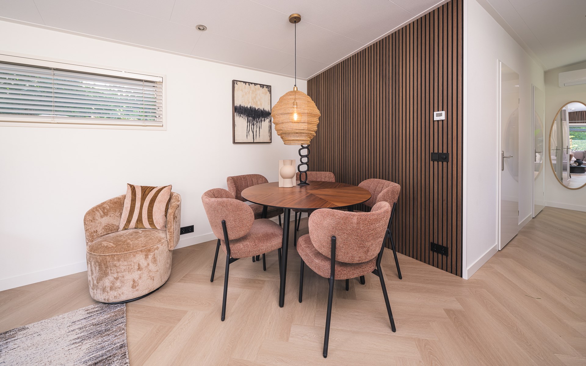 In addition to its modern interior, the Cannenburch Deluxe offers extra comfort with air conditioning, which can both heat and cool, ensuring an optimal indoor climate in every season. Outside, you can relax under the luxury pergola, perfect for enjoying the shade or staying sheltered during a light rain shower.
