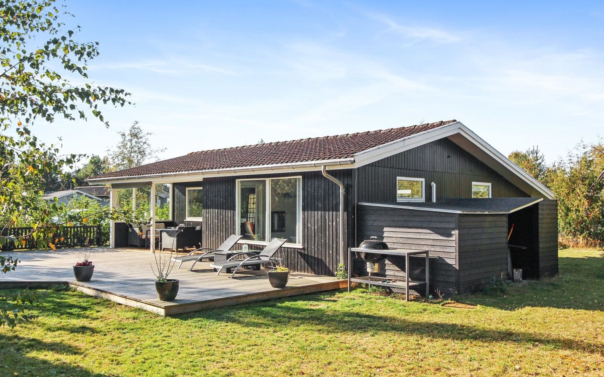 Single-family house, built in 1978. 850 m from the sea. For shared use: garden. Private: property 1'041 m2, well-kept garden (fenced). Outdoor shower, terrace (50 m2). In the house: washing machine. Parking at the house. Grocery 2 km. Golf course 2.5 km. The owner does not accept any youth groups.