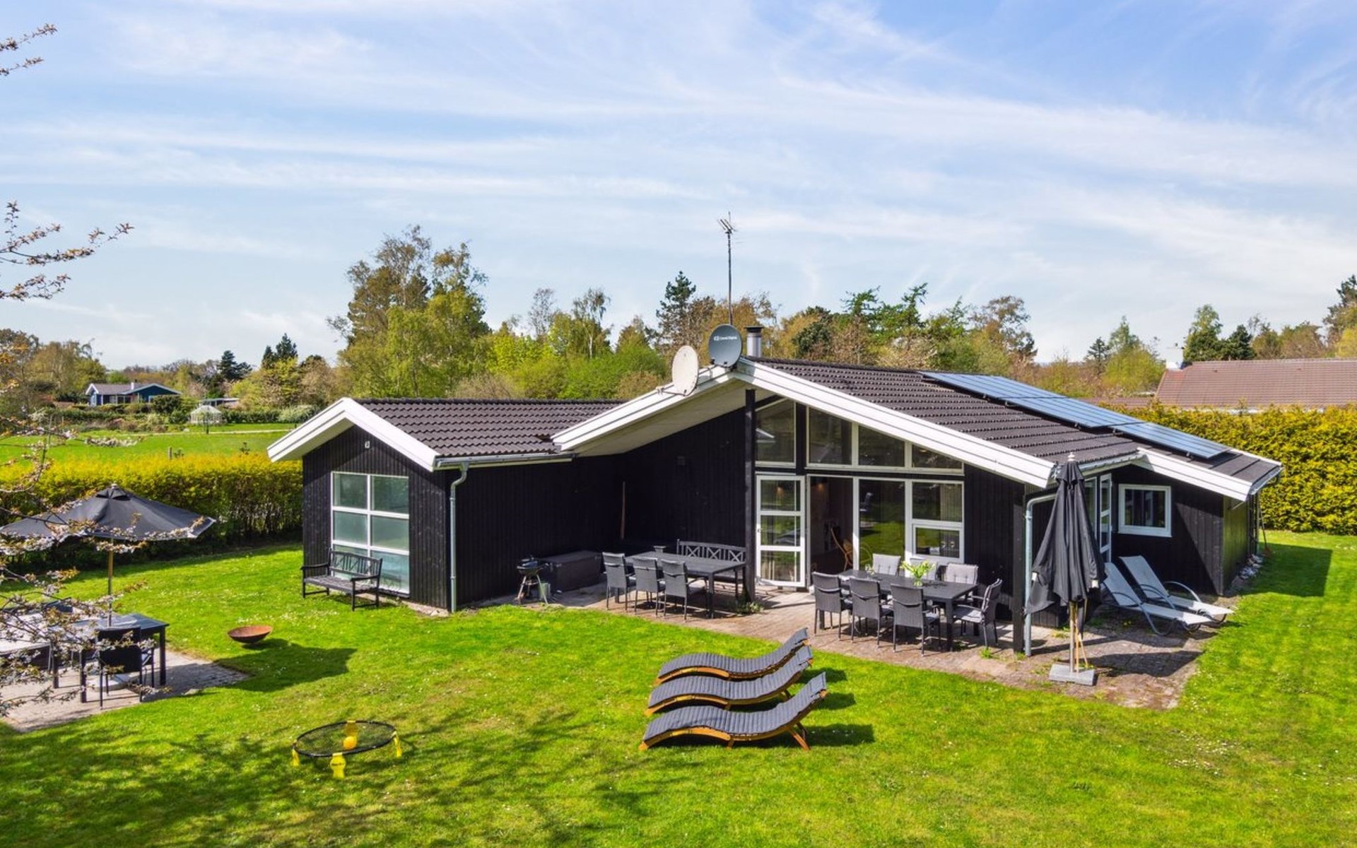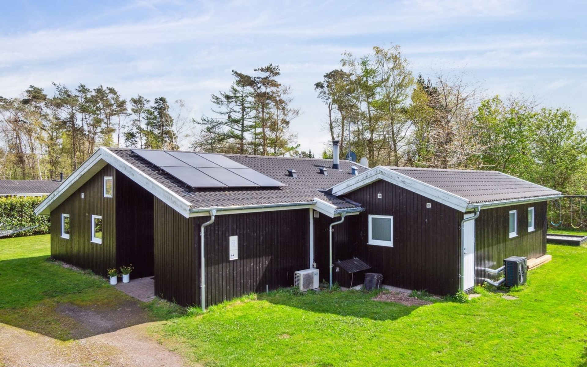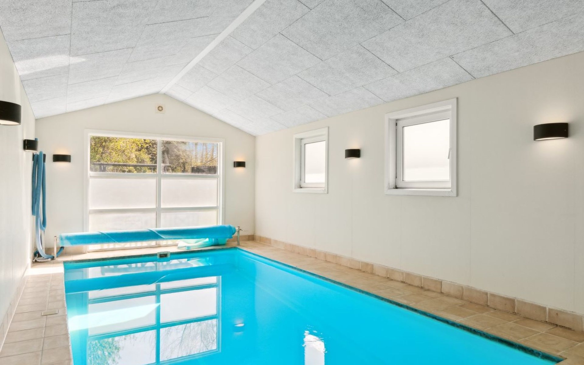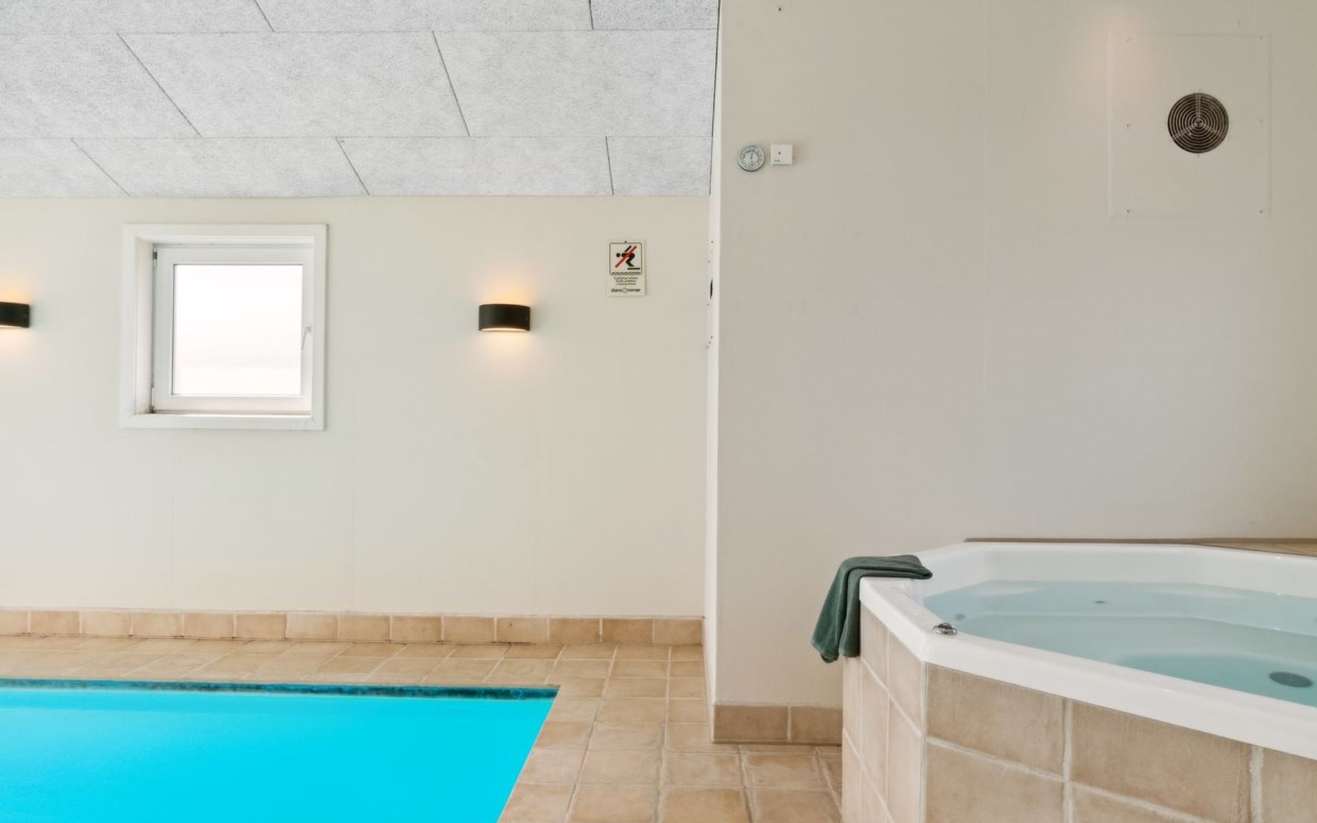 Single-family house, built in 1997. 500 m from the sea. Private: property 1'250 m2, well-kept garden, indoor pool (3 x 5 m, 1'6.5 m2, depth 140 - 140 cm). Barbecue, children's playground (swing). In the house: sauna, washing machine, tumble dryer. Parking at the house. Grocery 1.5 km. The owner does not accept any youth groups.