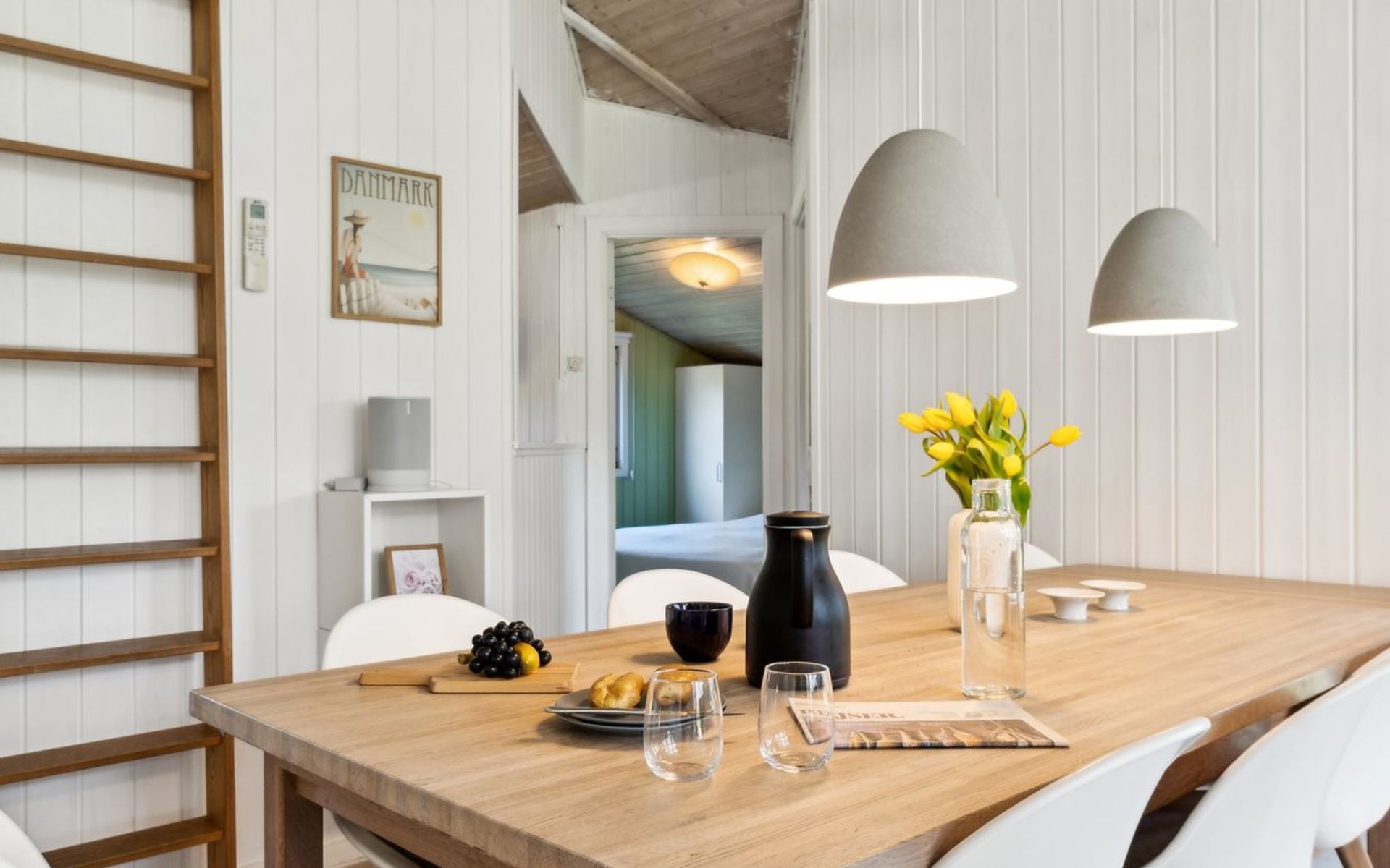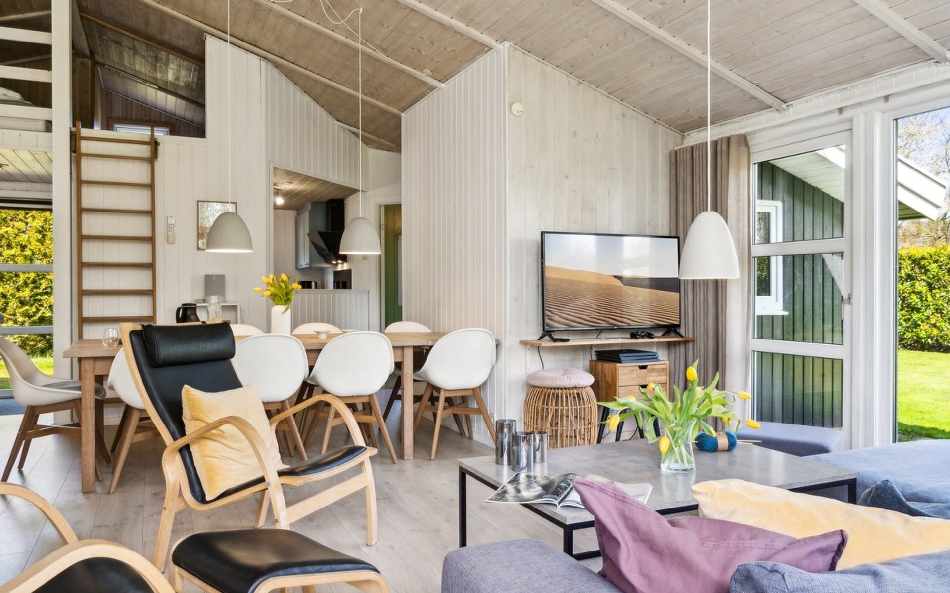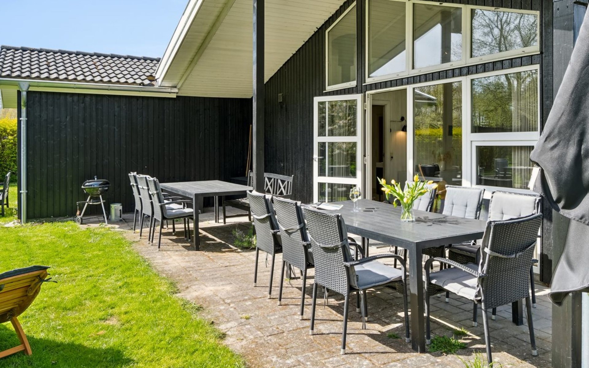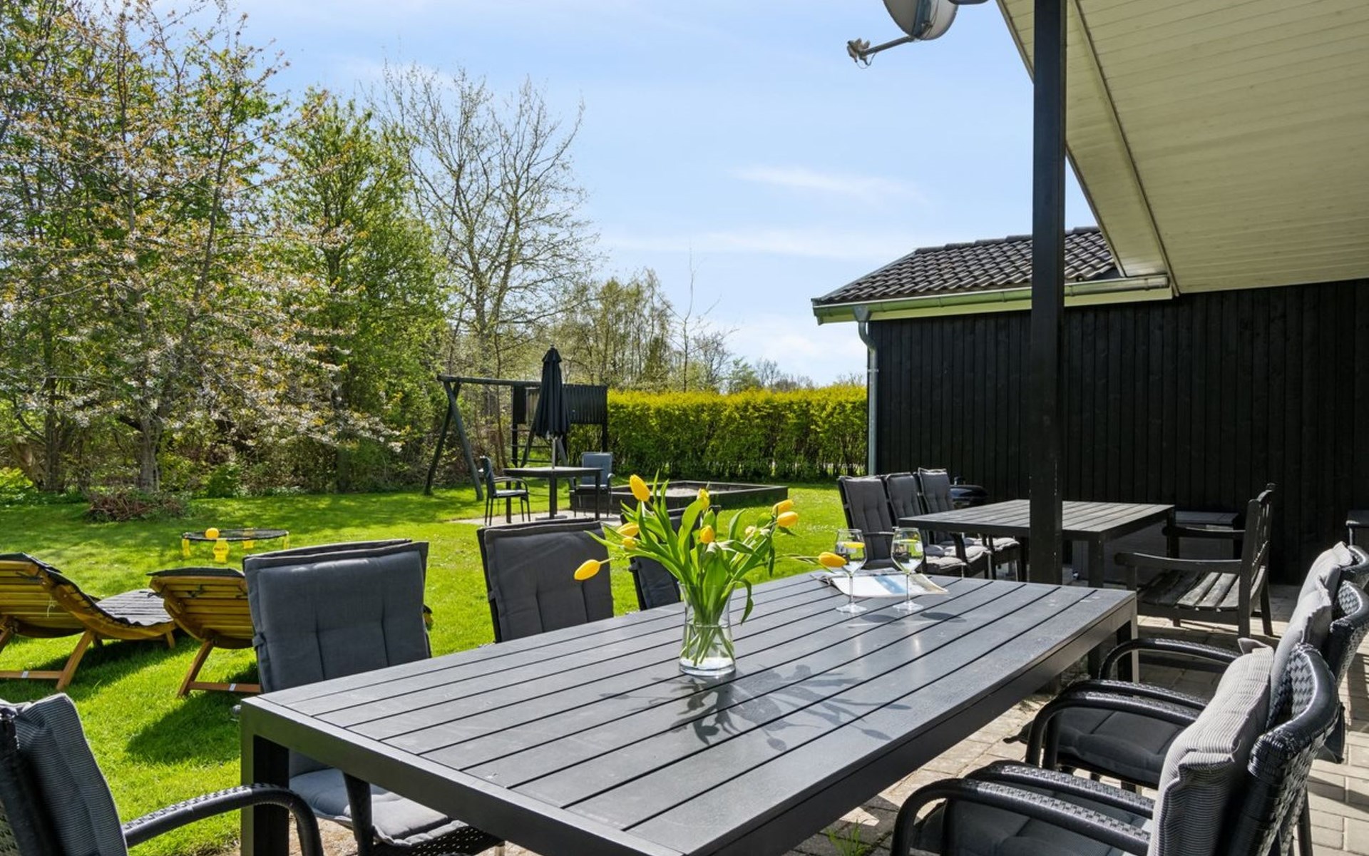 Single-family house, built in 1997. 500 m from the sea. Private: property 1'250 m2, well-kept garden, indoor pool (3 x 5 m, 1'6.5 m2, depth 140 - 140 cm). Barbecue, children's playground (swing). In the house: sauna, washing machine, tumble dryer. Parking at the house. Grocery 1.5 km. The owner does not accept any youth groups.