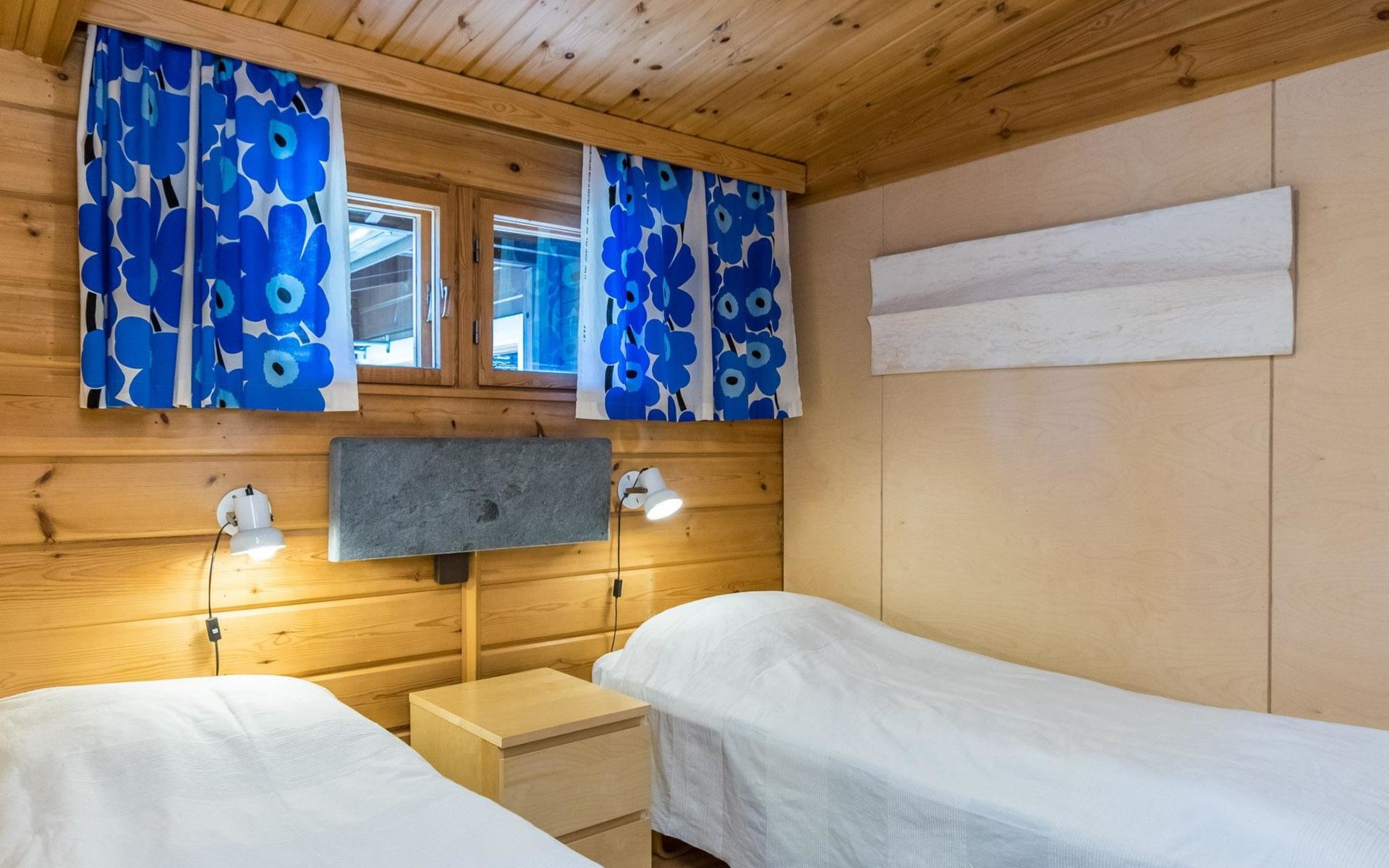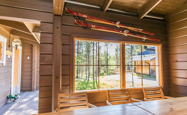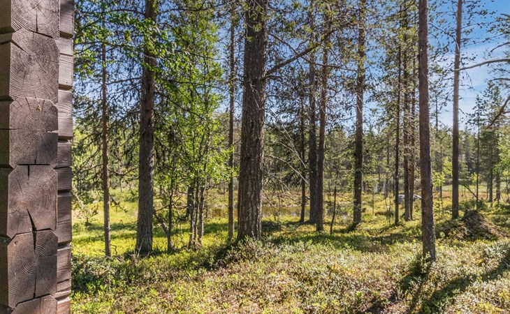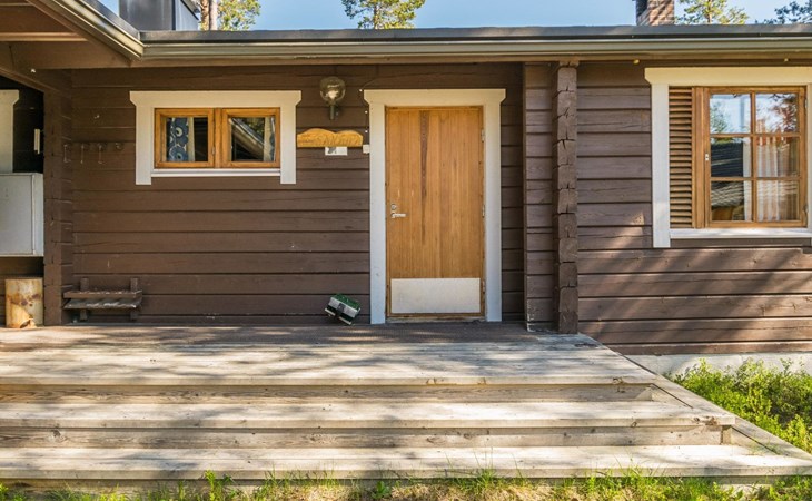 Apartment Metsäntupa is located in a semi-detached house in the centre of Saariselkä, offering a convenient location close to the area's services and activities. The main entrance to the apartment is on the west side of the house, facing the centre.