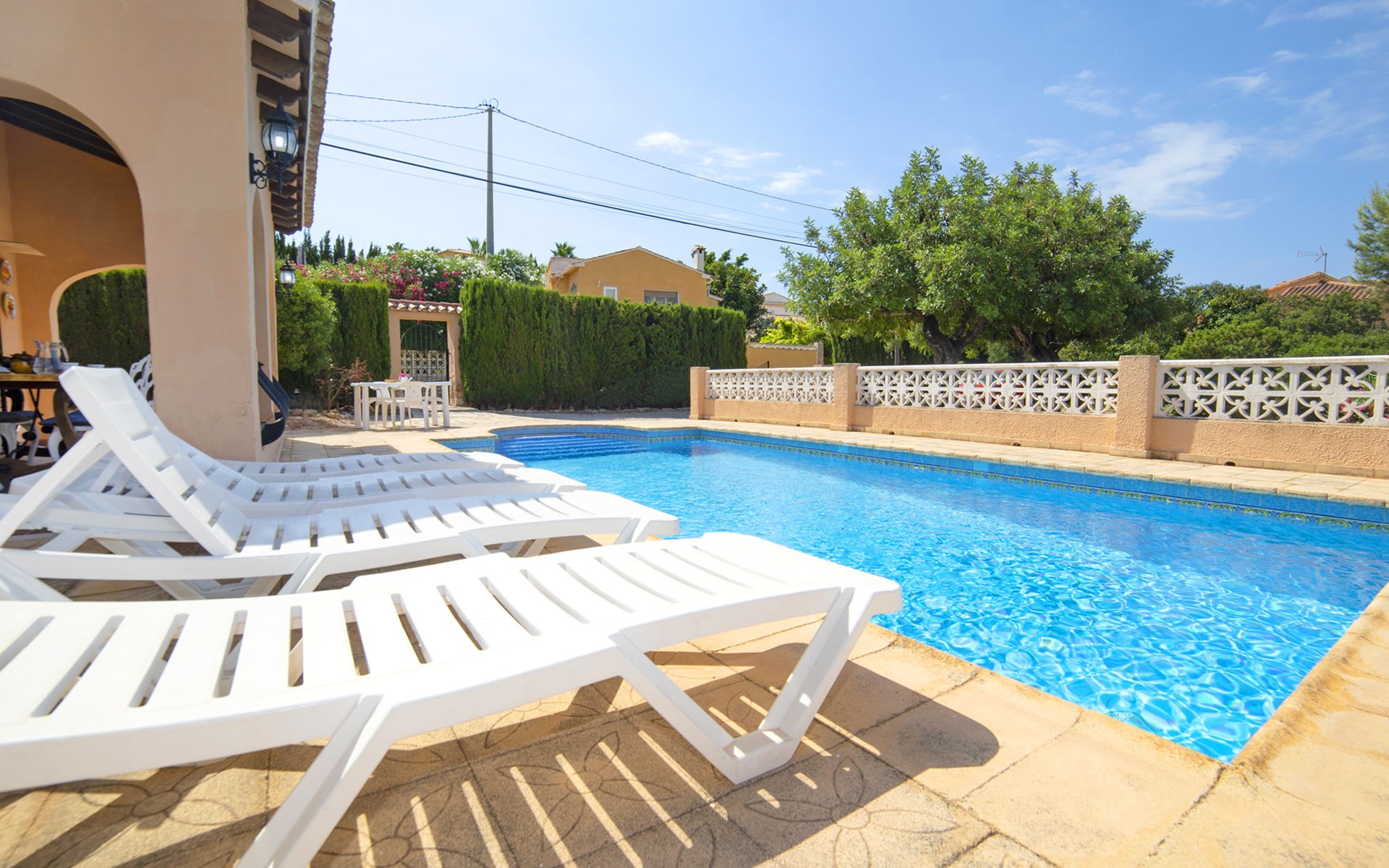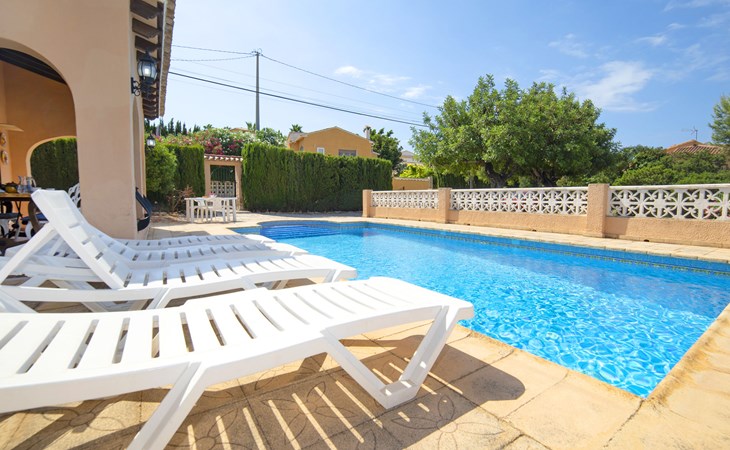 Marisol Park: Cosy, comfortable house "Marisol Park". 2 km from the centre of Calpe, 1 km from the sea, 1 km from the beach. Private: property 892 m2 (fenced), swimming pool (7 x 4 m, seasonal availability: 01.Jan. - 31.Dec.). Outdoor shower. Grocery, supermarket 500 m, restaurant 1 km, bus stop 1.5 km, sandy beach "Playa Arenal" 1 km. Nearby attractions: Aqualandia, Mundomar, Terra MÃtica, Terra Natura, Benidorm Palace (Benidorm), Les Fonts de l'Algar, Castillo de Guadalest.