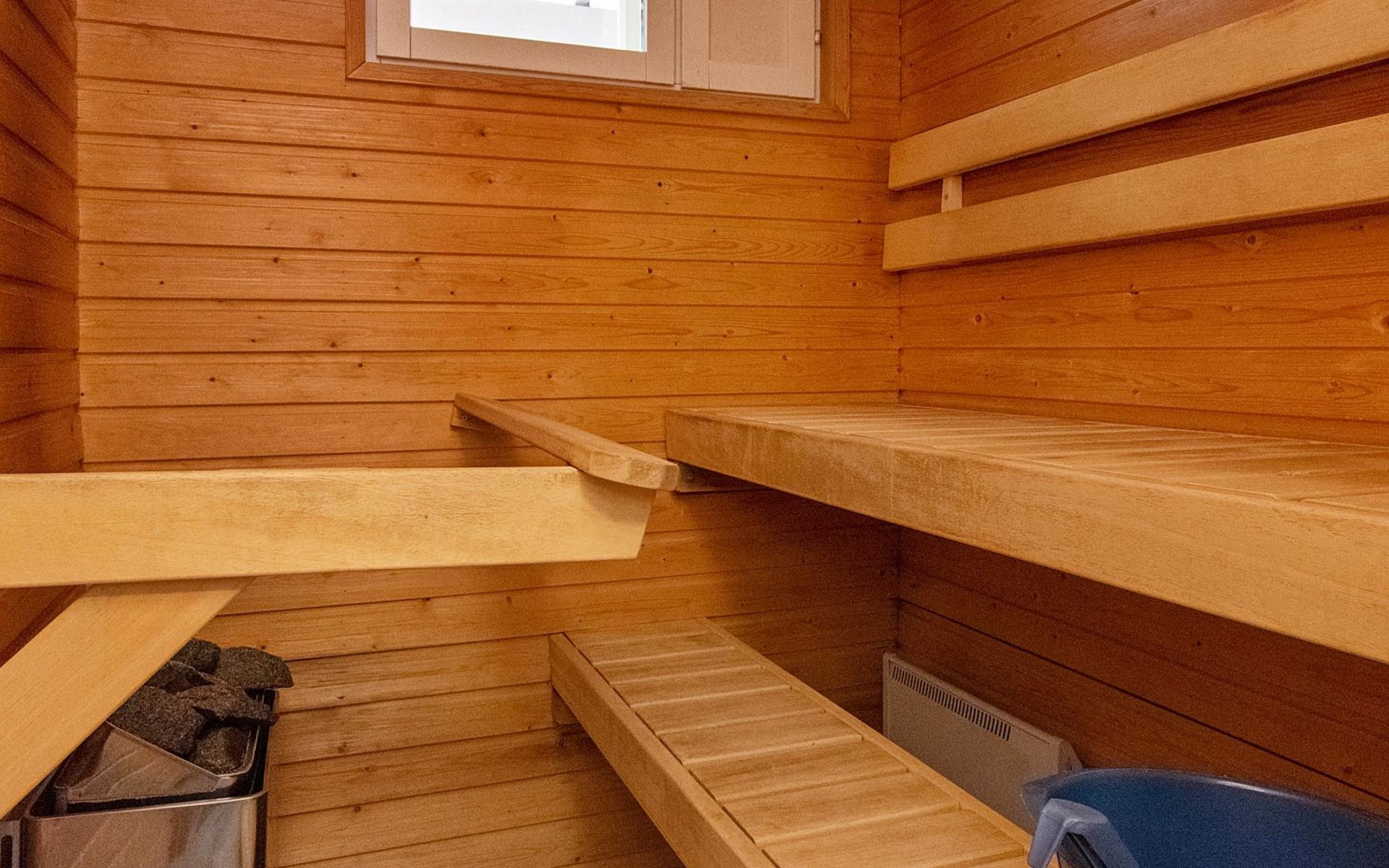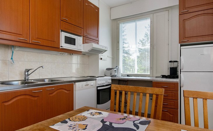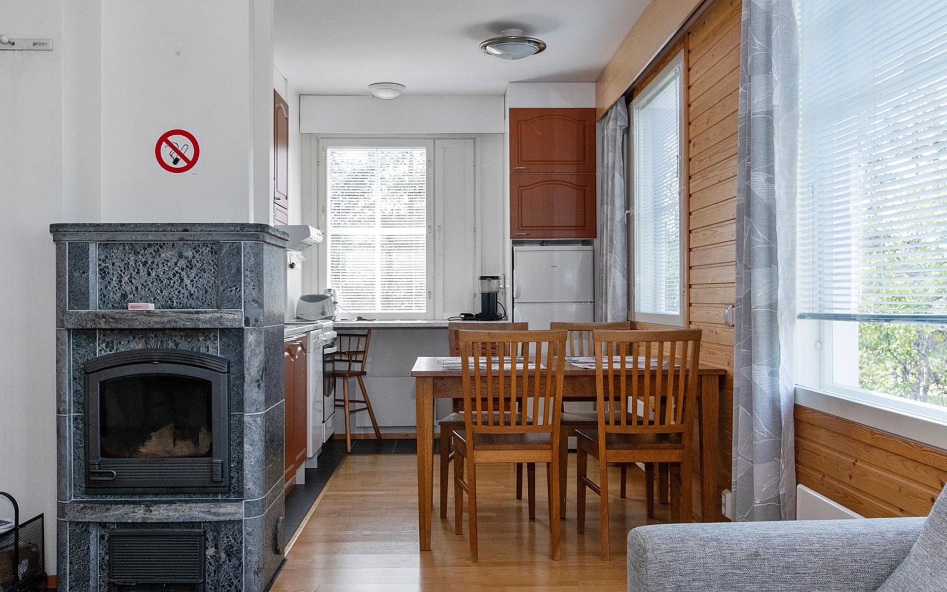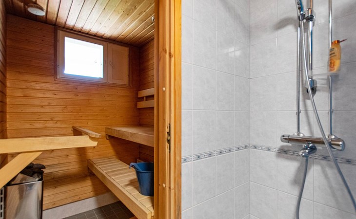 The kitchenette has everything you need for cooking and socialising. You can enjoy the warmth of the fireplace while dining, and the apartment's own sauna provides extra warmth after a day's excursions.