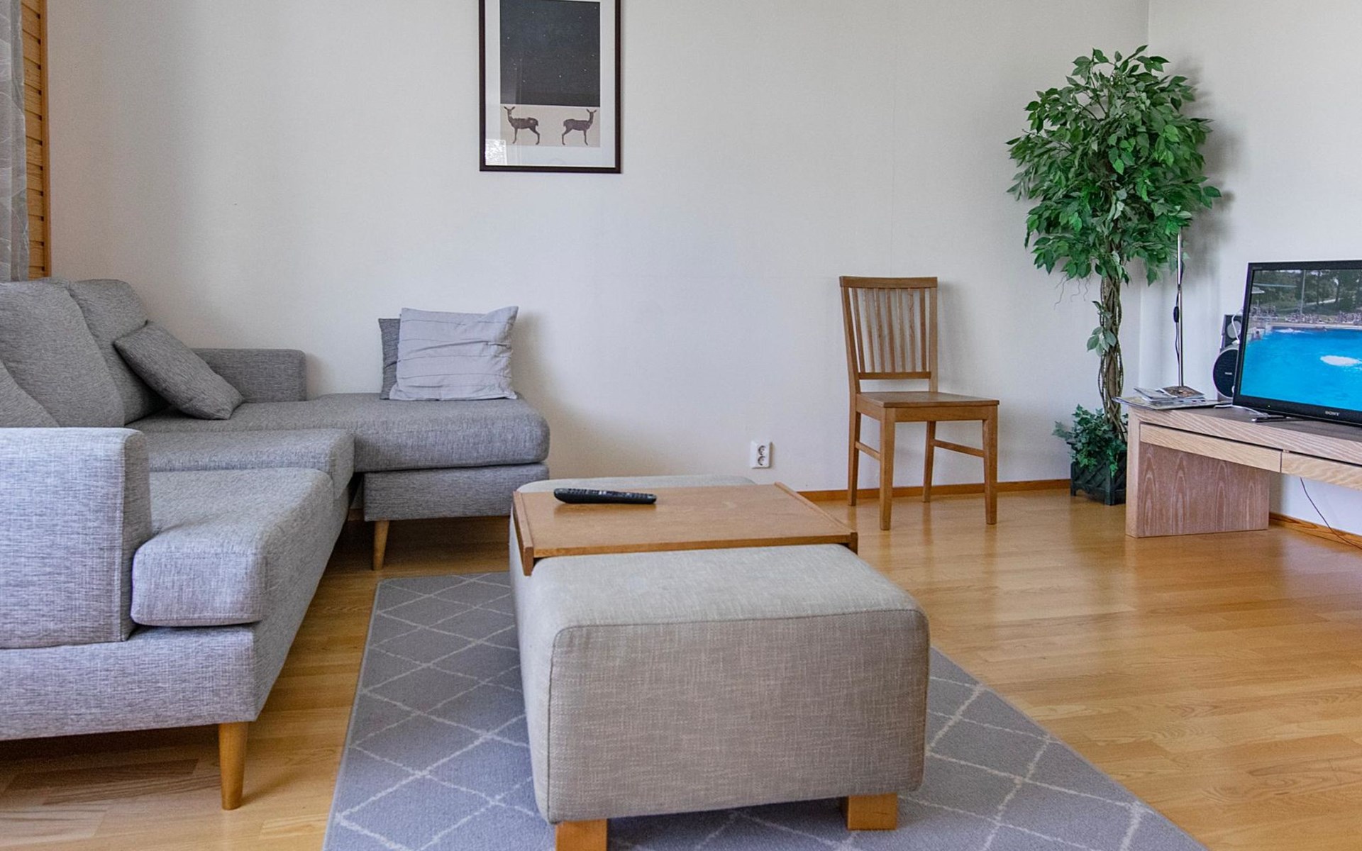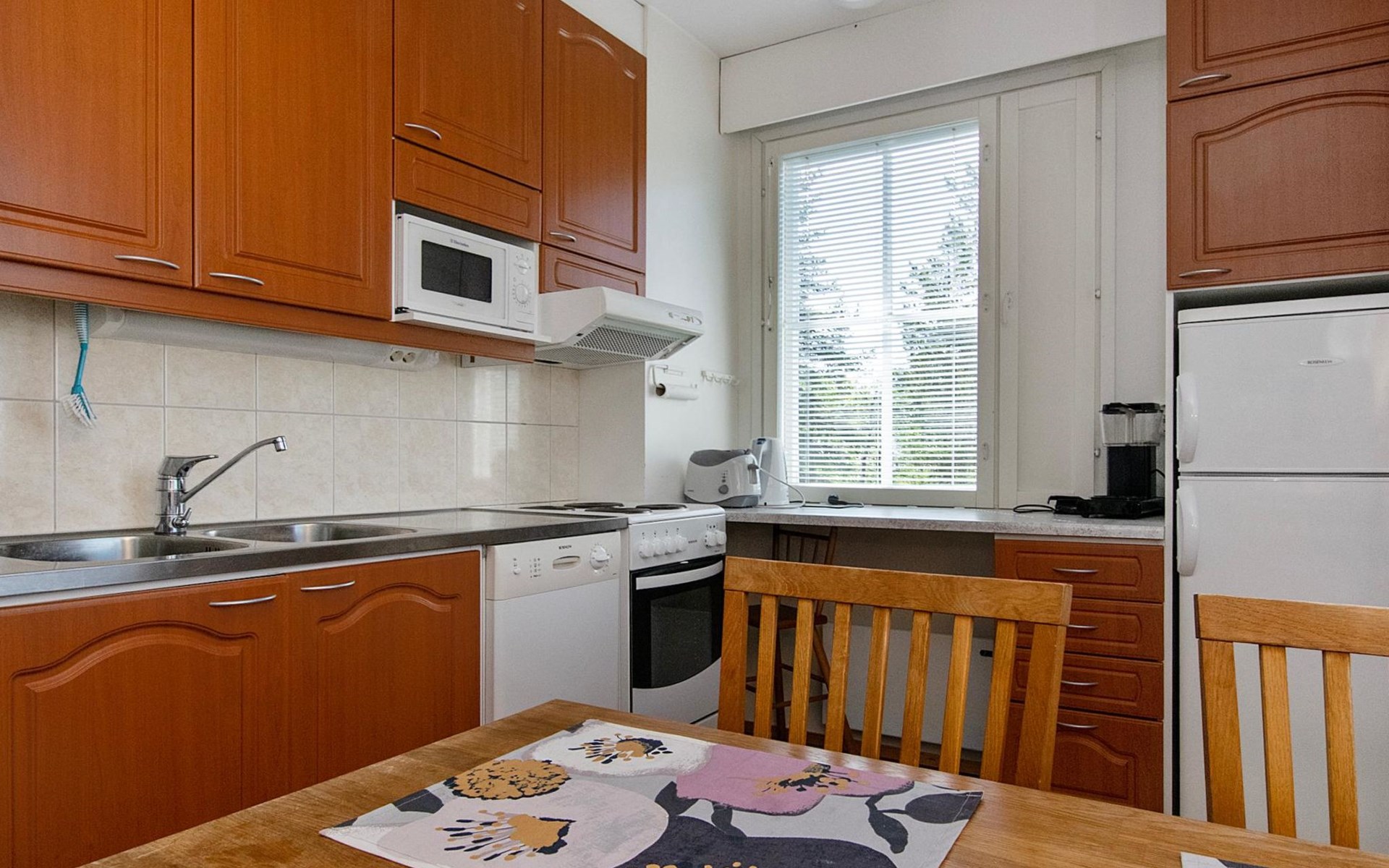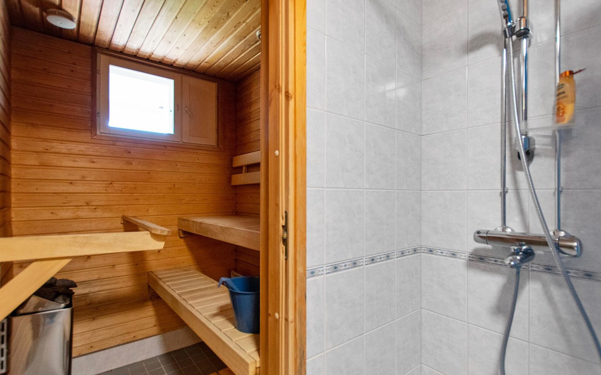 The kitchenette has everything you need for cooking and socialising. You can enjoy the warmth of the fireplace while dining, and the apartment's own sauna provides extra warmth after a day's excursions.
