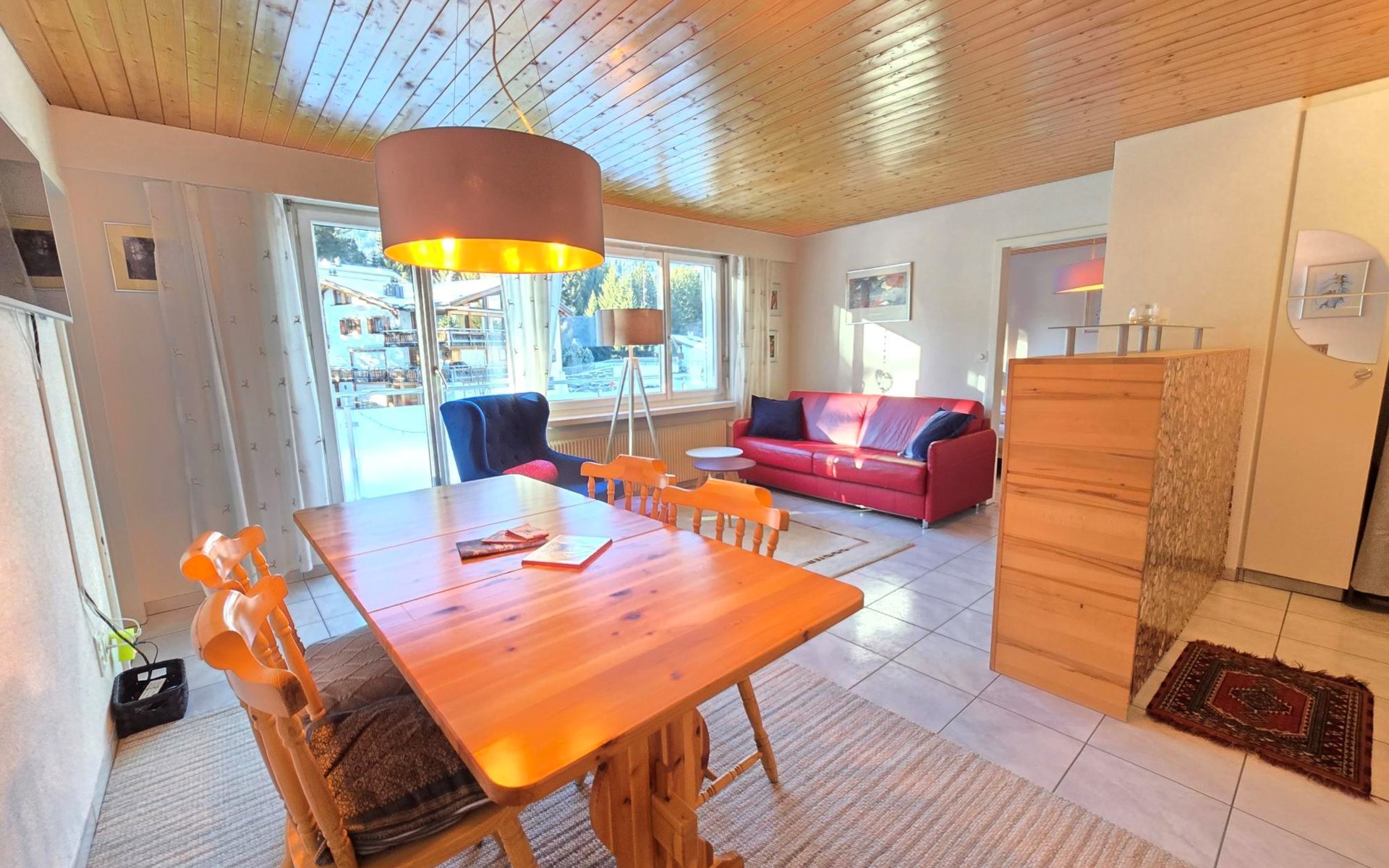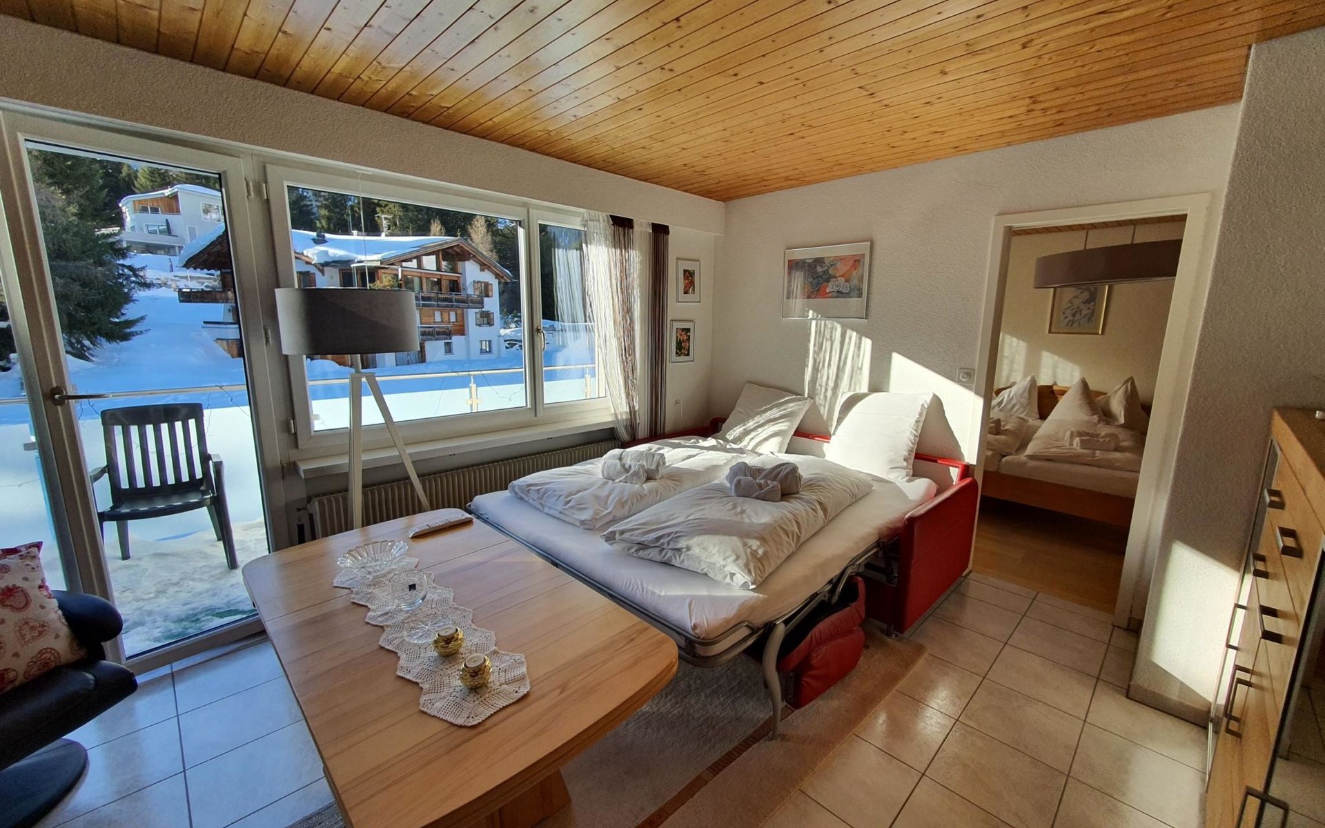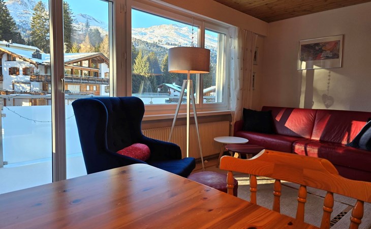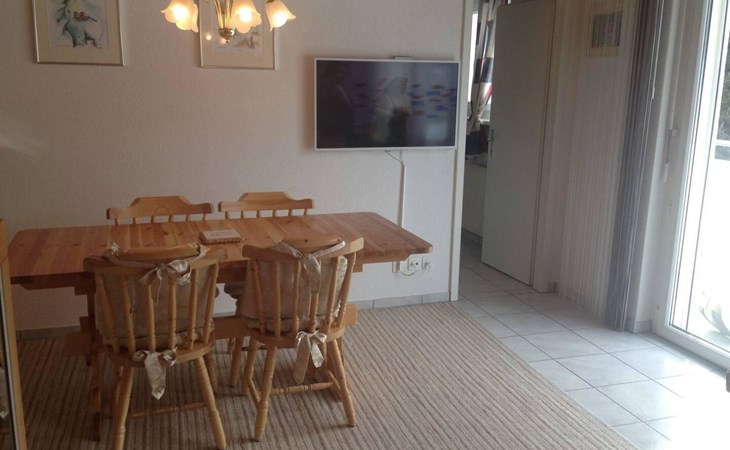 2.5-room apartment on the 3rd floor for 4 people, consisting of a living room, kitchen, 1 bedroom, bathroom/toilet and a spacious and sunny balcony. The kitchen is equipped with everything you need for a cozy holiday (Nespresso machine, kettle, dishwasher, oven, refrigerator with freezer, raclette oven, fondue set, etc.)