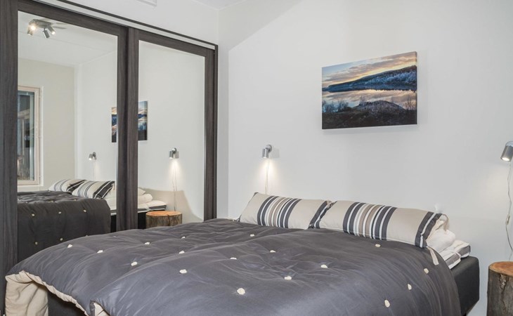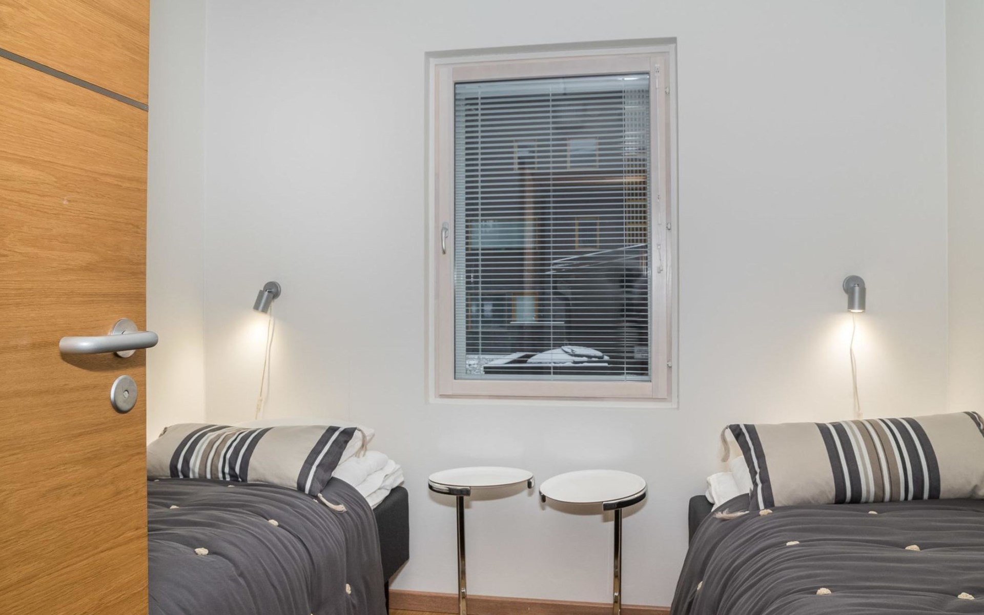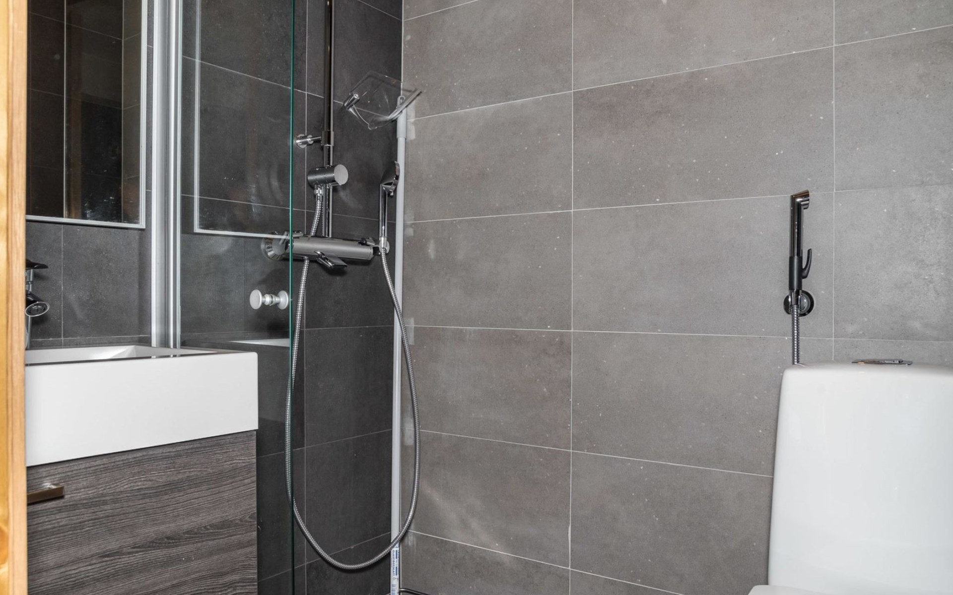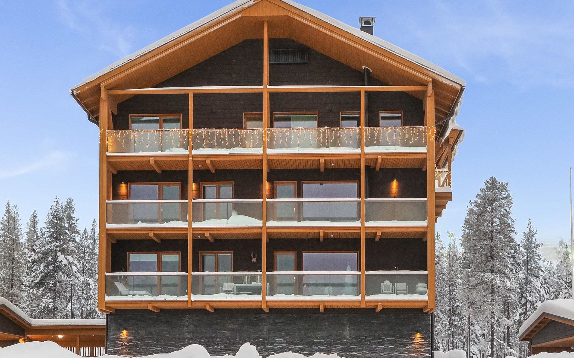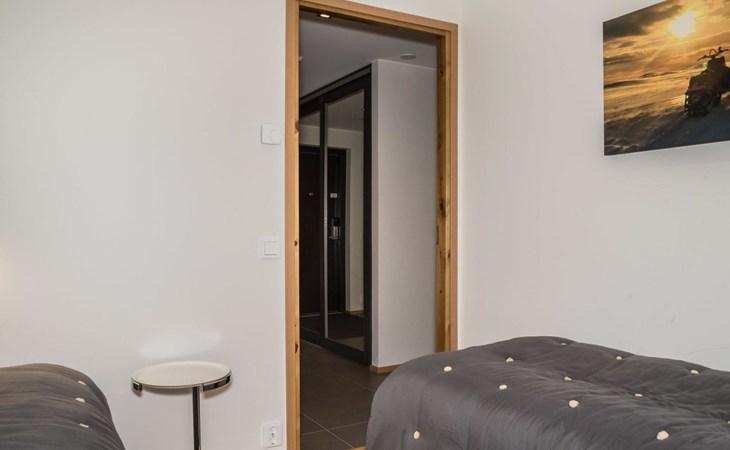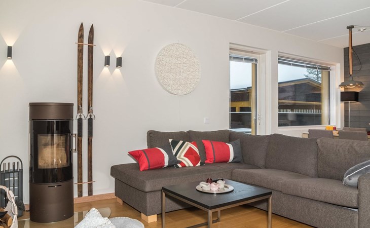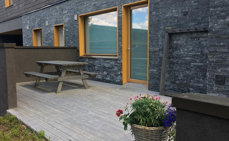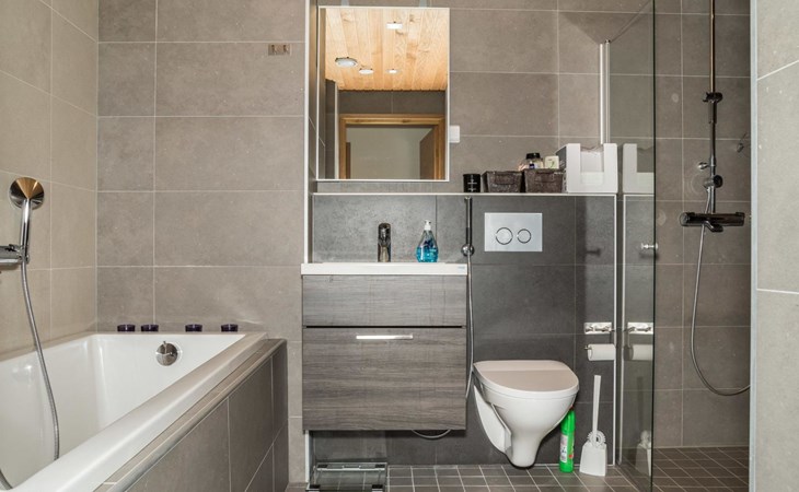 The living room and dining area are spacious, cohesive spaces. You can enjoy the atmosphere by the fireplace in the living room, and you can easily admire the views from the terrace, where's access from the dining area. The modern bathroom with sauna offers gentle steam and you can relax in the bathtub after a day outdoors. The apartment also has a separate toilet with shower which adds practicality when there are more people.