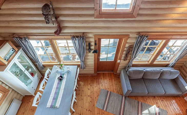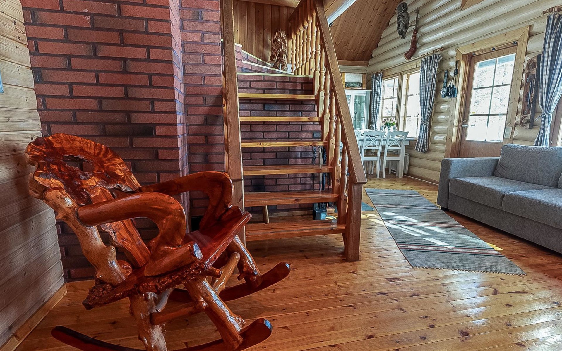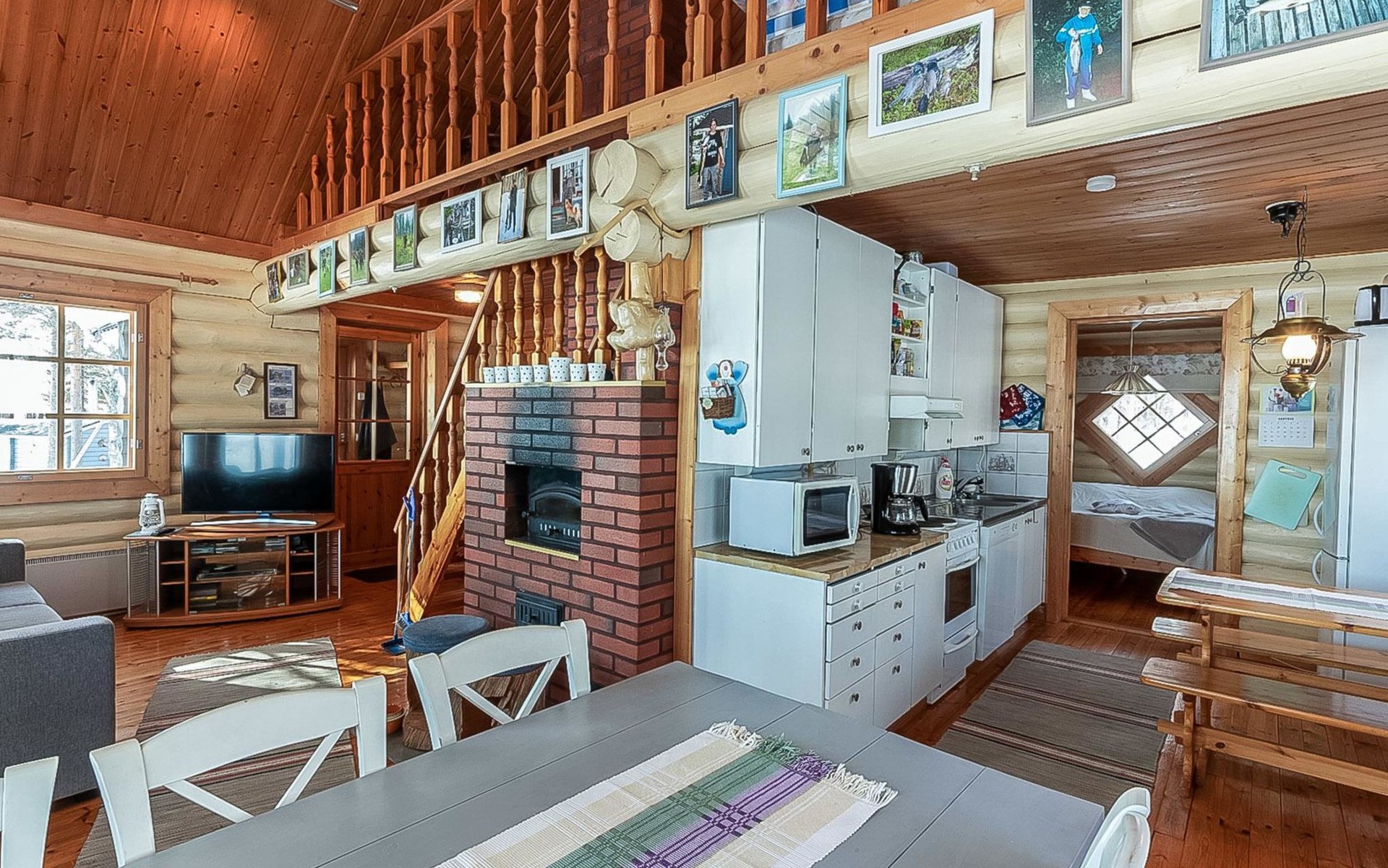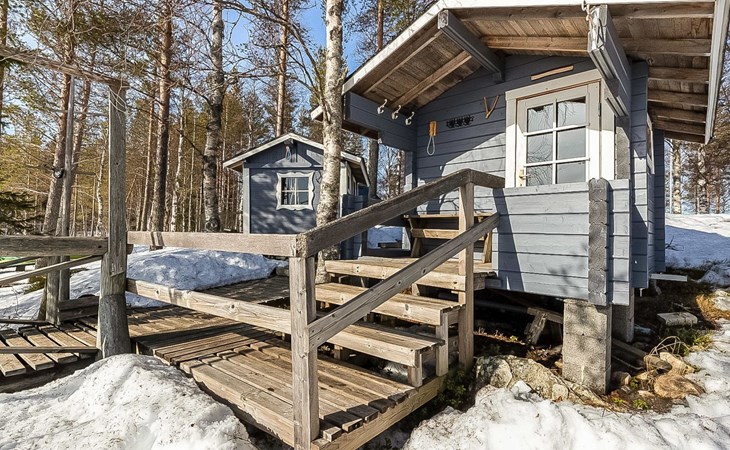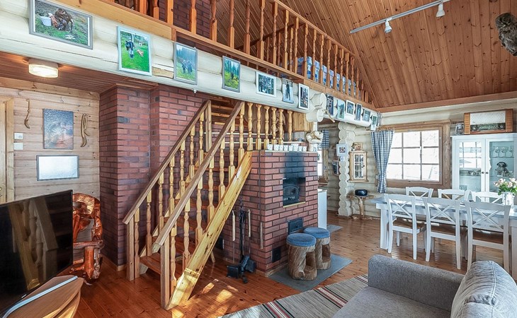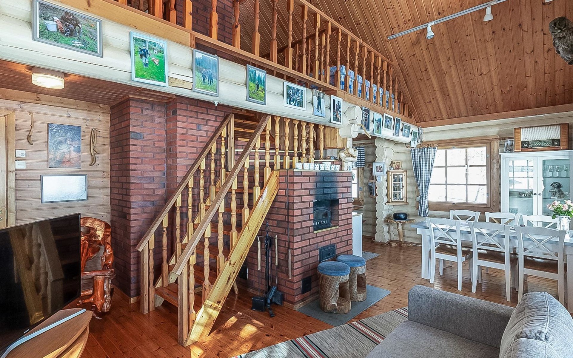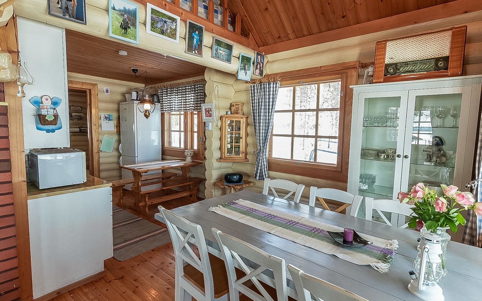 Log cottage 1998, living room/kitchen, bedroom double bed, sleeping loft double bed, sauna (wood-burning stove), washroom, separate WC, open porch, balcony. Additionally, 2 moveable extra beds which can be sited as required.