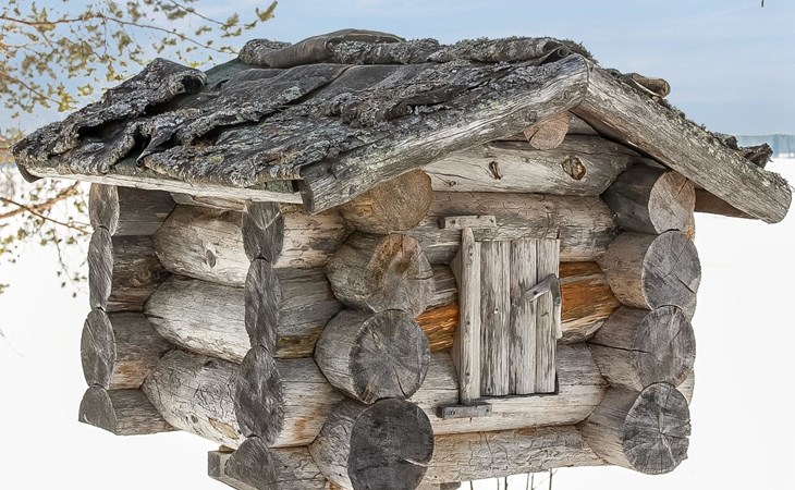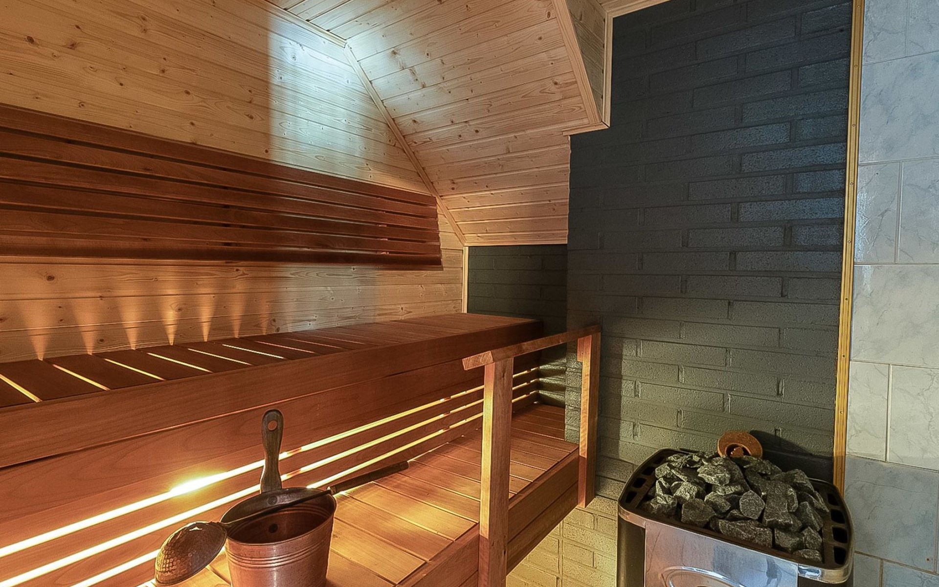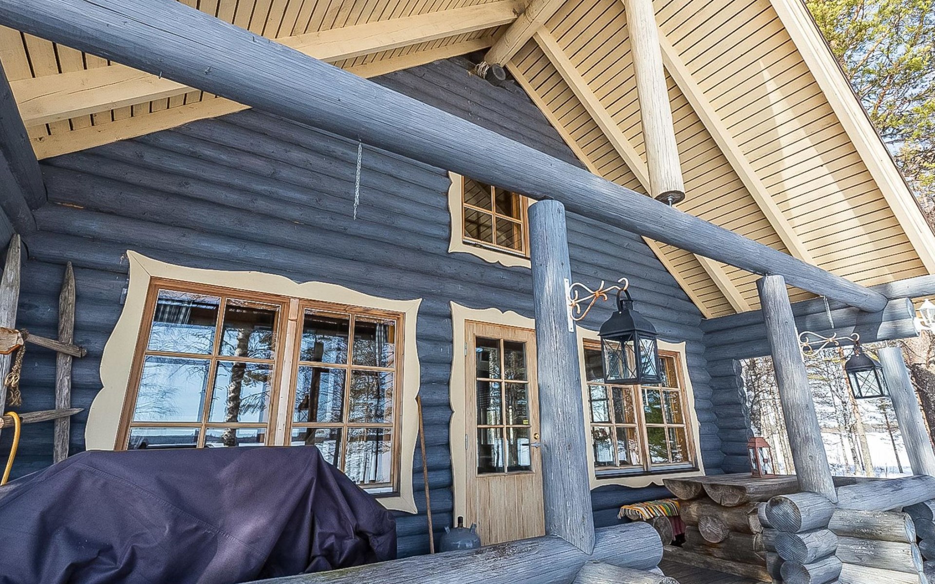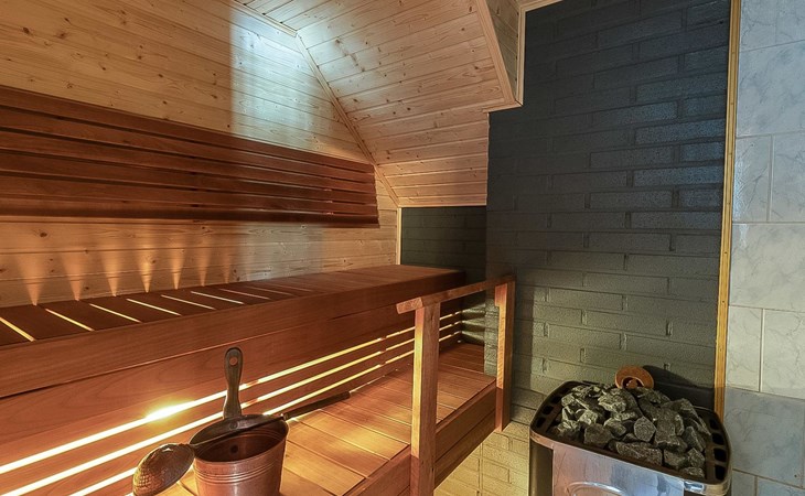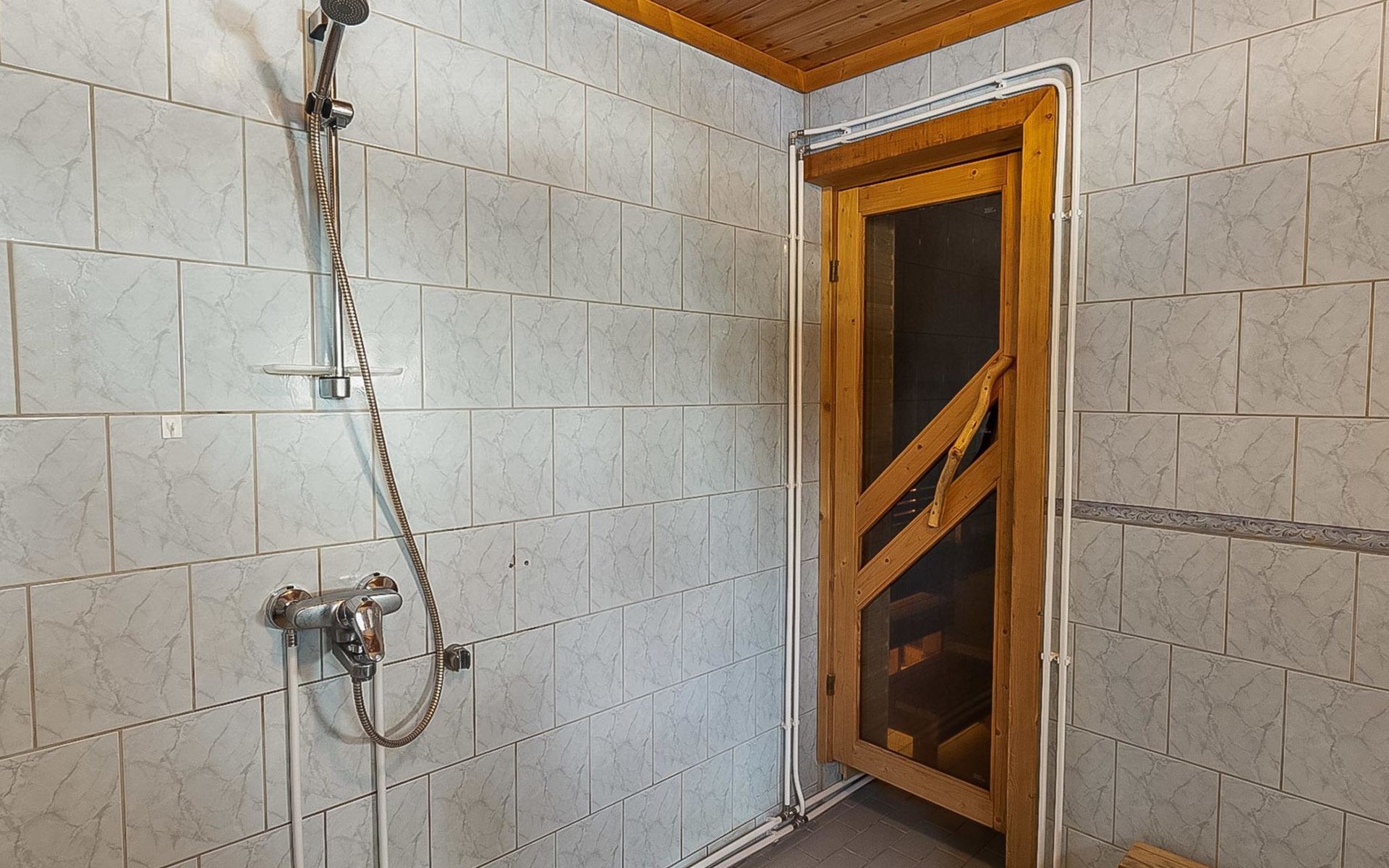 Separate lakeshore sauna 10 m, with ‘steam room’ (wood-burning stove and hot water tank on stove) and open porch. Jetty next to sauna. Lakeshore sauna has neither water pipe nor electricity.