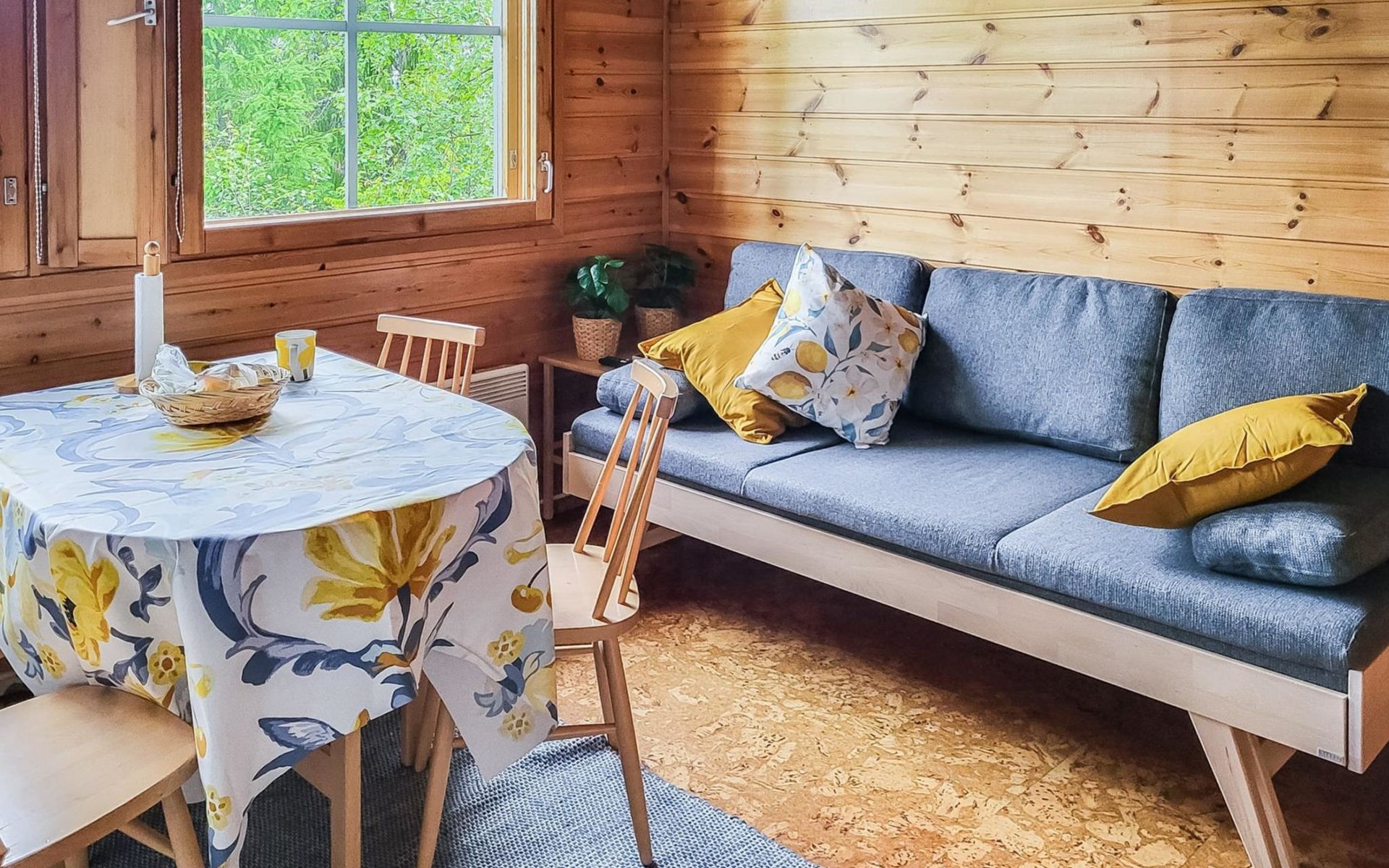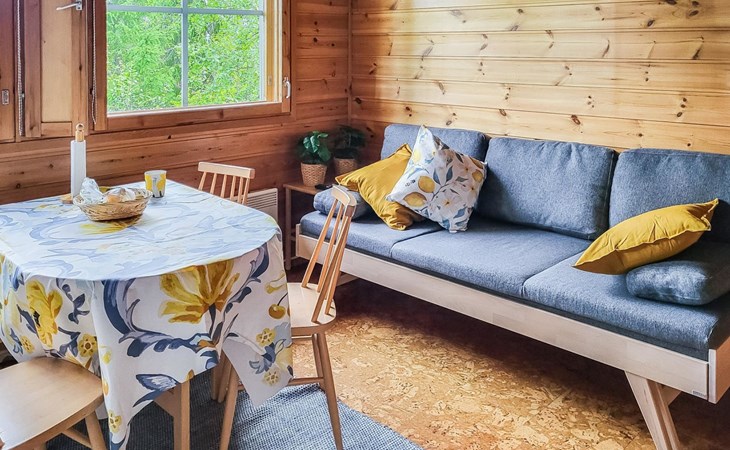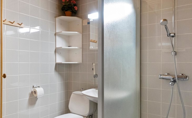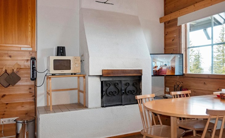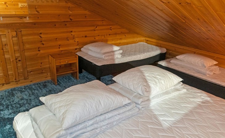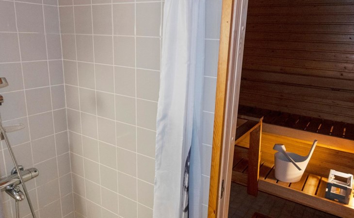 140 km northeast of Oulu, in the Pikku-Syöte ski resort in the Syötekeskus area. End apartment in a planed log terraced house, paneled inside, built in 1985. Sofa bed in the living room and kitchen, double bed and 2 single beds in the loft, steep stairs to the loft, the loft is low and has a sloping ceiling, the maximum height of the loft is 2 m, sauna and washroom/toilet and storage.