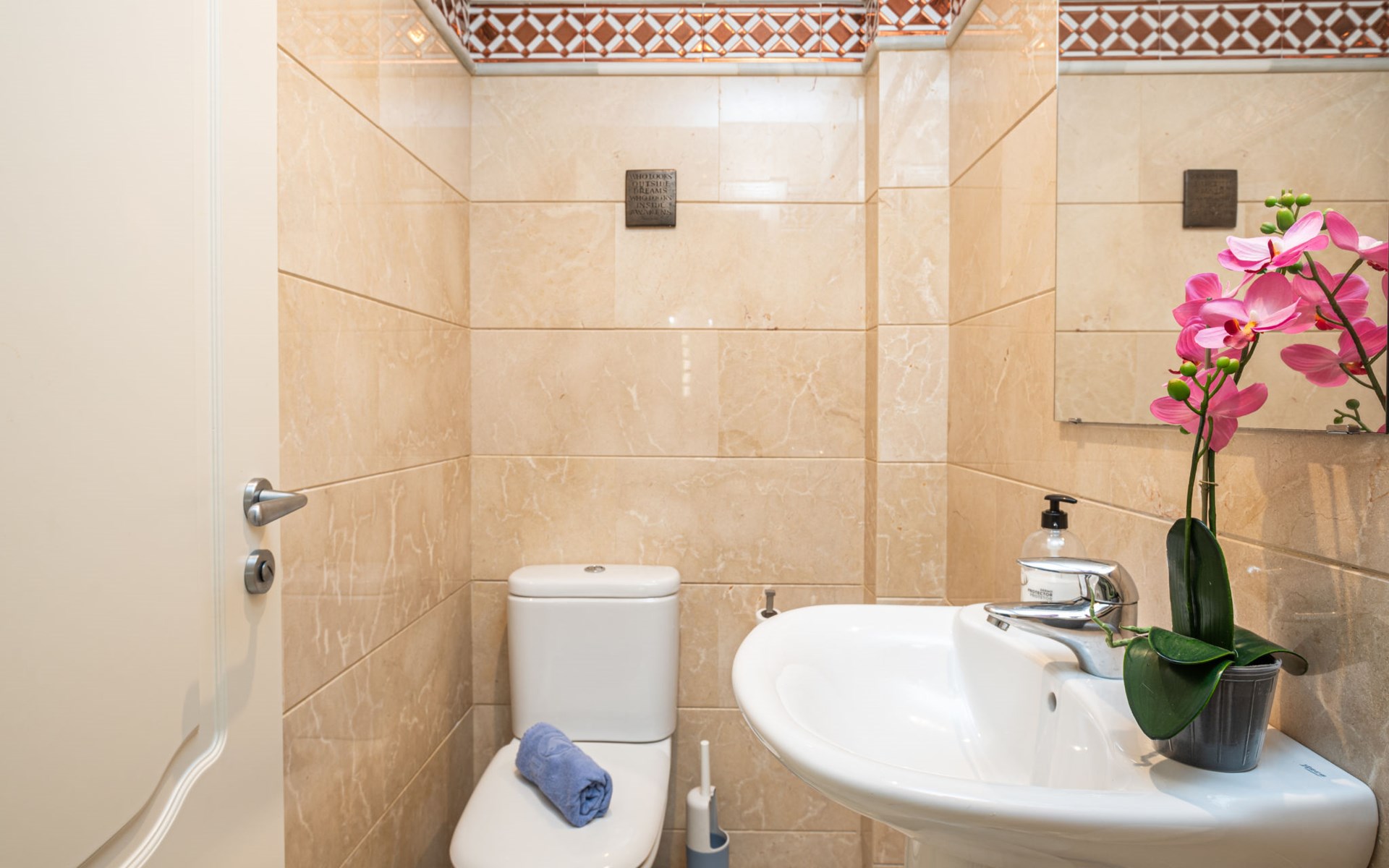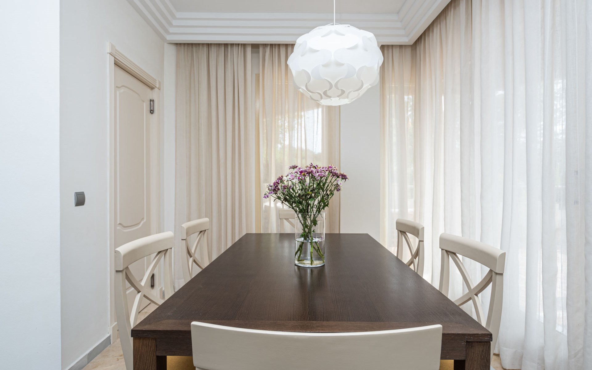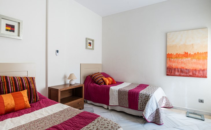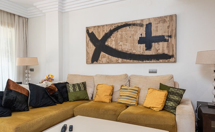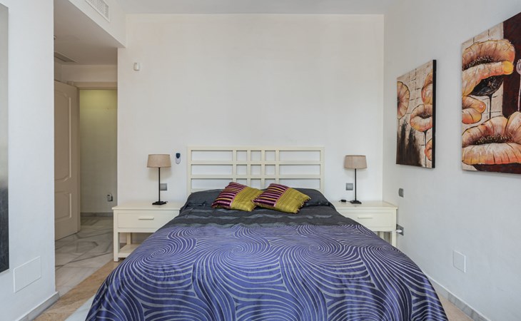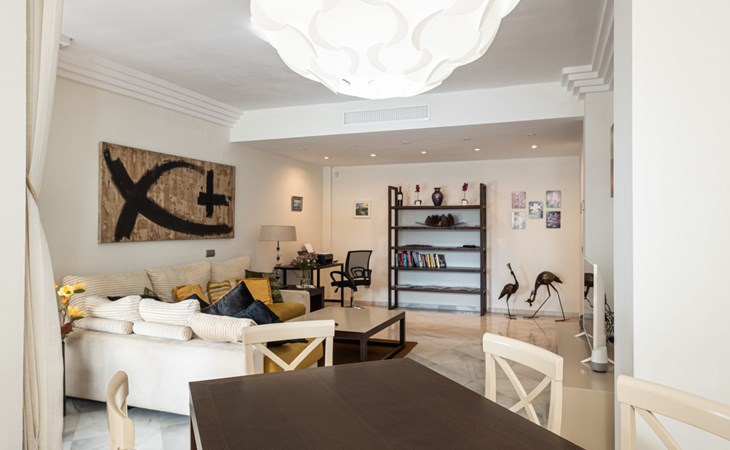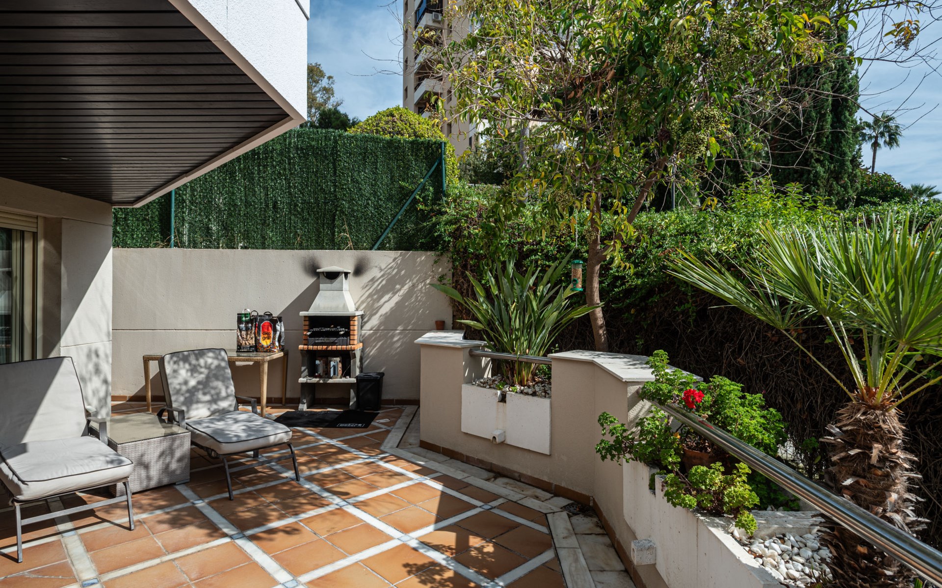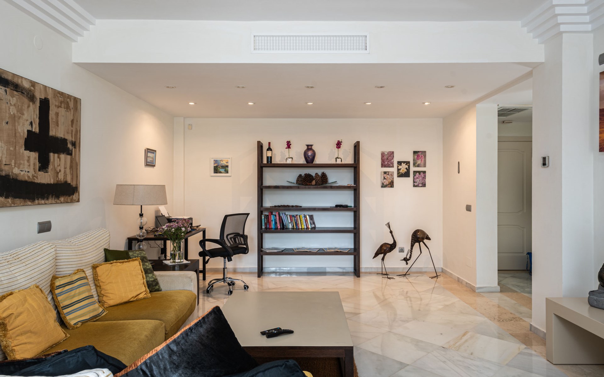 Nueva Andalucia: Cosy, comfortable apartment block "Fuente Aloha". In the resort Nueva Andalucía, 2 km from the centre of Puerto Banús, 7 km from the centre of Marbella, in a quiet, sunny position, 2.3 km from the sea, 2.3 km from the beach. For shared use: property (fenced), garden, 2 swimming pools heated (24 x 10 m, depth 130 - 210 cm, seasonal availability: 01.Jan. - 31.Dec.) with internal staircase. Outdoor shower. In the complex: sauna, fitness room, steam room, relaxation room, lift. Roofed, parking space n 81. Supermarket 500 m, restaurant 100 m, bus stop "Los Dragos" 650 m, sandy beach 1.2 km. Golf course (18 hole) 1.8 km. The owner does not accept any youth groups. There is a heated indoor pool size 8x4 m. depth: 0,8-1,5m.