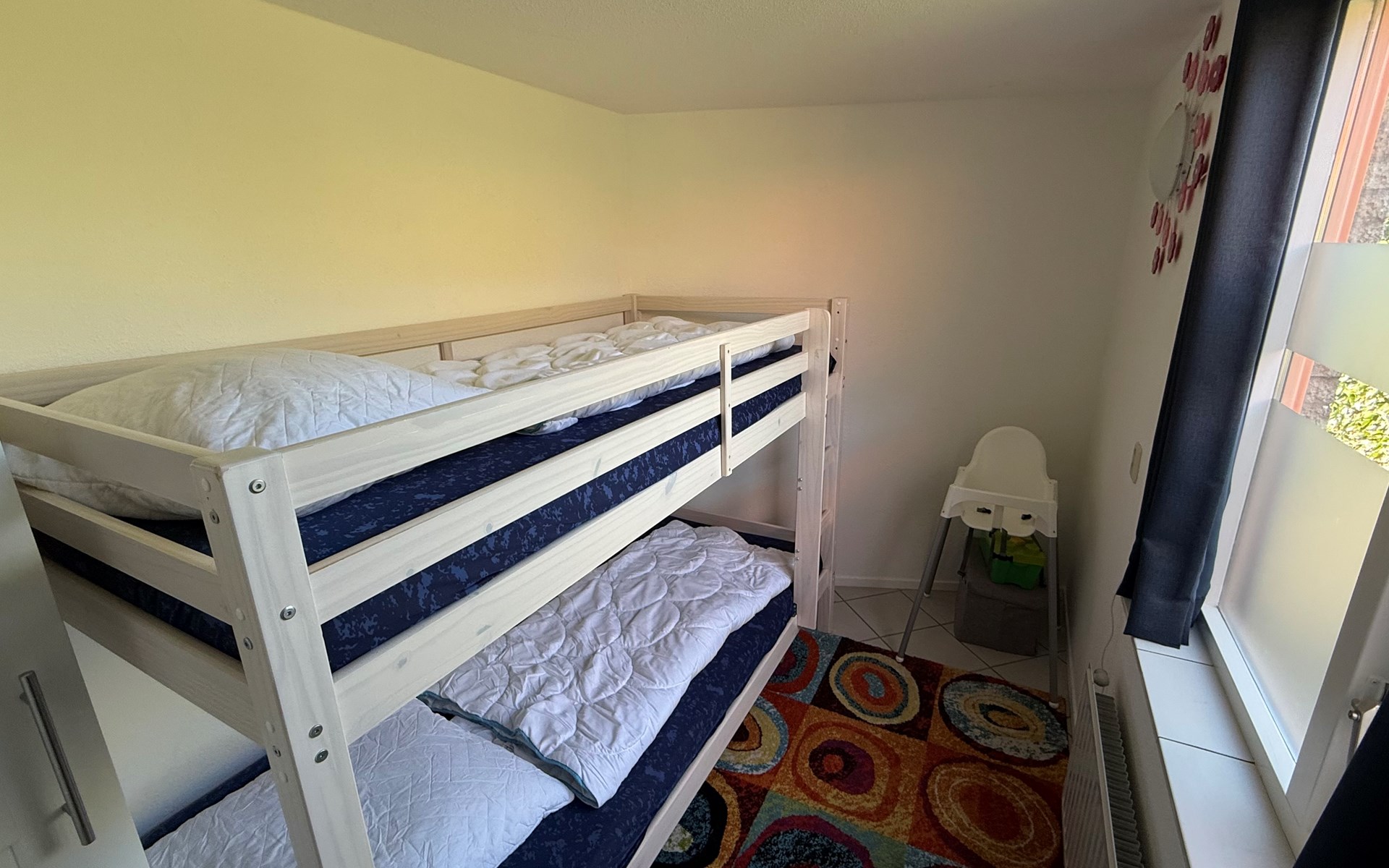 Two bedrooms have 1 x double bed with 1 large mattress and there is a bedroom with a bunk bed. The little ones have also been thought of; there is a crib and a highchair.