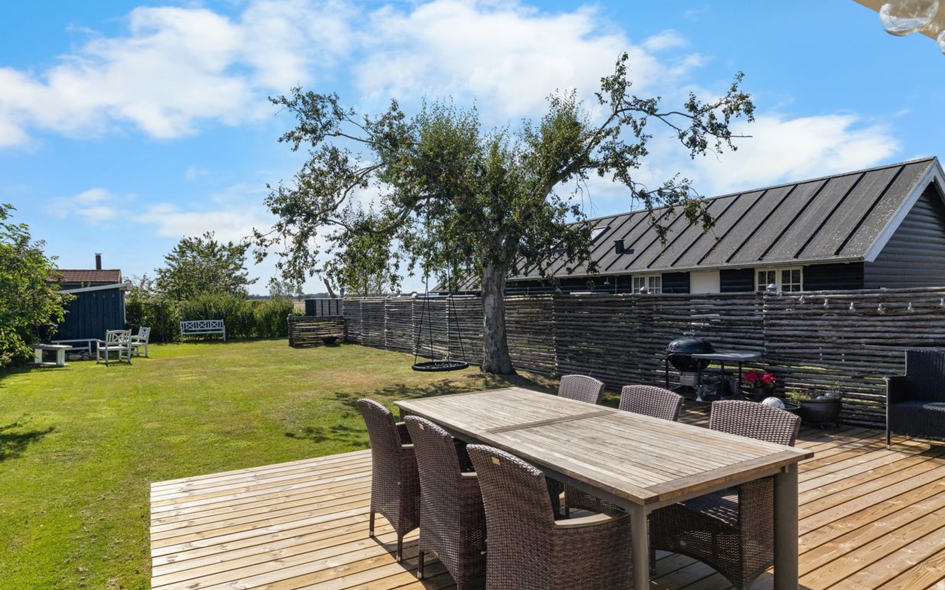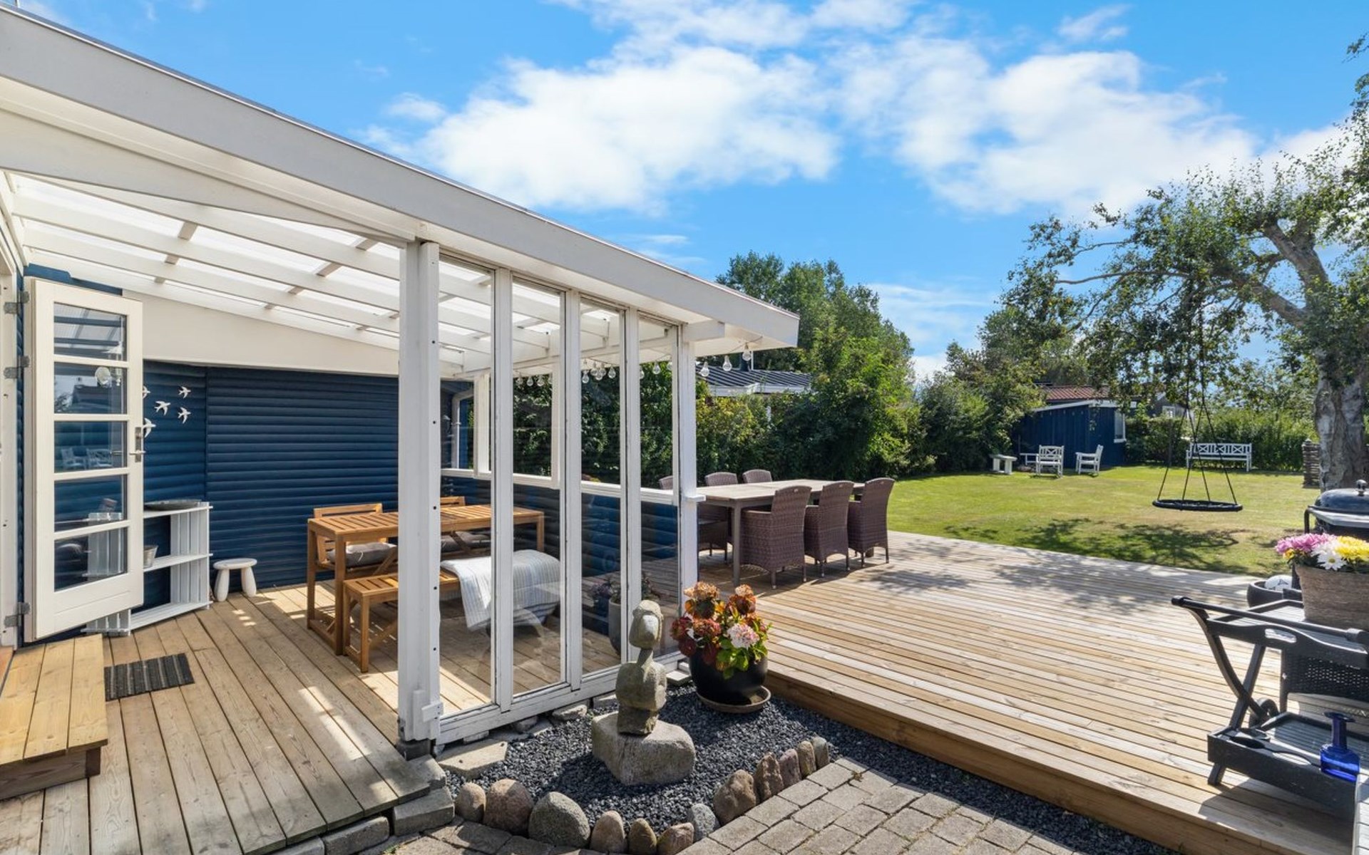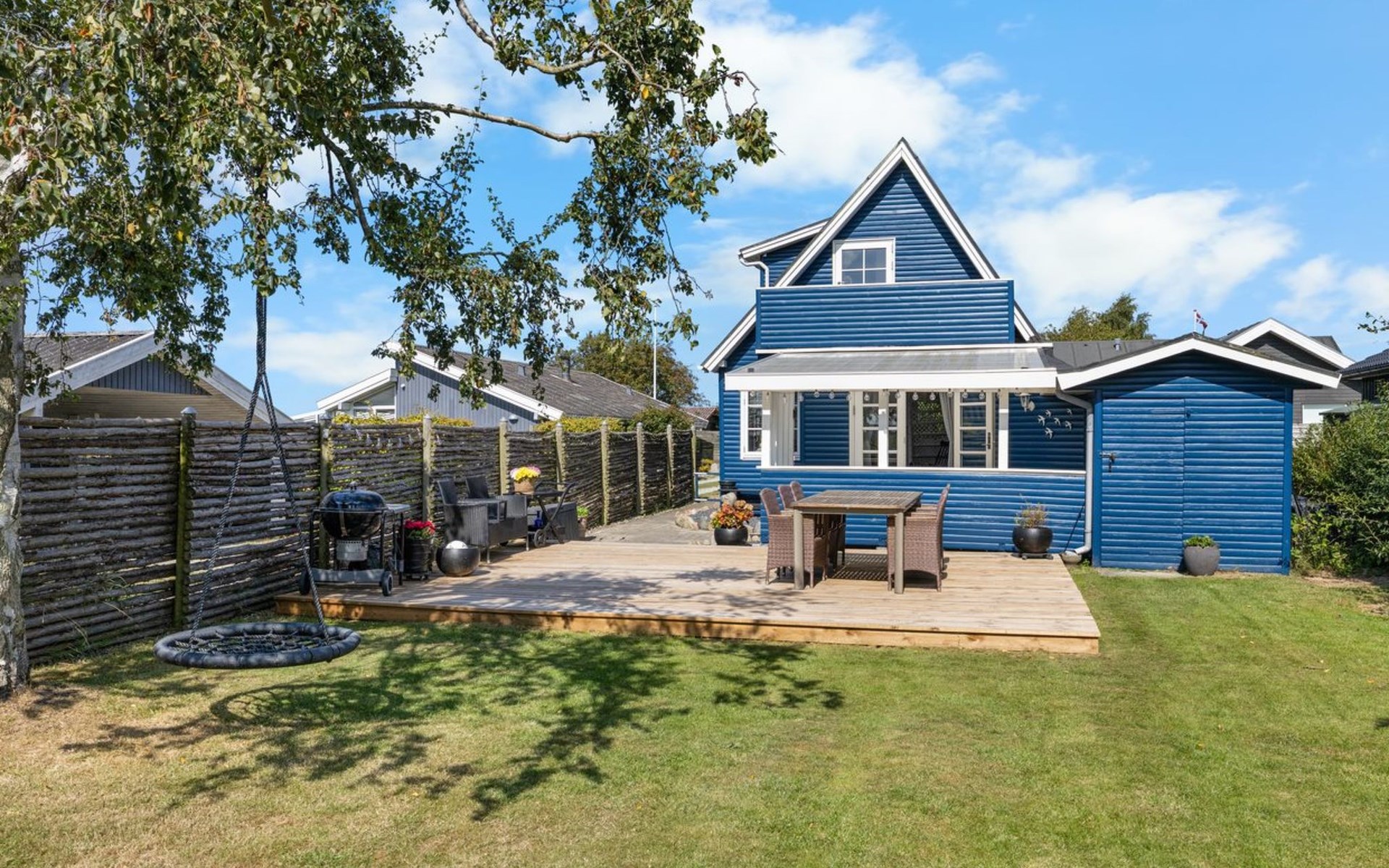 Single-family house, built in 1960. 150 m from the sea. Private: property 446 m2, well-kept garden. Barbecue, children's playground (swing), parking at the house. Grocery 2 km. The owner does not accept any youth groups.