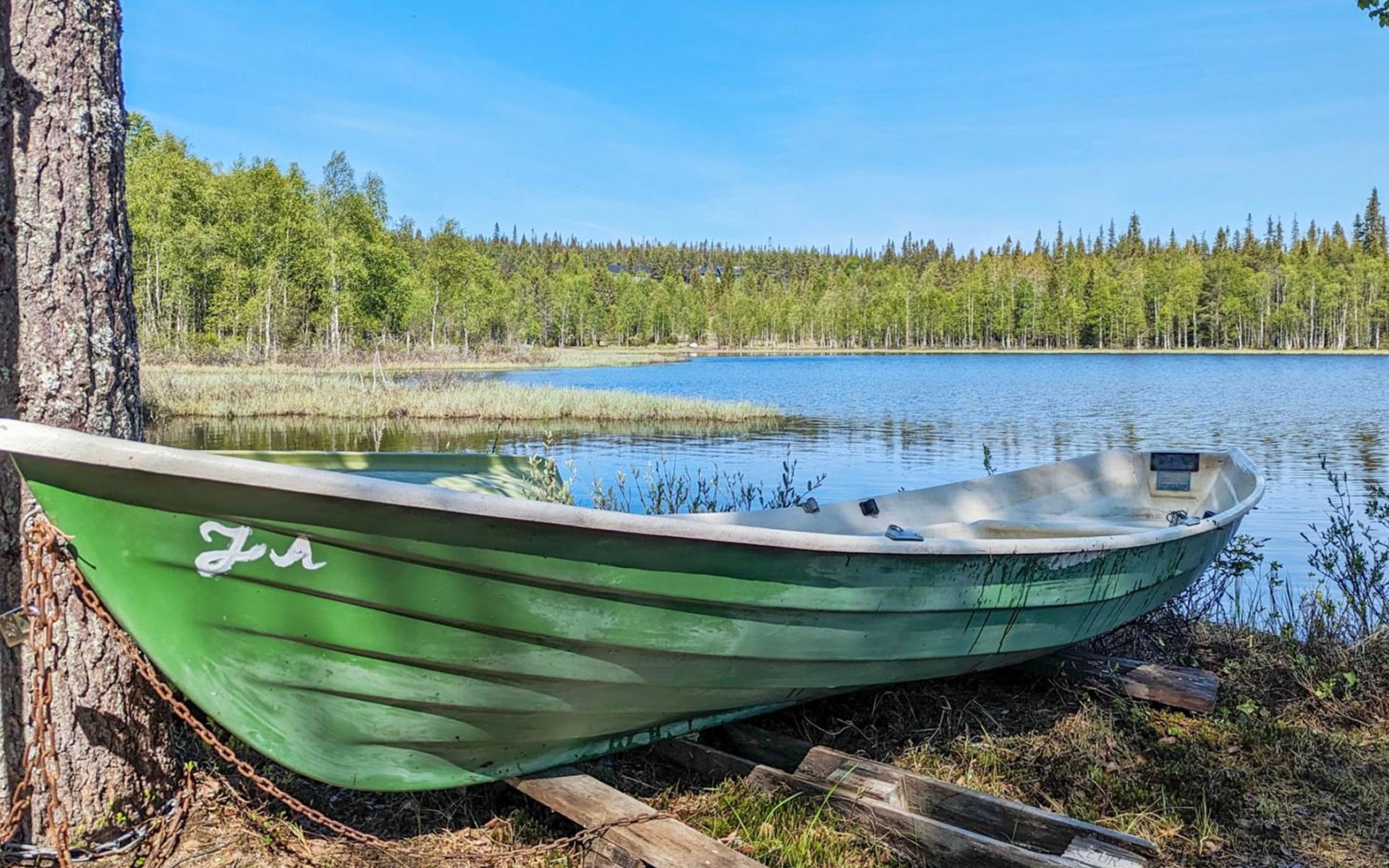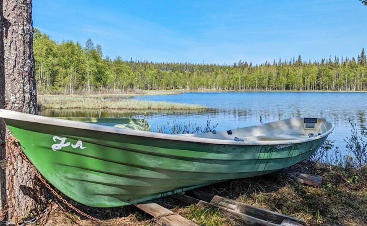 Rowing boat on the shore of lake Vuosselinjärvi 400 m away by walking along the bottom of the ski rack or 1 km away by car along the road. Available are: Buoyancy vest 70-90 kg 2 pcs, 60-70 kg 2 pcs, 40-60 kg 1 pc. Life jackets 20-30 kg 1 pc, 10-20 kg 1 pc.